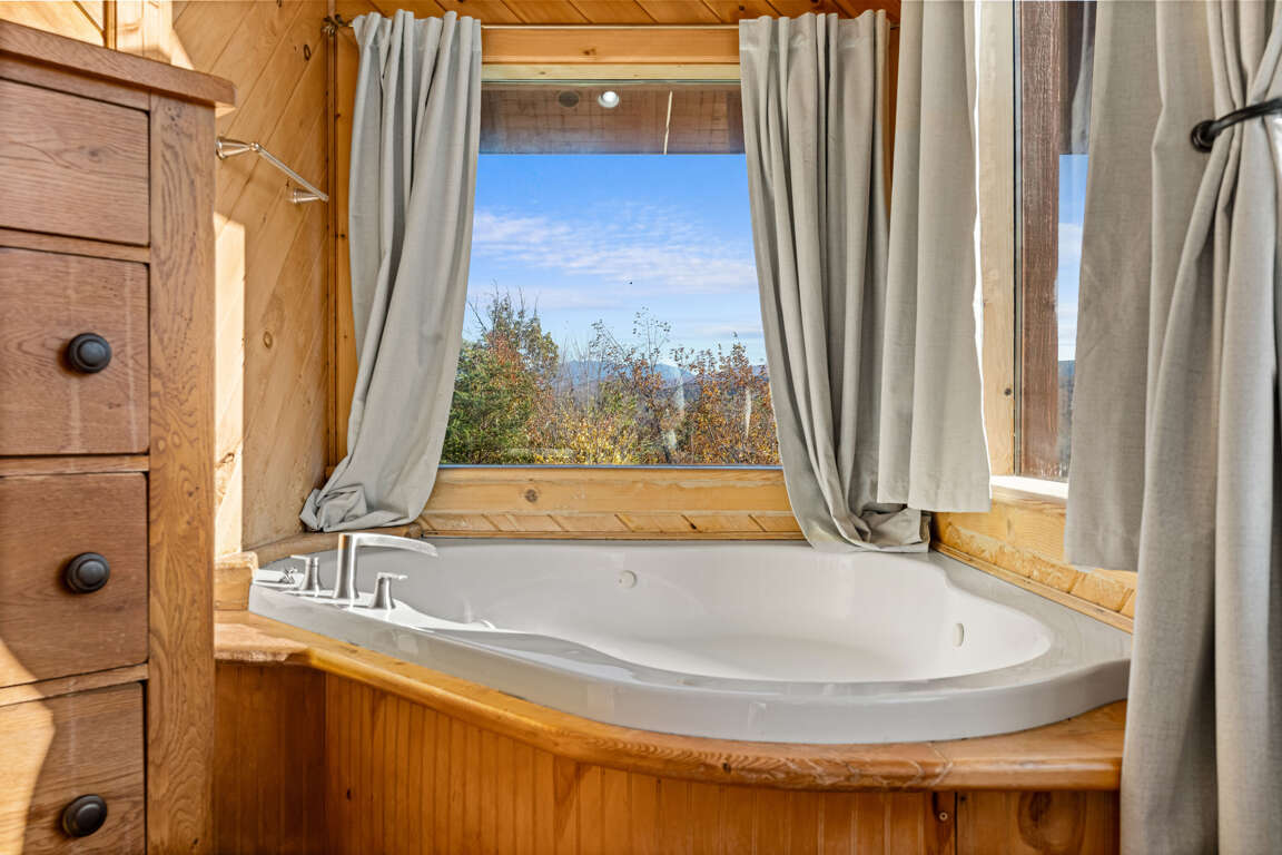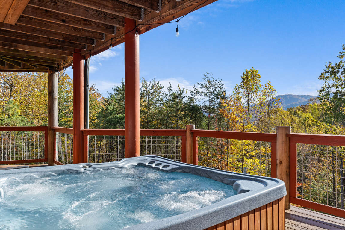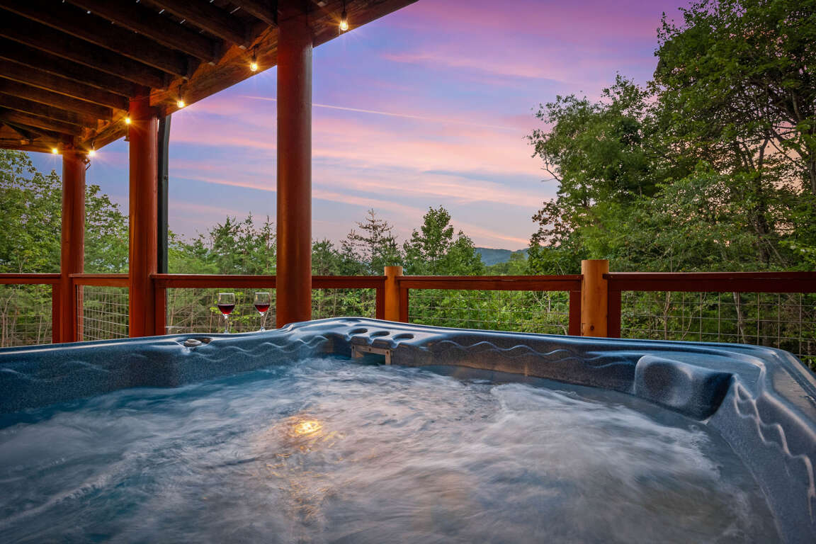 When evening rolls around, step outside to enjoy the sunset’s warm glow from the hot tub’s comfort.