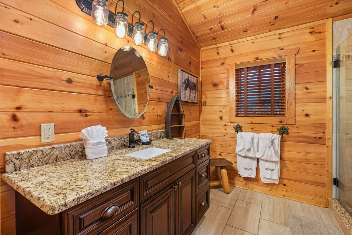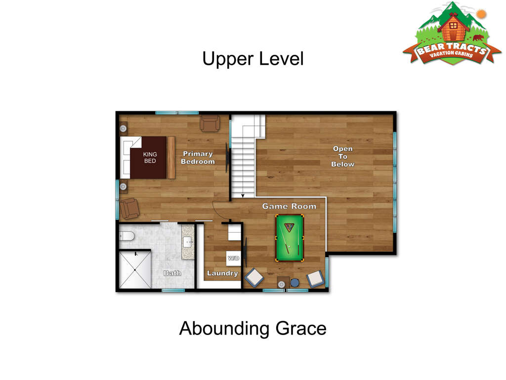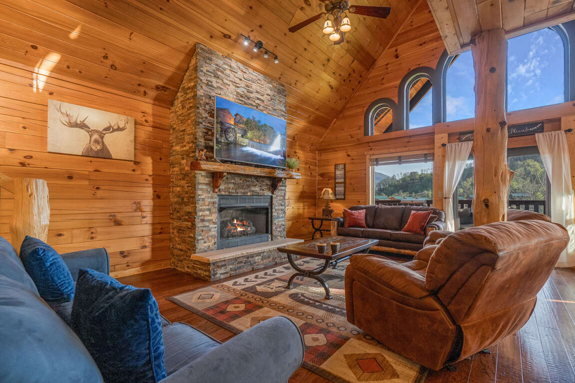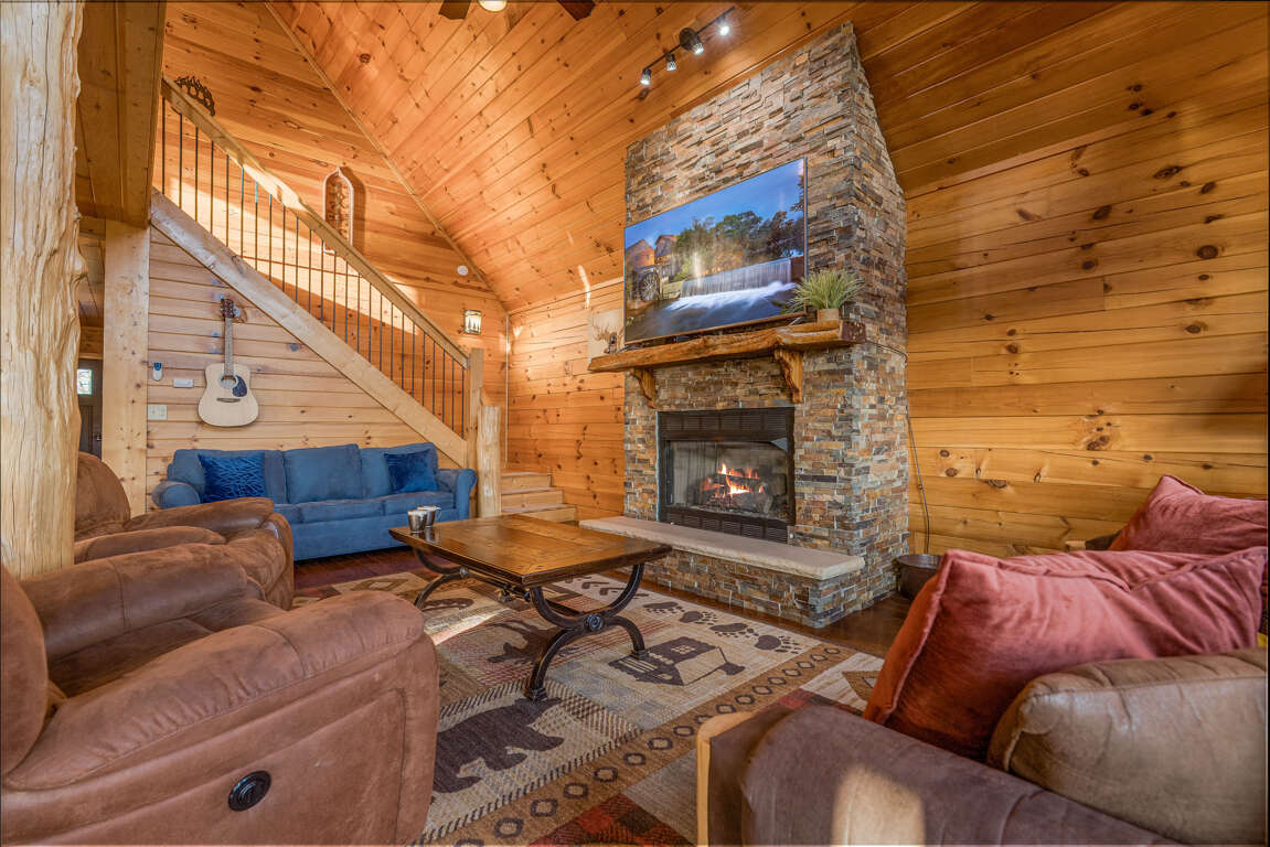 Abounding Grace offers a spacious 3-bedroom cabin with modern facilities including pool, hot tub, fireplace, and more in Sevierville, TN.