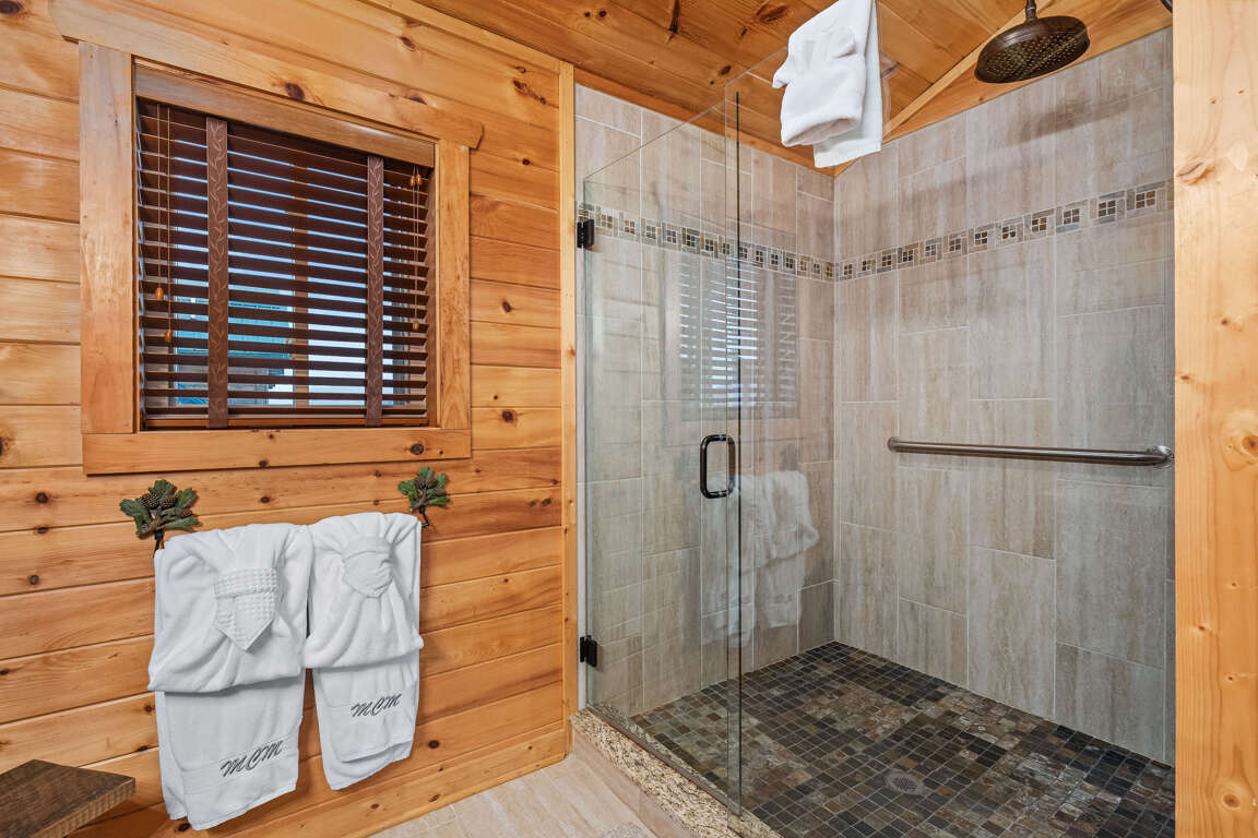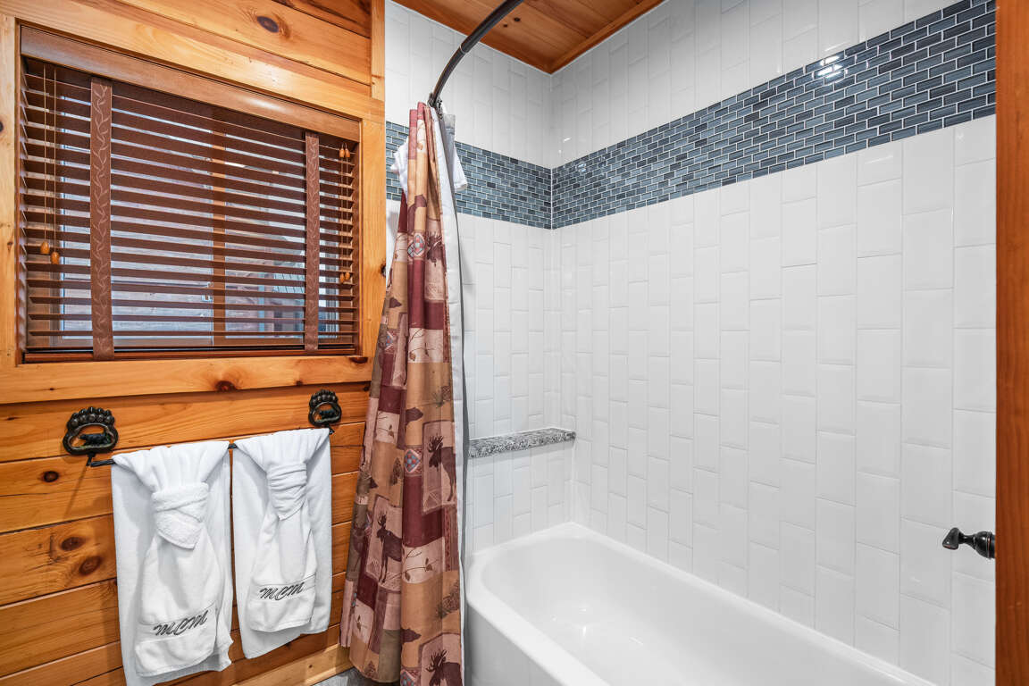 • Entry Level: One king bedroom & one queen bedroom, both thoughtfully designed with cozy bedding and mountain-inspired decor. A full bathroom on this level features a tub-shower combo for your convenience.