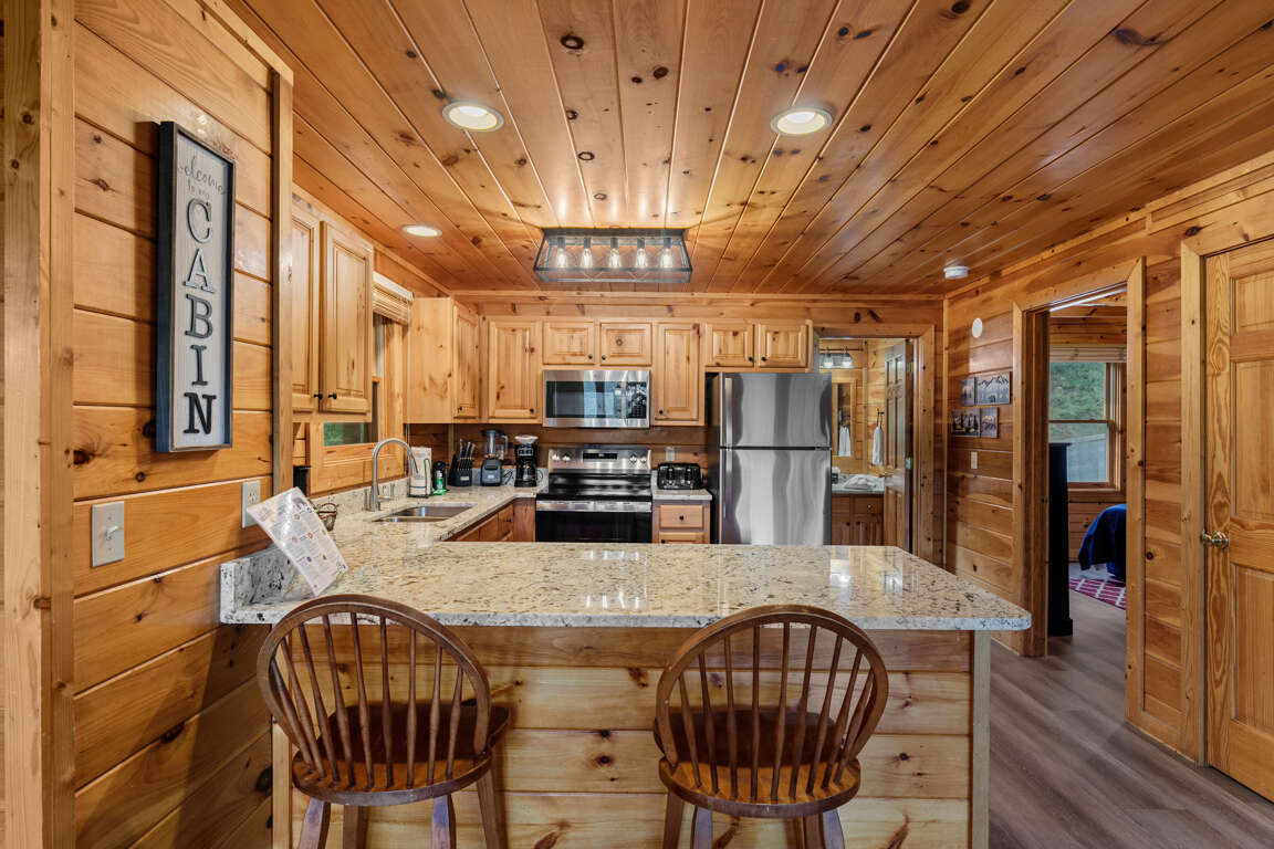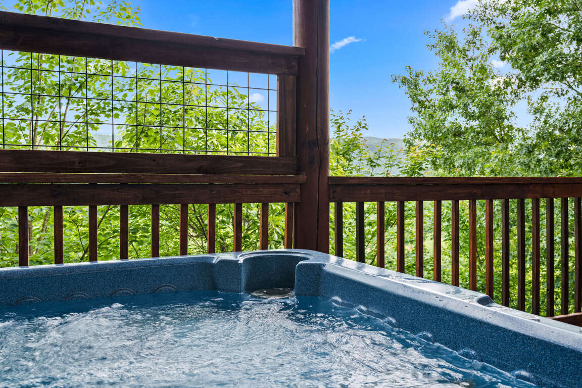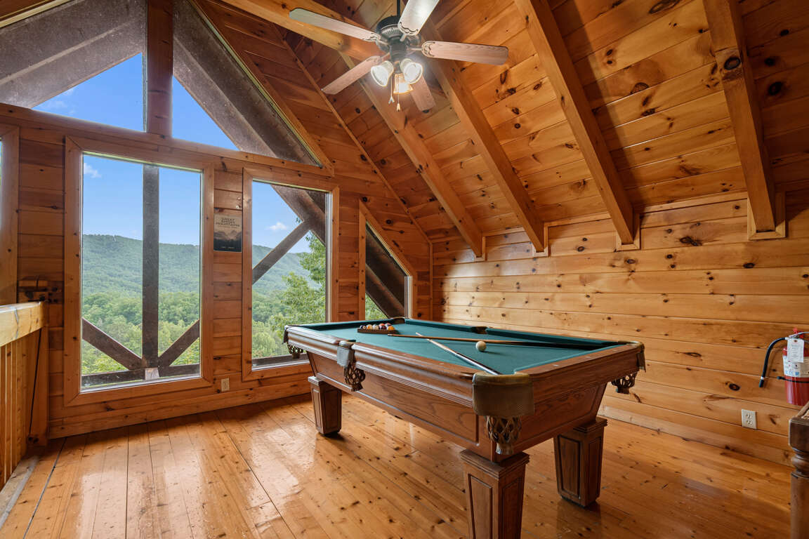 Enjoy serene surroundings with the perfect blend of natural beauty and modern comfort. Whether you're sipping coffee on the deck as the sun rises over the Smokies or relaxing in the hot tub under a starlit sky, the views from Above the Pines are unforgettable. With two king bedrooms, an indoor jacuzzi tub, a pool table, and resort pool access, you'll have everything you need for the perfect mountain escape.