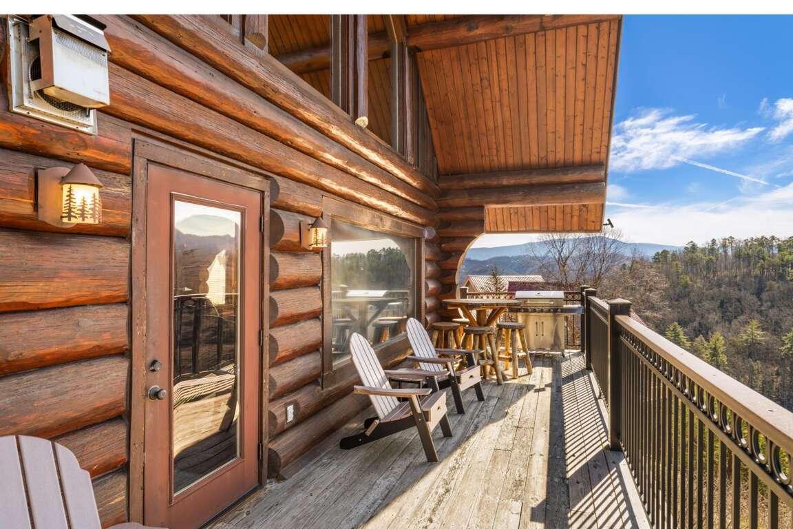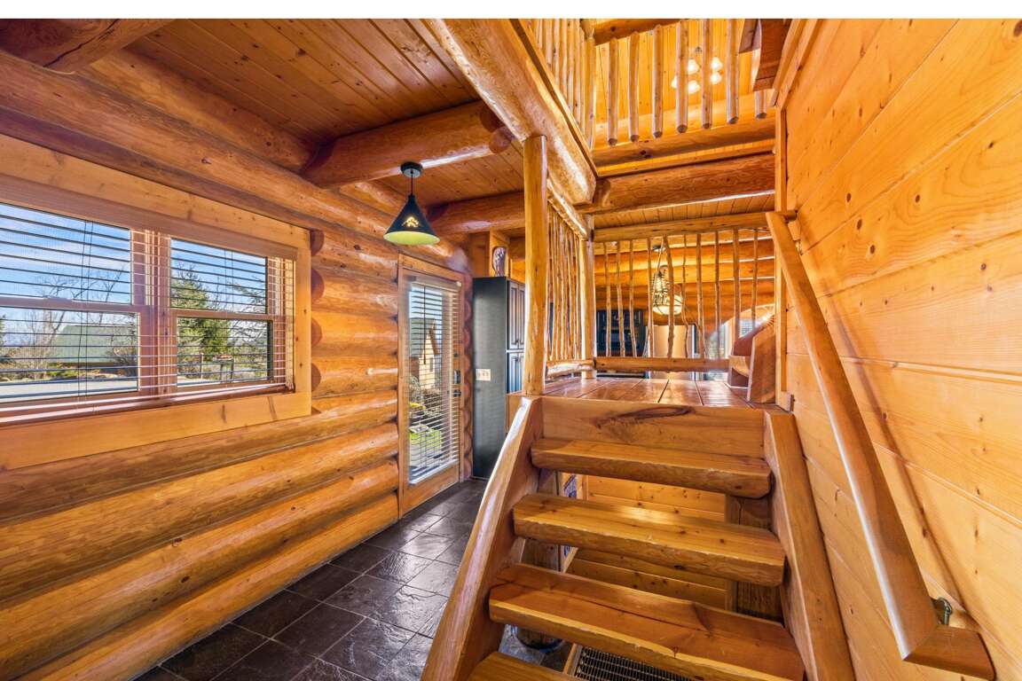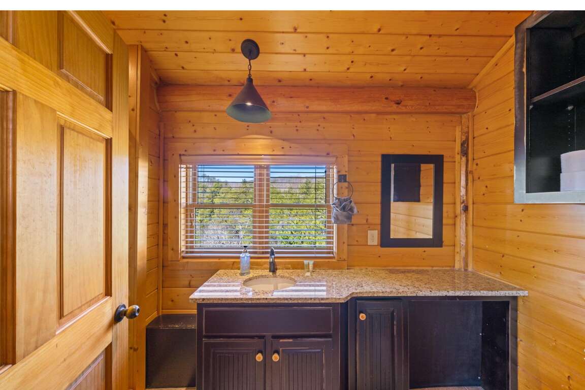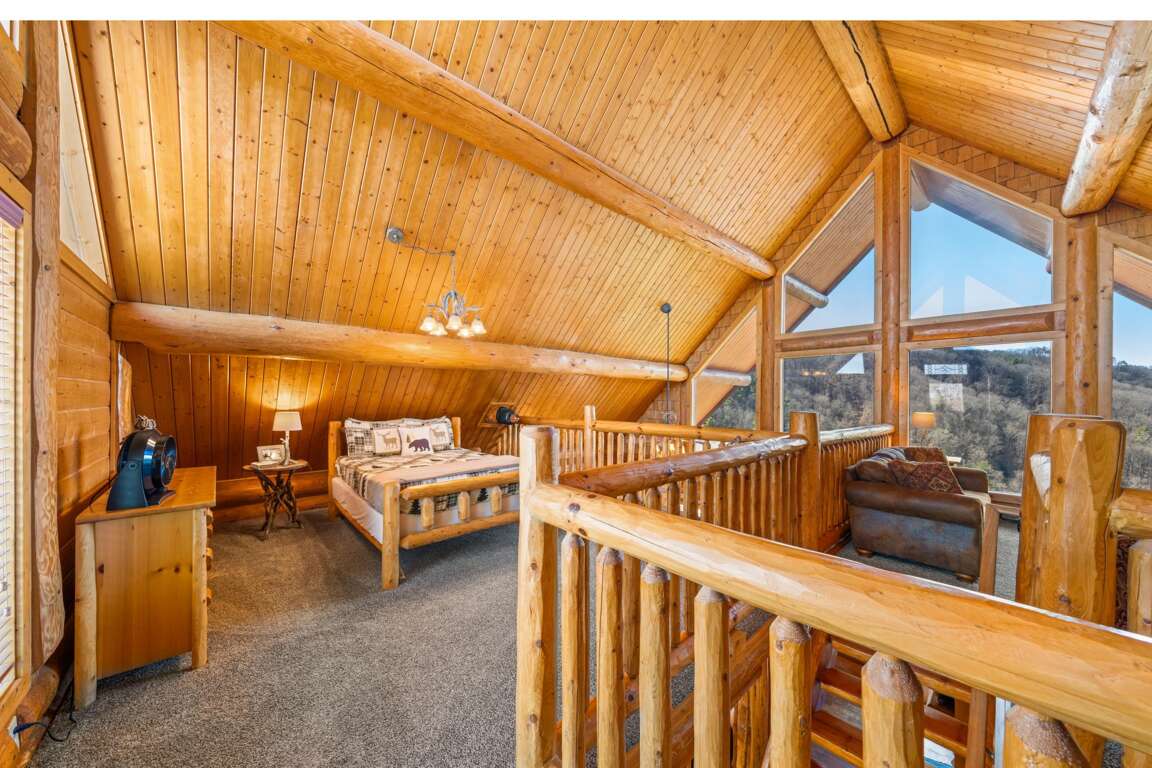 •Upper-Level Open Loft Bedroom: Queen bed with double futon, full living area with couch, TV, and rocking chair. Full bathroom included.