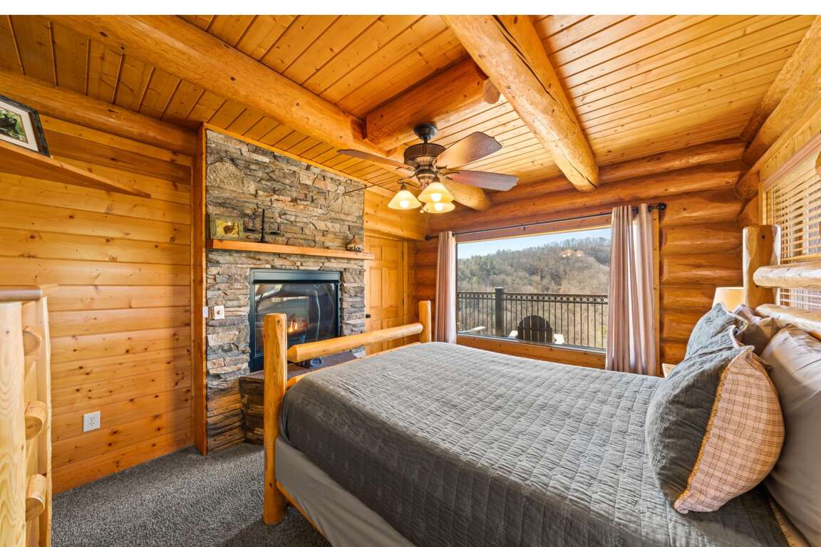 •Main-Level Bedroom: Cozy retreat with king bed, gas fireplace, and attached full bathroom.