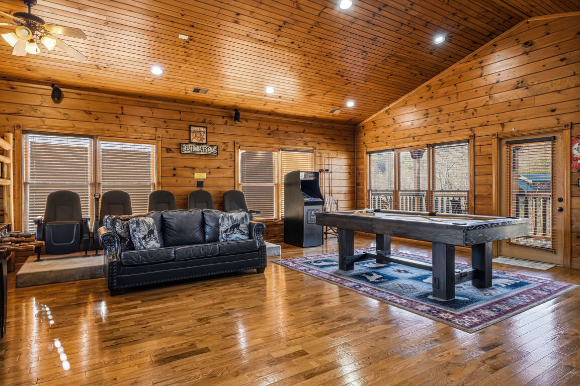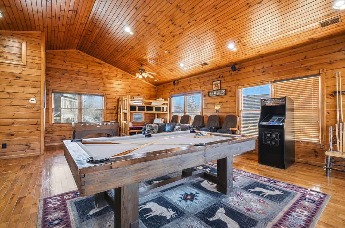 Entertainment is the star of the show! Enjoy a private rec room and theater combo with a pool table, foosball, arcade game, and dedicated theater seating. Fire up the Blu-ray/DVD player, grab the popcorn, and enjoy movie night on the big screen—rain or shine.