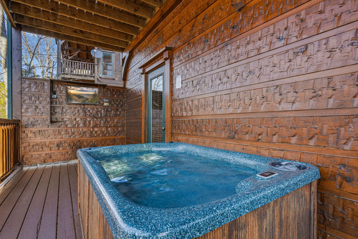 • Outdoor hot tub with TV