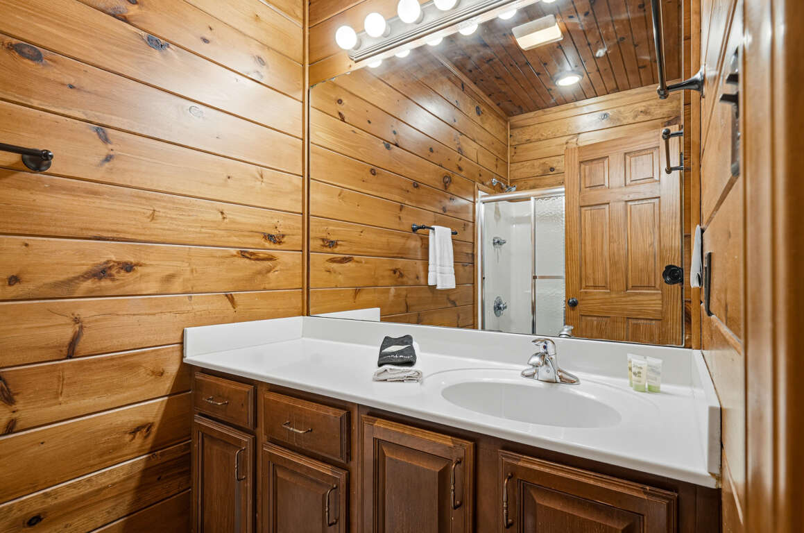 • Bedroom 3 (Lower Level): King bed, TV, private en-suite (tub/shower combo)