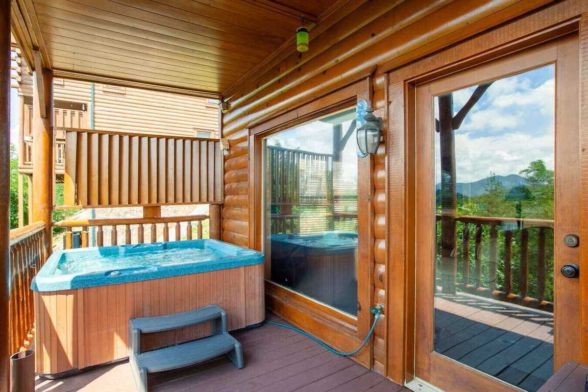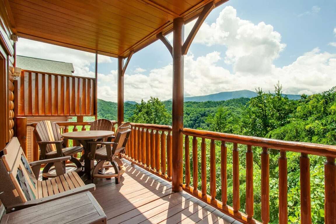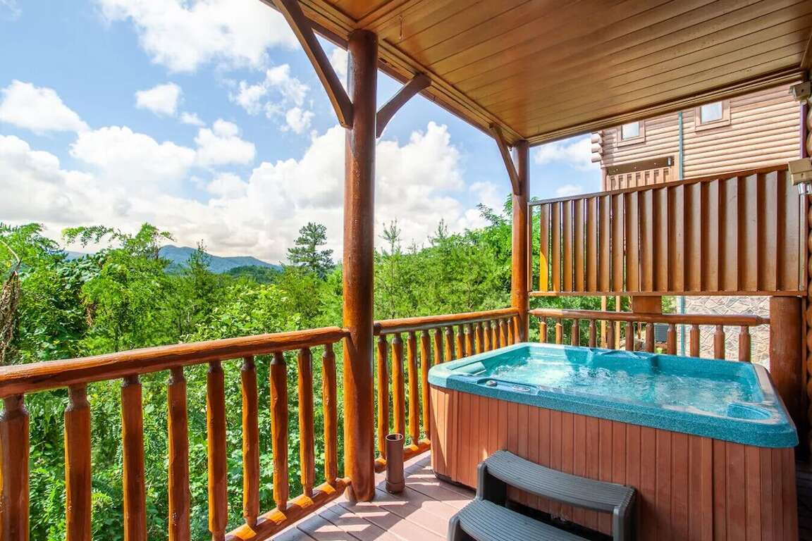 Mystic Sunrise is a two-bedroom, 1600 square foot cabin in Sevierville, TN, boasting amenities such as a hot tub, fireplace, and a breathtaking mountain view.