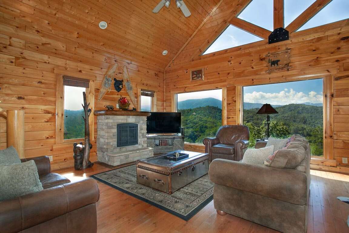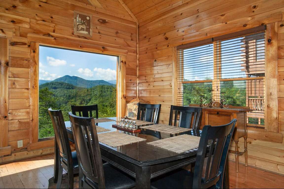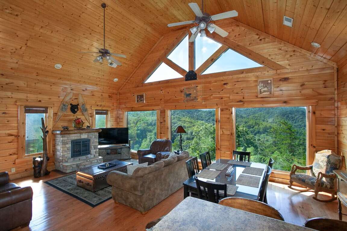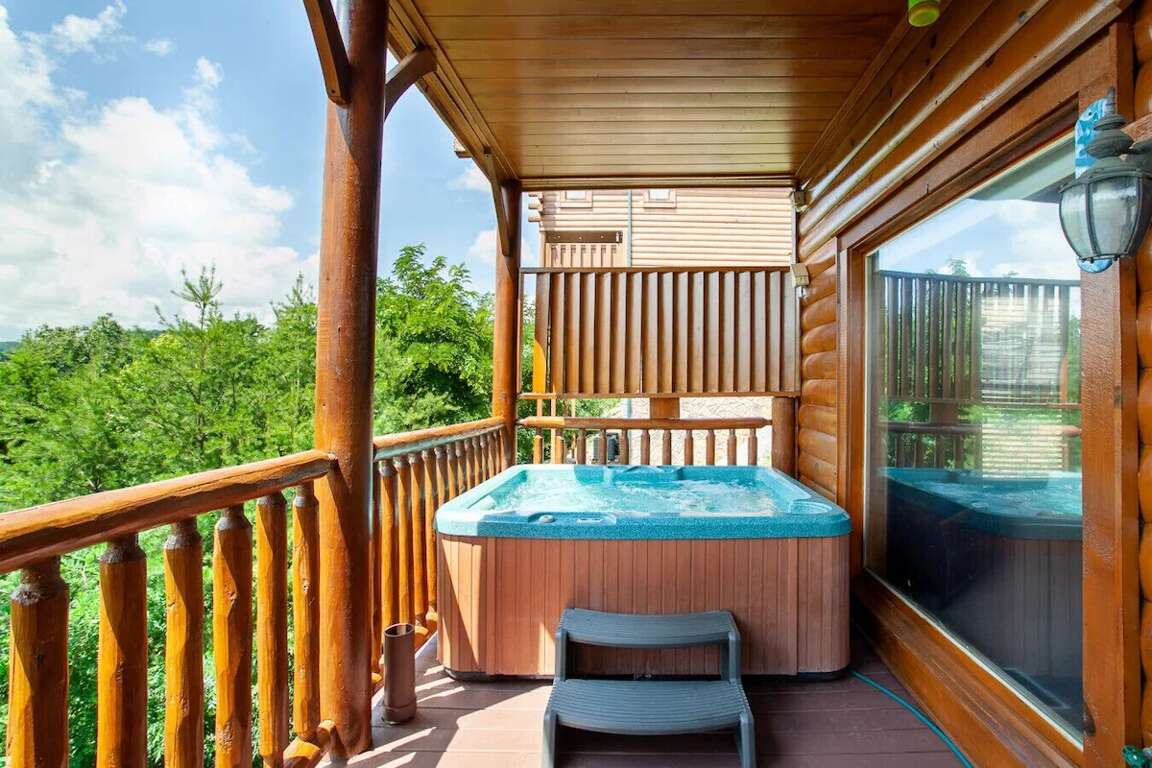Mystic Sunrise is a two-bedroom, 1600 square foot cabin in Sevierville, TN, boasting amenities such as a hot tub, fireplace, and a breathtaking mountain view.
