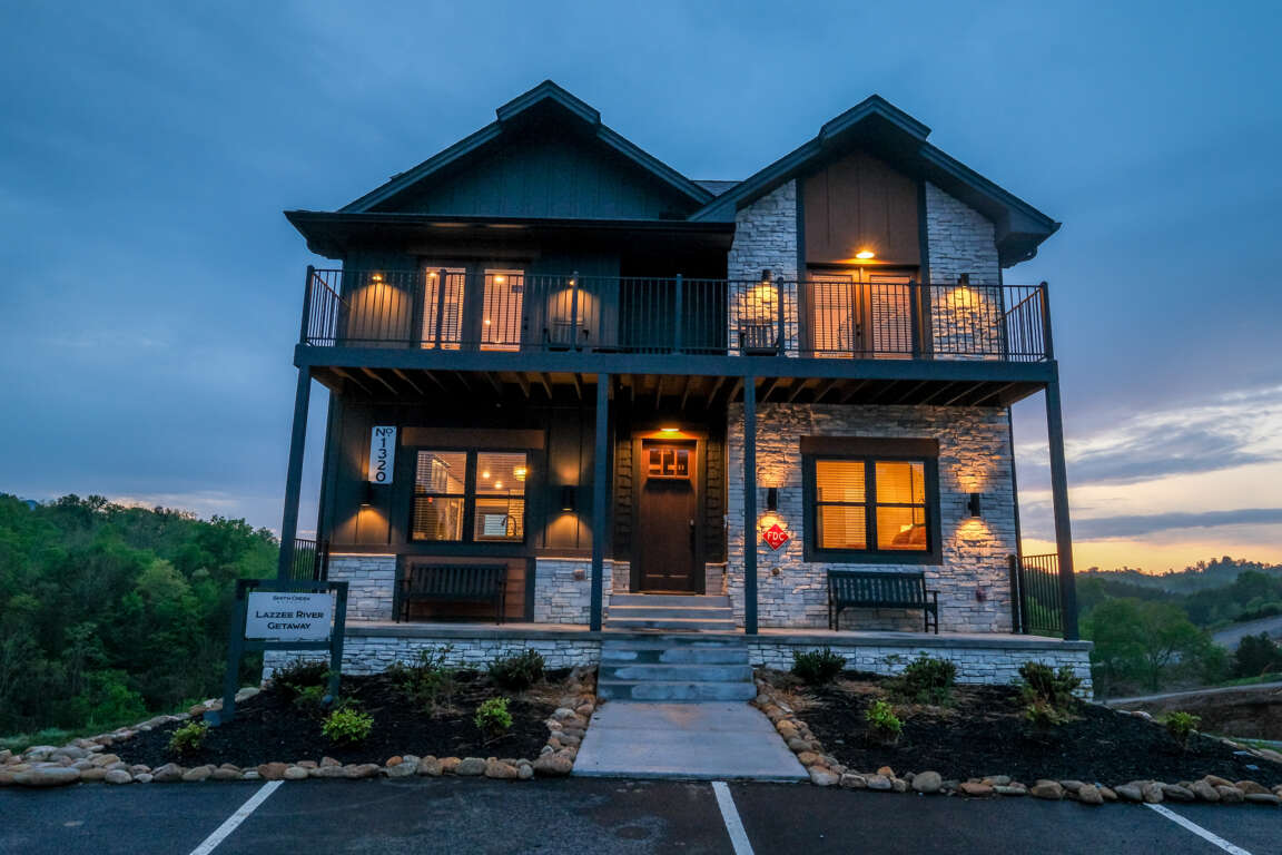 Welcome to Lazzee River Getaway, a spectacular 5-bedroom, 6.5-bath luxury lodge located just minutes from all the Parkway action in Pigeon Forge. Designed for unforgettable group vacations, this 3,900-square-foot retreat comfortably sleeps up to 16 guests and offers sweeping partial mountain and full valley views.