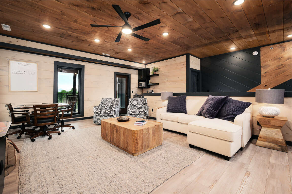 Whether you’re floating the lazy river, watching movies under the stars on the Jumbotron, soaking in Tennessee’s largest outdoor hot tub sauna, or hosting game night at your private poker table — Lazzee River Getaway delivers true resort-style mountain living.