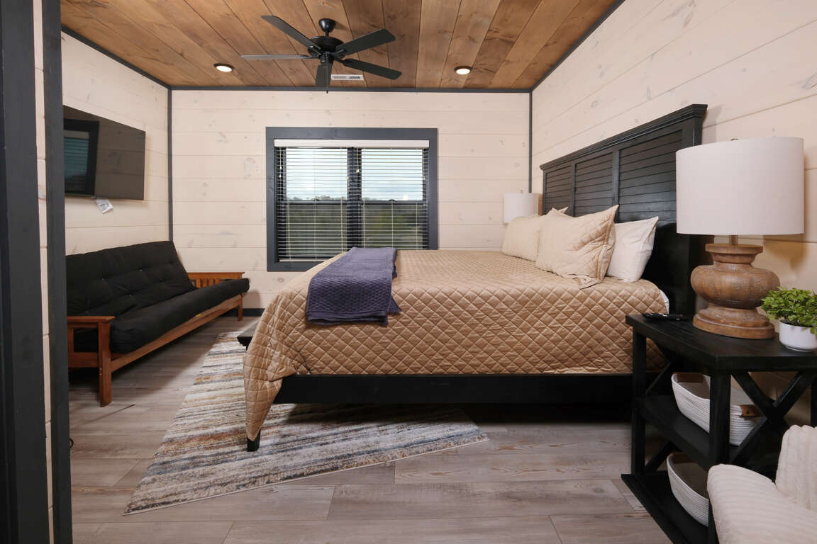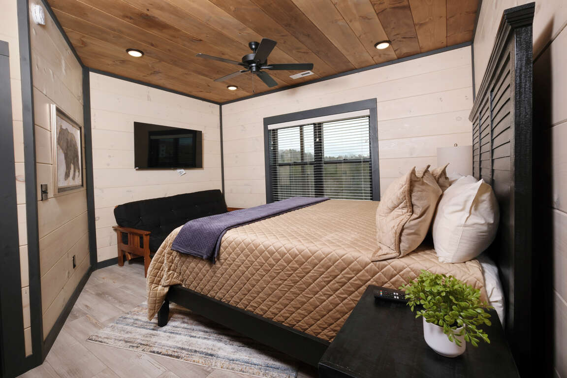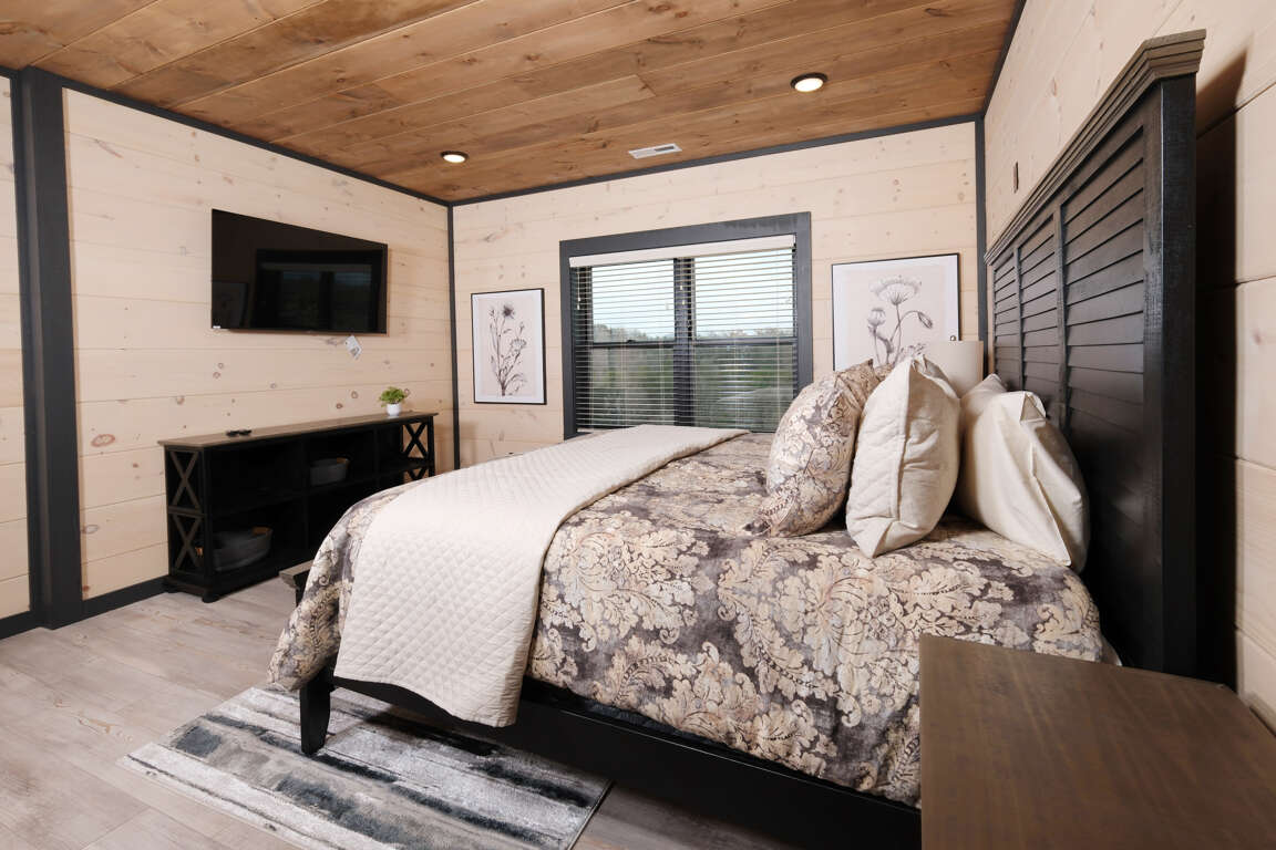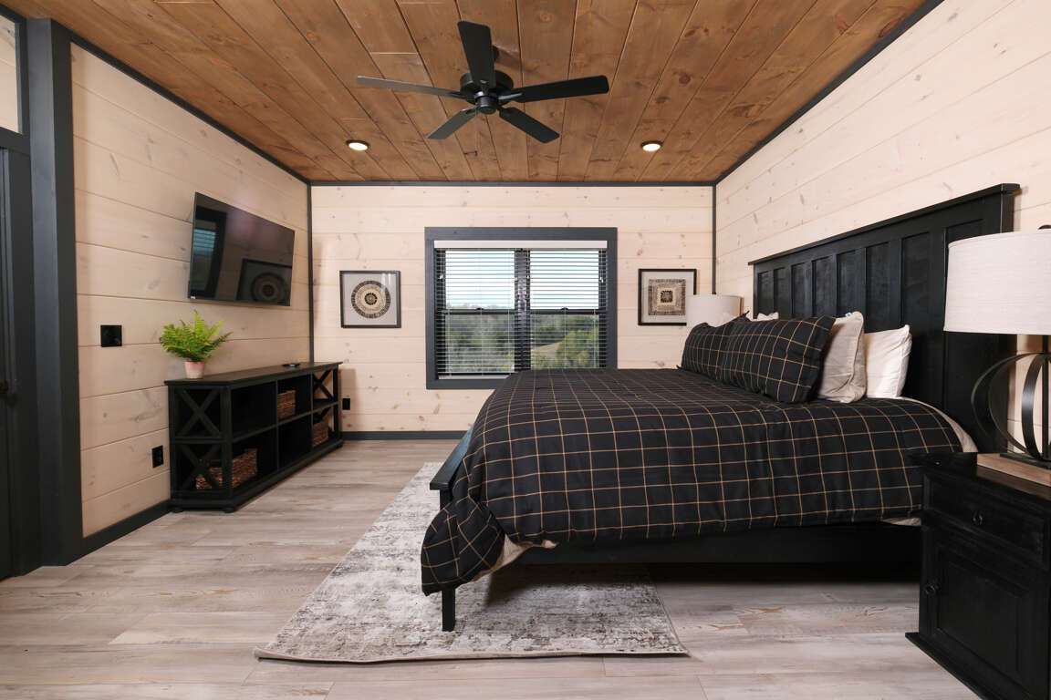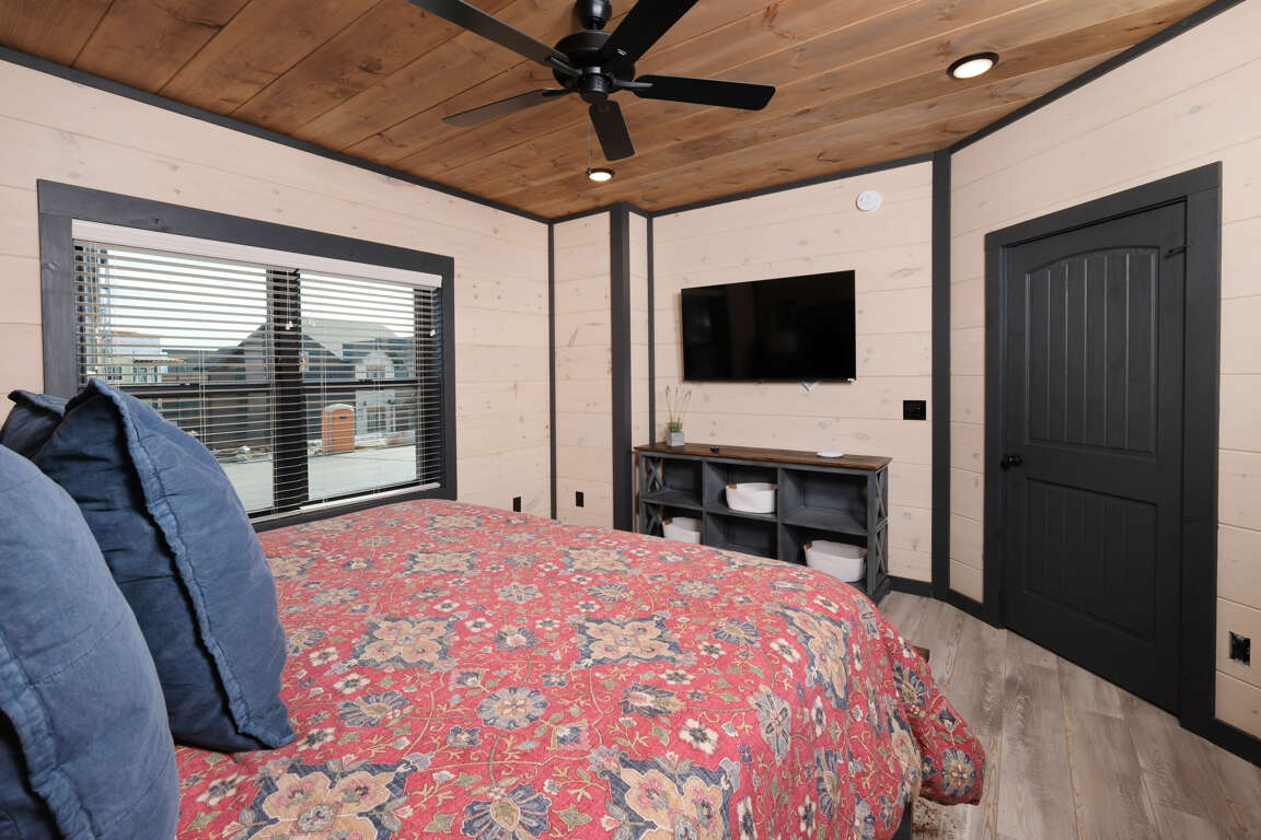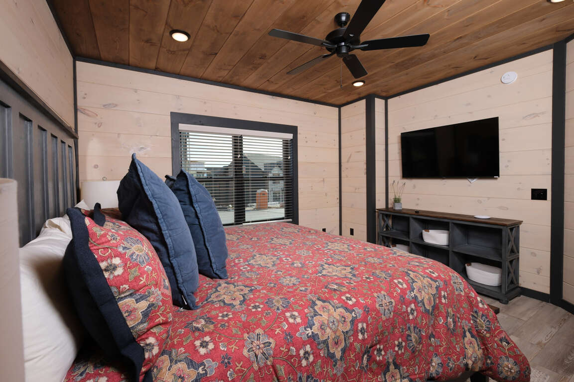* Bedroom 2, upper level, King bed, ensuite bathroom, Roku TV