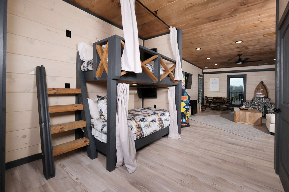 * Bedroom 5, lower level, Full-over-Full bunk & Twin-over-Twin bunk, ensuite bathroom, Roku TV