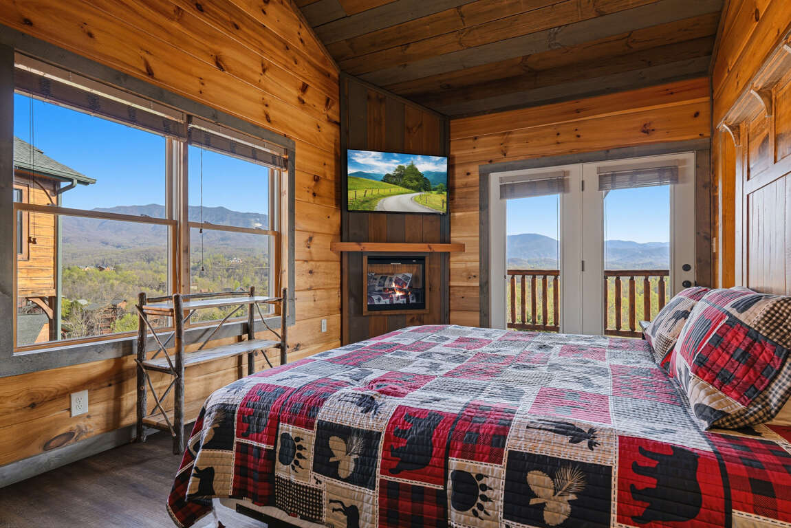 Cabin rental in Gatlinburg with 5 bedrooms, mountain views, and a hot tub, plus a game room and theater—an easy place to stay for groups.