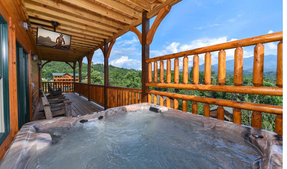 -Outdoor hot tub with TV