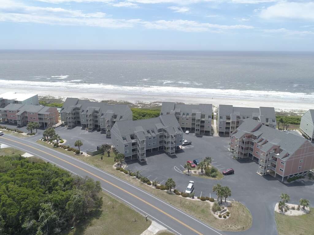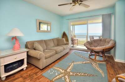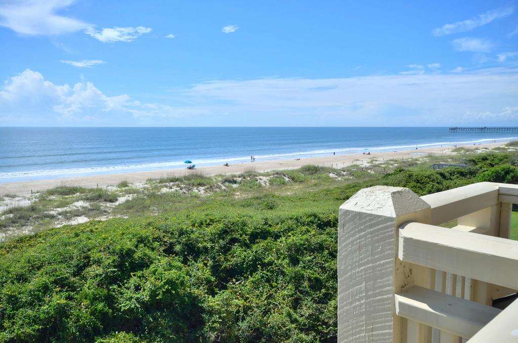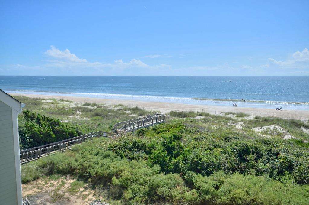 Penthouse condo vacation rental in Caswell Beach with 2 bedrooms, 1 bath, ocean views, an oceanfront pool, and beach walkways near Oak Island Pier.