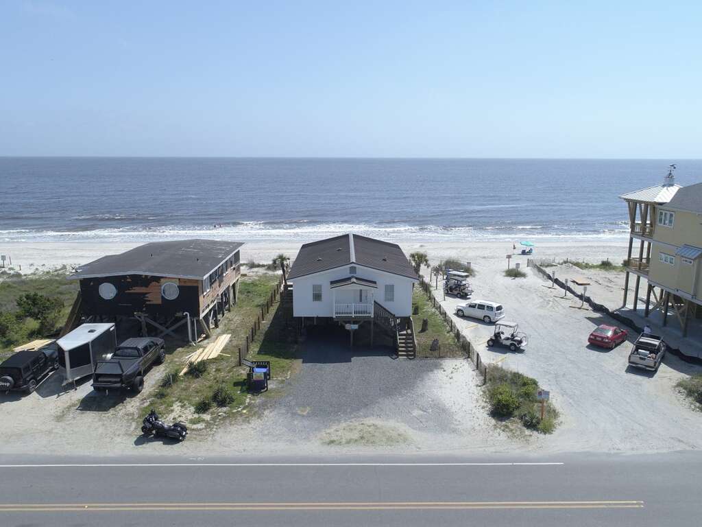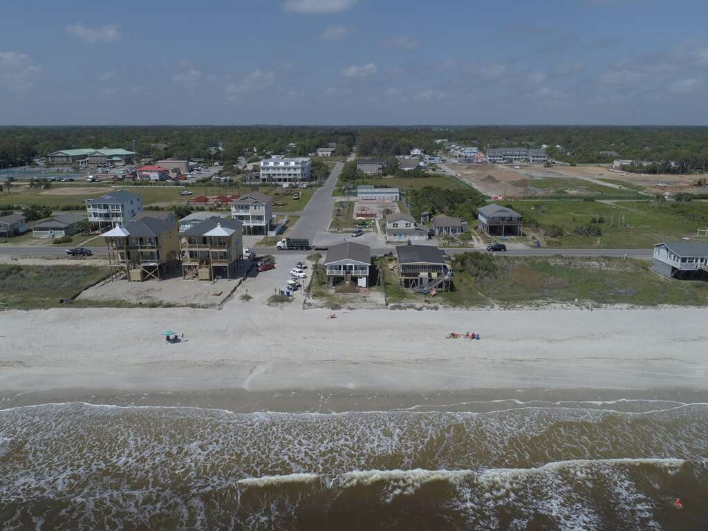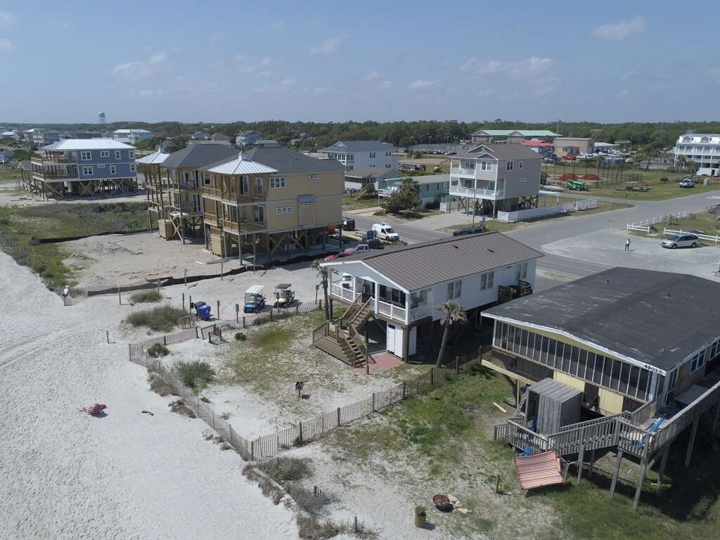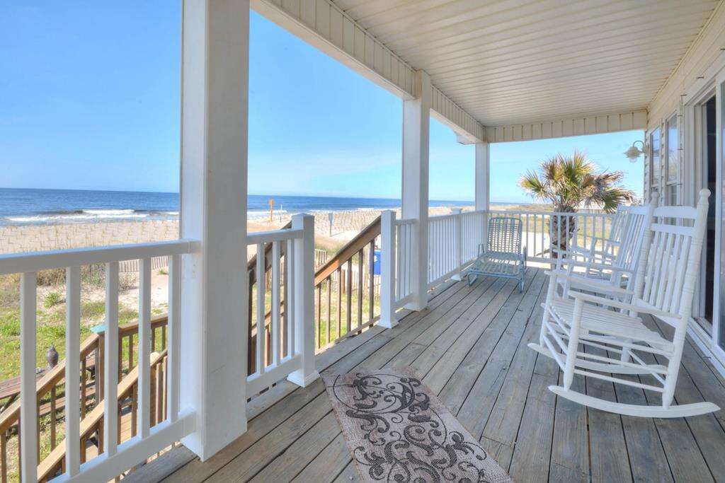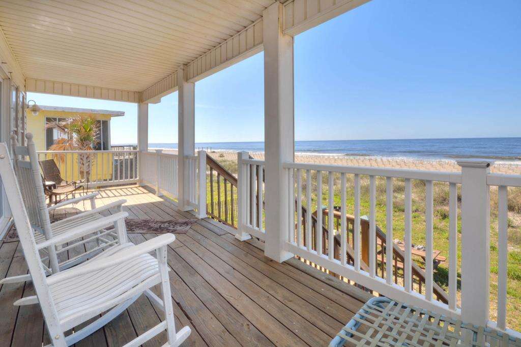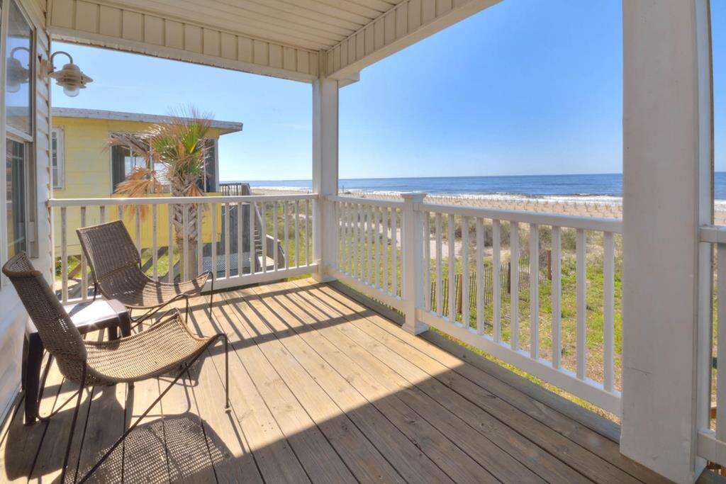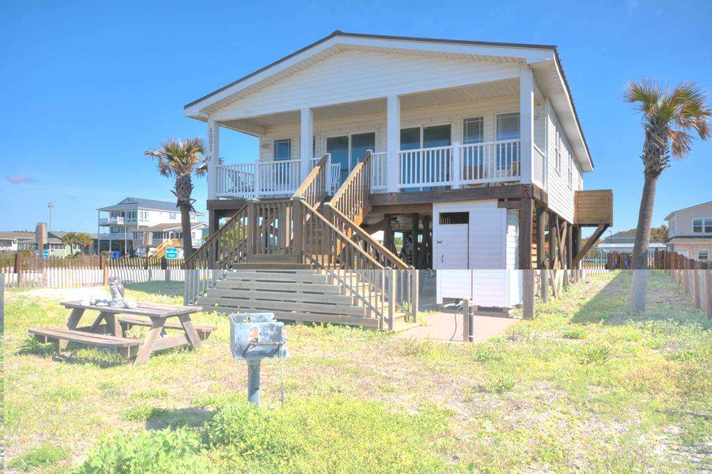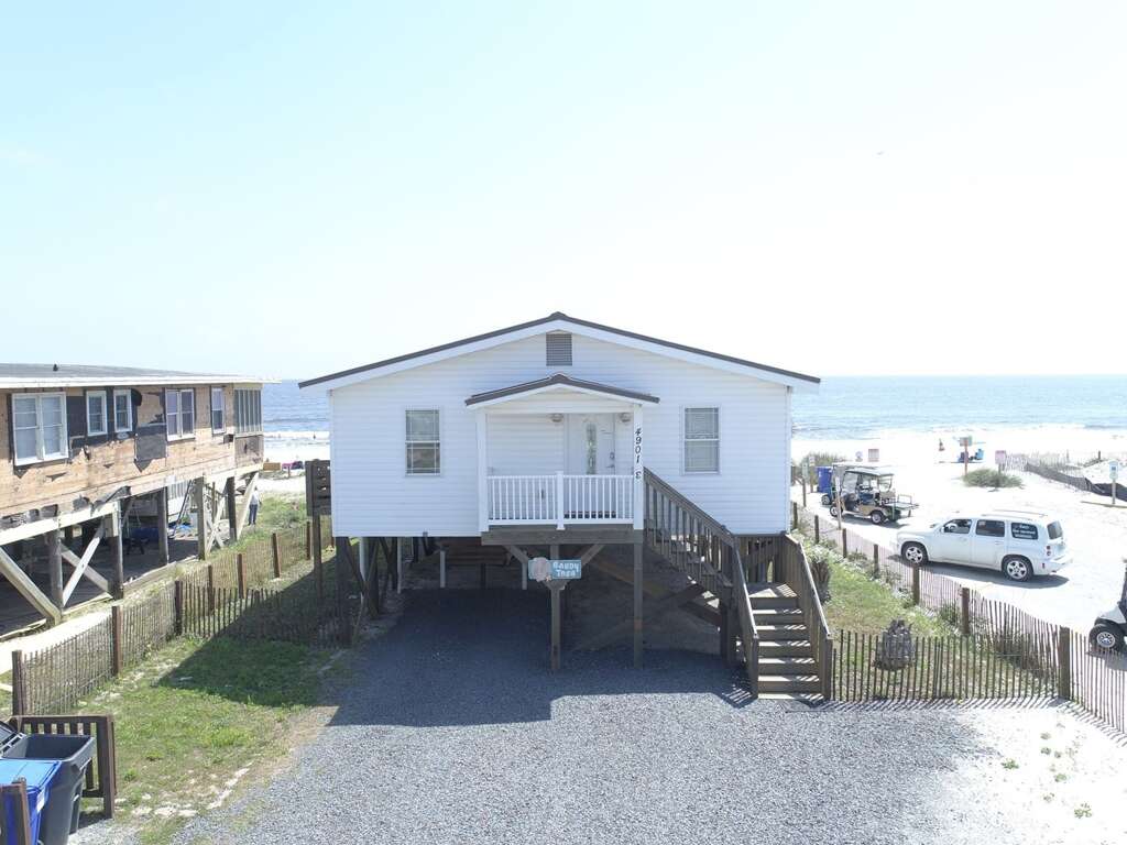 Oceanfront house vacation rental in Oak Island with 4 bedrooms for up to 10 guests, plus a covered porch, outdoor shower, and beach access next door.