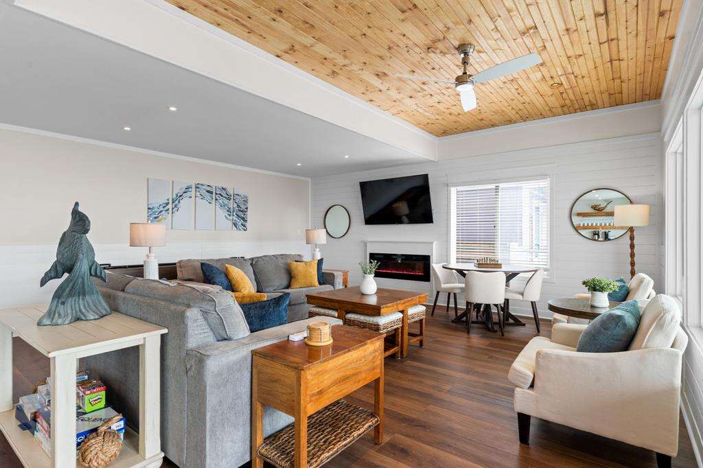 Enhancing the allure and comfort of Charlies Place, recent property upgrades and stylish additions have elevated the vacation home's ambiance to new heights. The interior boasts new decor, including luxury vinyl tiles on the 1st floor, creating a modern and welcoming atmosphere. Technology integration is seamless with free WIFI throughout the property, ensuring guests stay connected. New mattresses and furniture in all bedrooms enhance relaxation, while a dining table and chairs at counter height offer a chic dining experience. The living room features two new sofas for utmost comfort, complemented by a freshly repainted interior. These upgrades blend style and functionality, providing guests with a luxurious and contemporary retreat during their stay at Charlies Place.