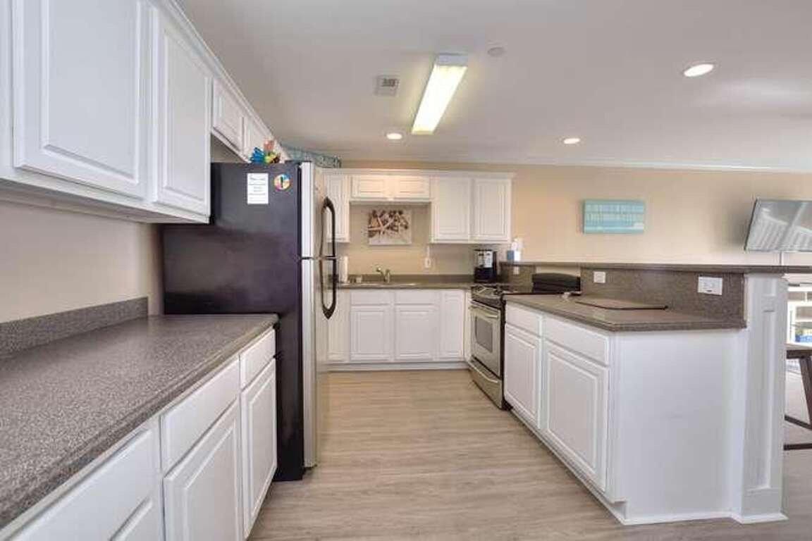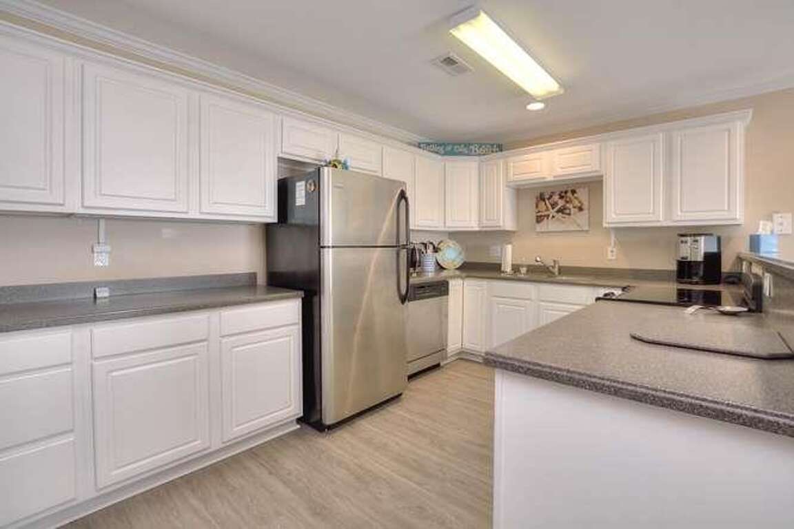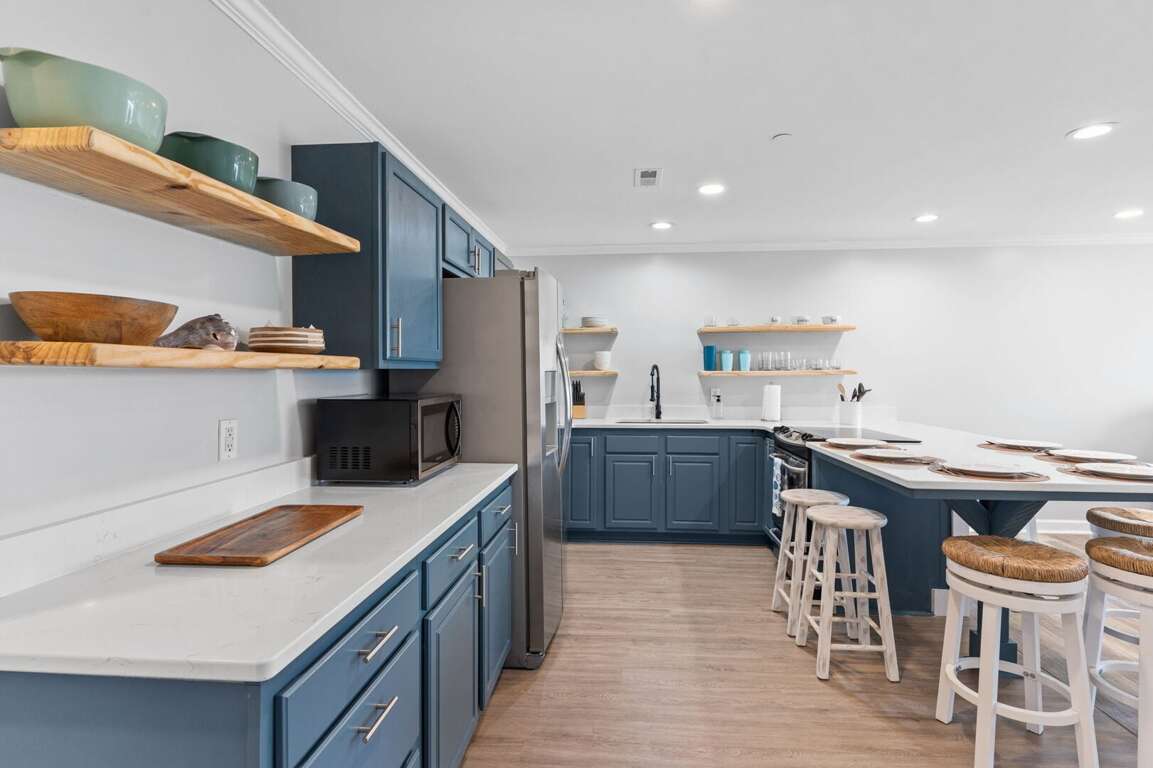 - Fully equipped kitchen: Breakfast bar. Refrigerator with ice maker. Electric range with flat-surface cooktop. Dishwasher. Microwave. Toaster. Drip coffee maker. Blender. Stock pot.