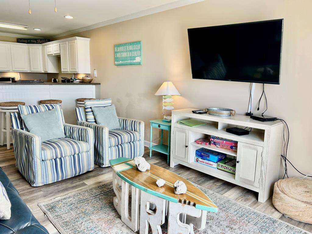 Gifted with unique ocean views, this beautifully updated, top level condo offers you the best location for your beach retreat! And, those views can be enjoyed from inside as well, where you will find a comfortable and cozy living area with an open floor plan that includes the dining and kitchen areas. Two spacious bedrooms offer a perfect oasis for a restful night's sleep with 1 primary King bedroom and ensuite bath, plus a a guest bedroom offering 2 double beds and a bath shared with the hallway. Ideal for families, couples or a group of friends, this condo will have you basking in the coastal charm Oak Island is known for. Centrally located in the heart of the island, you can walk to everything from necessities to fun, including the beach, shops, and dining! Feeling a little adventurous? More fun activities are only a short drive away! So, get ready to relax and enjoy life. Make your reservation soon - A condo with these ocean views won't last long!