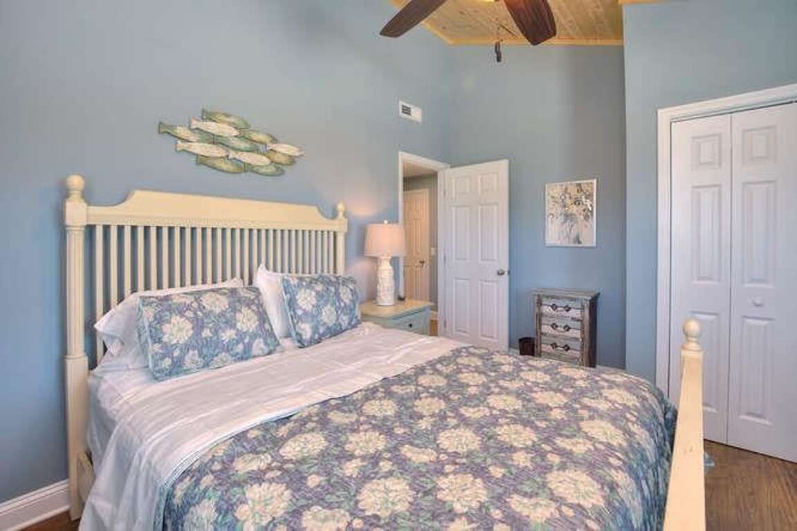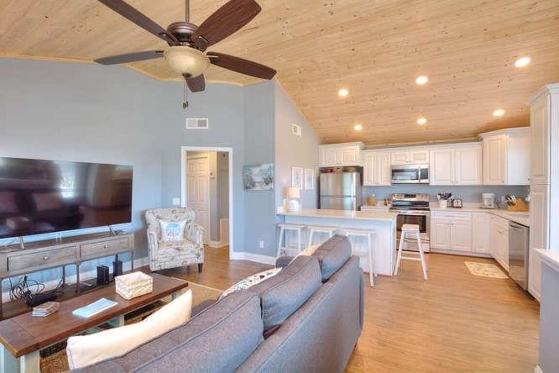 Enhancing the coastal experience, this beach bungalow in Oak Island, North Carolina offers a tranquil retreat with modern amenities and stunning ocean views. The property features a corner lot location, providing ocean views from the front deck, allowing guests to immerse themselves in the beauty of the sea. The interior design of this beautiful cottage exudes a calming atmosphere, perfect for relaxation after a day at the beach. Guests can enjoy modern upgrades such as vaulted ceilings and elegant wood finishes, adding a touch of luxury to their stay. With amenities like picnic areas and a boat launch, this bungalow offers a glimpse of coastal living, making it an ideal choice for families or groups seeking a peaceful beach getaway.