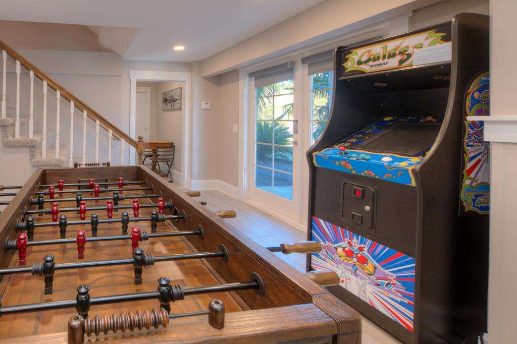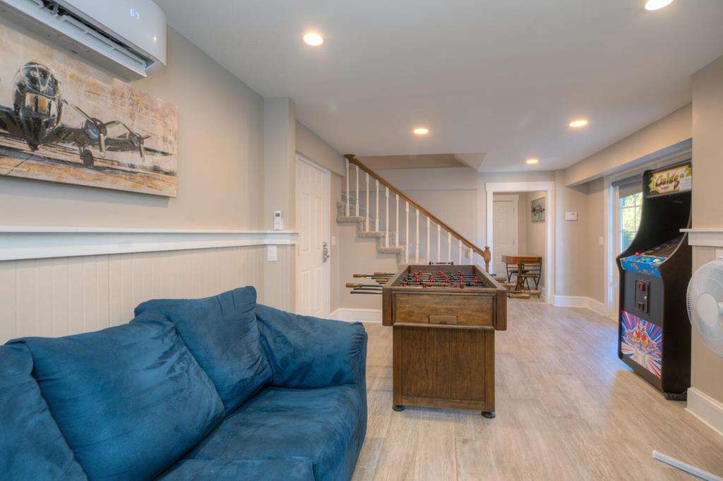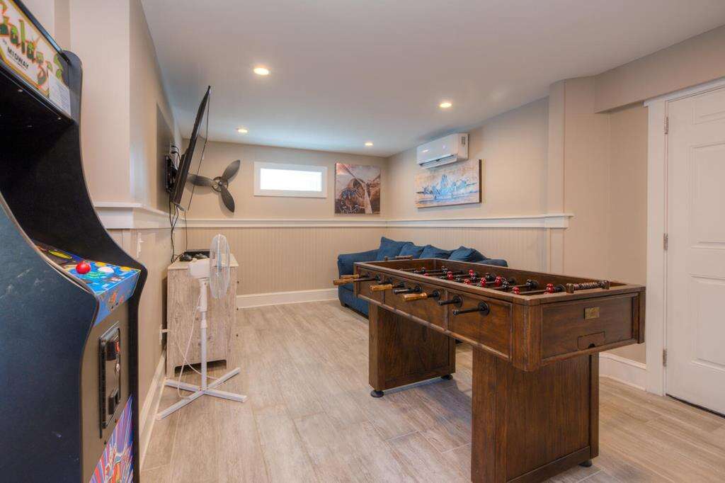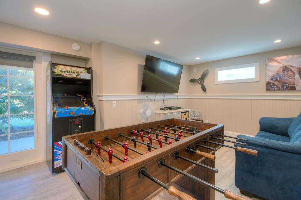 Amidst the coastal allure of Oak Island, guests at Still Waters retreat can immerse themselves in a diverse array of entertainment options and nearby activities to enhance their vacation experience. The retreat offers a bonus game room with a sleeper sofa, a 65' Smart TV, foosball table, classic table games, and an Xbox gaming system. For those seeking nostalgic fun, there's a Multicade retro arcade game available. Additionally, the proximity to the Intercoastal Waterway allows for exploration of marine life destinations. Nearby, guests can enjoy boat launches, golf courses, restaurants, and mini-golf. For a change of scenery, the Oak Island Bridge and the charming town of Southport offer unique experiences. Local attractions such as the ferry to Ft. Fisher and Bald Head Island, the North Carolina Battleship in Wilmington, and various golf courses cater to a range of interests.