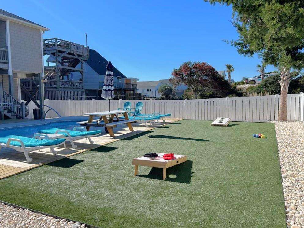 Located on the picturesque west end of Oak Island, North Carolina, the Unforgettable HipNautic is a newly remodeled 4-bedroom vacation home that offers a serene escape for up to 11 guests. This charming property has recently undergone renovations, boasting new décor, bedding, and furniture. With beach access just a short stroll away, guests can easily enjoy the sun, sand, and sea. The tranquil ambiance of the newly remodeled interior complements the stunning views of the beach, creating a perfect setting for relaxation and rejuvenation. Whether you're lounging indoors or taking in the fresh ocean breeze on the outdoor seating area, the Unforgettable HipNautic provides a delightful retreat for those seeking a peaceful getaway by the shore.