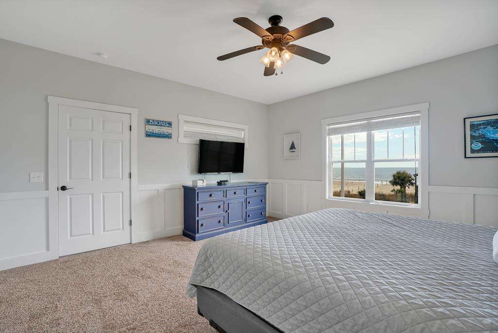 With 2 wrap-around covered porches offering ocean views and a hot tub on the top-level porch, the outdoor amenities of this luxurious beach house rental in Oak Island, NC provide a perfect blend of relaxation and enjoyment for guests. The private swimming pool in a fenced backyard invites poolside relaxation, while the beachfront entertainment is enhanced by the ample outdoor seating and keyless entry for convenience. Guests can unwind in the hot tub while taking in the stunning views or enjoy a cookout using the charcoal grill. An outdoor shower allows for a quick rinse after a day at the beach, making it easy to shift from sandy toes to indoor comfort. The outdoor spaces are designed to maximize the freedom and pleasure of outdoor living.