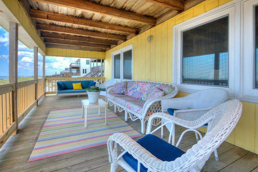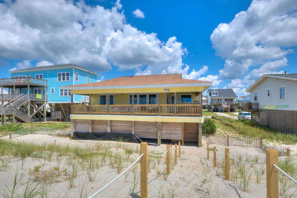Oceanfront house on Oak Island’s west end, a practical place to stay with direct beach access, 3 bedrooms, WiFi, and a covered porch in Oak Island.