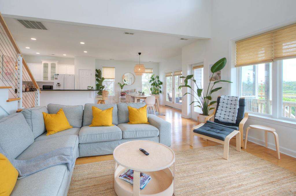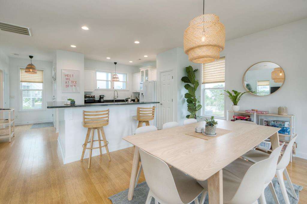 Located in a premier location near the beach and marsh, this 3-bedroom house for short-term rental in Oak Island, NC boasts an open floor plan with breathtaking ocean views. The seamless flow between the living room, dining area, and kitchen creates a spacious and inviting atmosphere for gatherings with family and friends. Large windows allow natural light to fill the space while offering panoramic views of the ocean, providing a sense of tranquility and relaxation. Whether you are enjoying a meal at the dining table or lounging in the living area, the beauty of the ocean is never far from sight. This open floorplan design truly maximizes the coastal living experience, offering freedom and comfort in a serene setting.