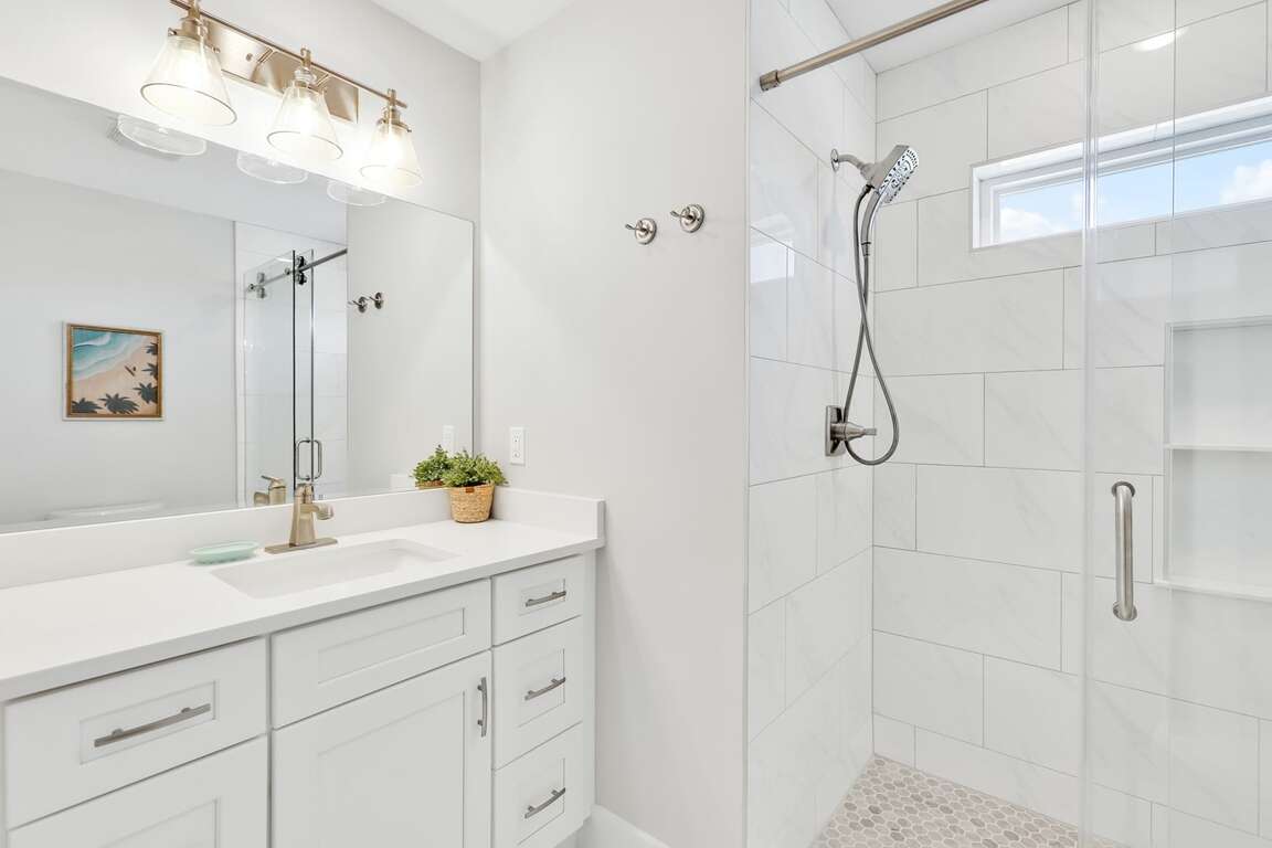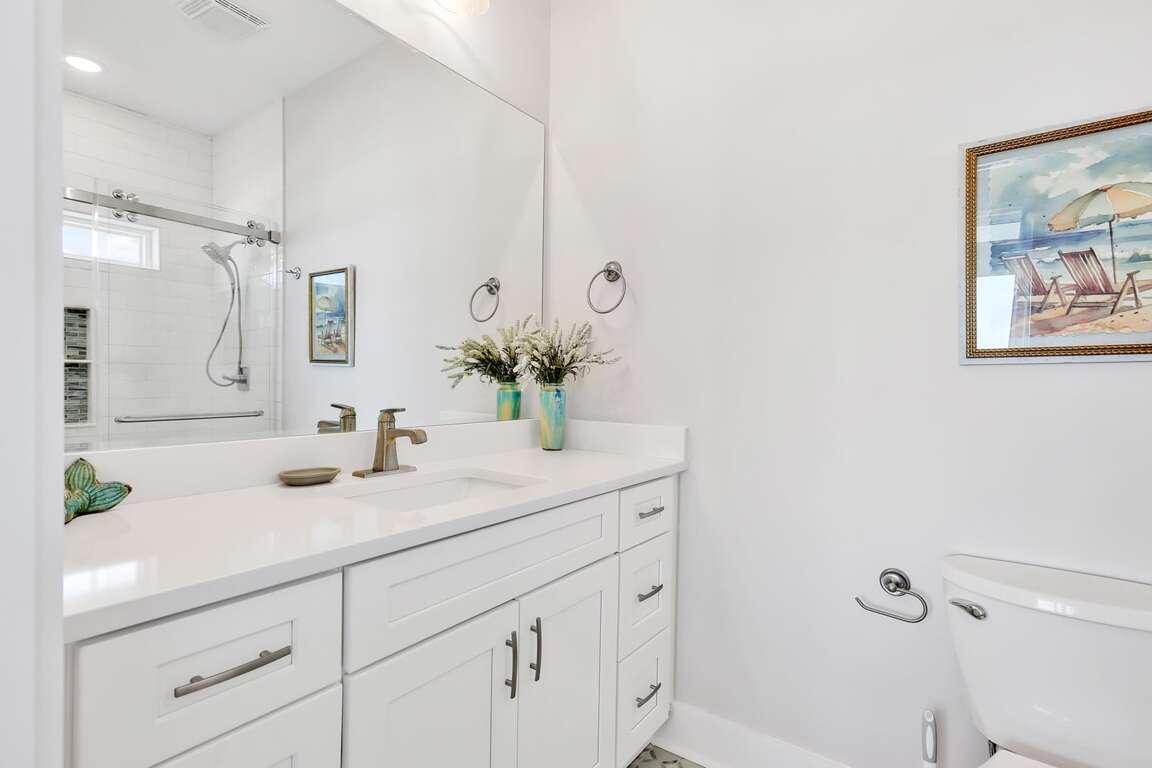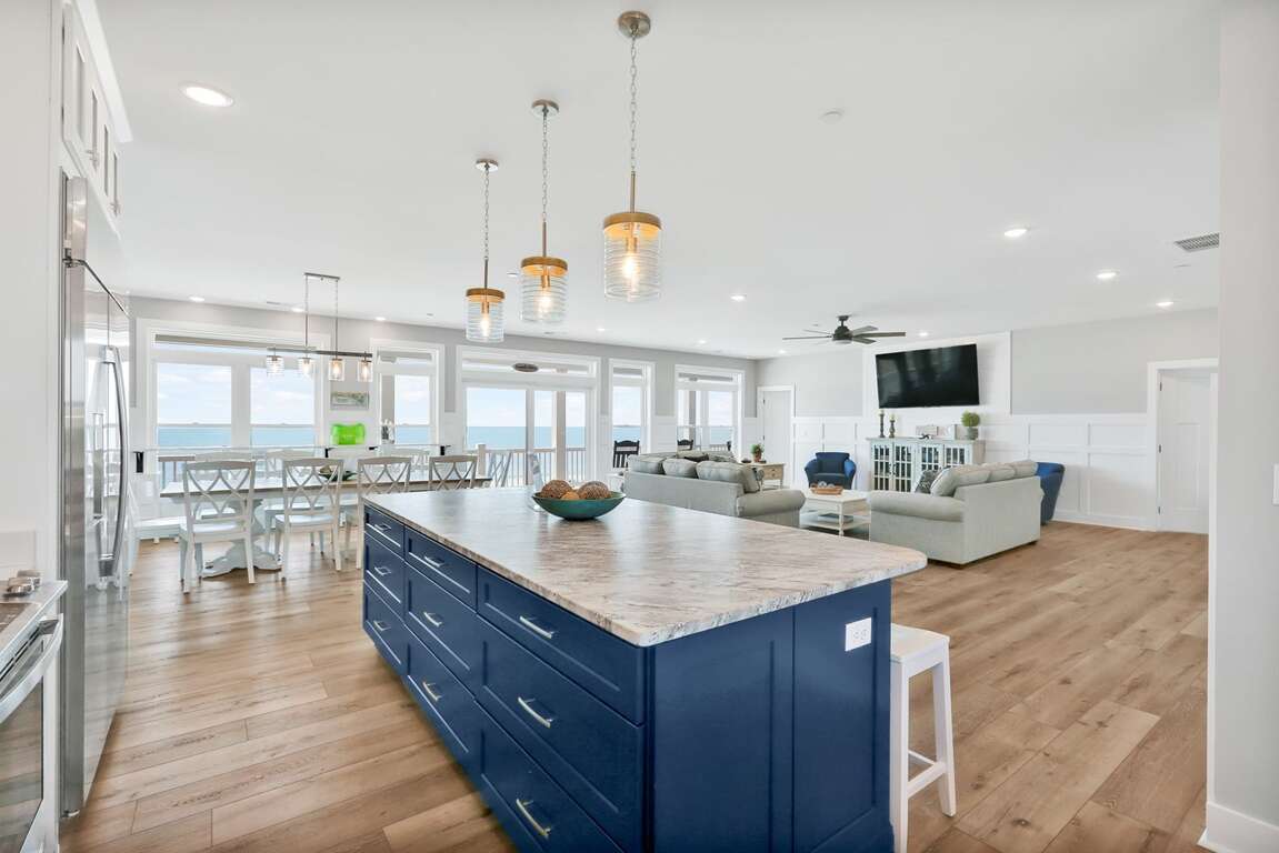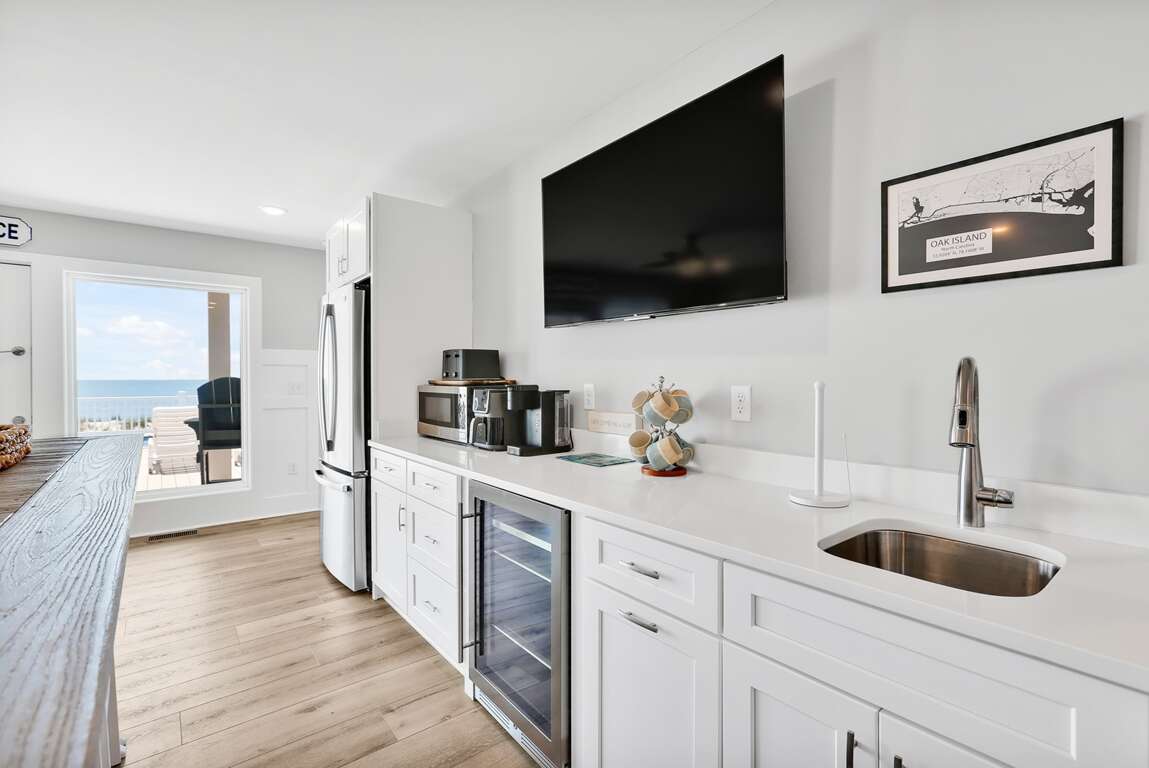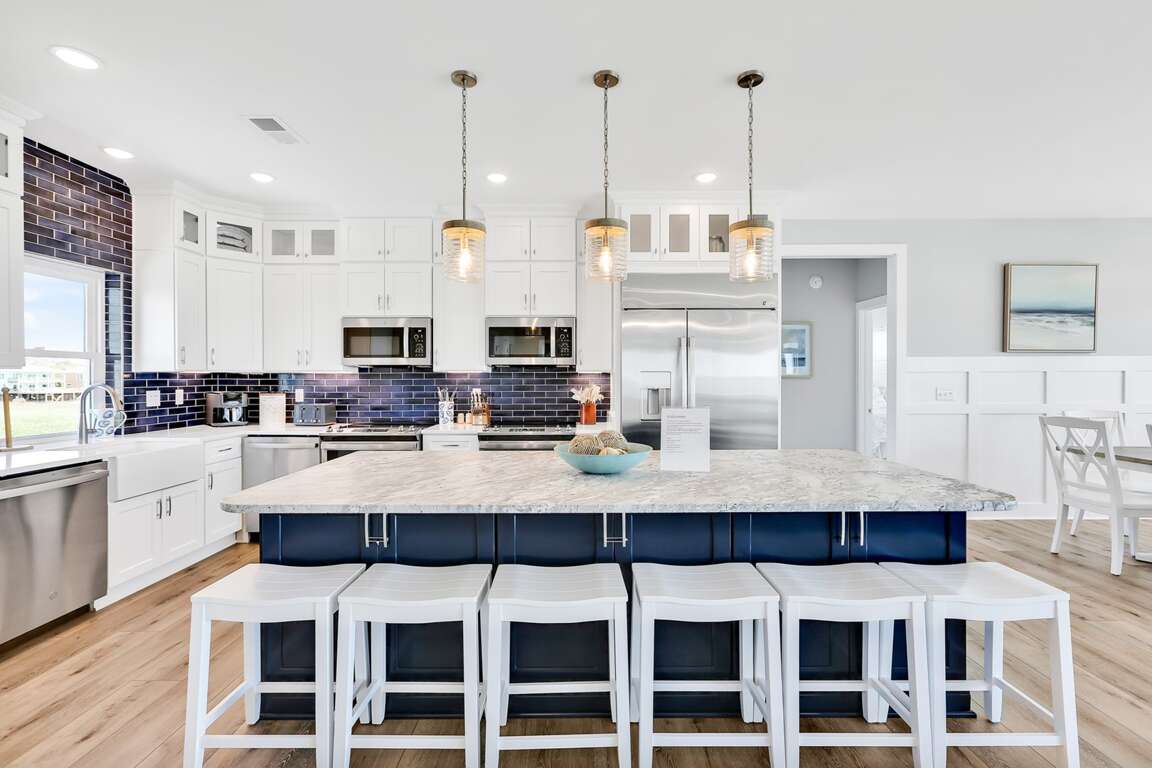 Featuring a storage room for beach toys and chairs, double tankless water heaters, and custom moldings with unique tile work, the luxurious 10-bedroom house in Oak Island, NC offers additional amenities that cater to both convenience and sophistication. The custom design details throughout the property elevate its elegance, while the luxury extras such as two sets of washers and dryers and granite countertops enhance the overall comfort and functionality. Guests can enjoy the convenience of the storage room for beach essentials, ensuring a hassle-free beach day. The double tankless water heaters provide ample hot water supply, and the custom moldings with unique tile work add a touch of sophistication to the interior, making this property a truly indulgent retreat.