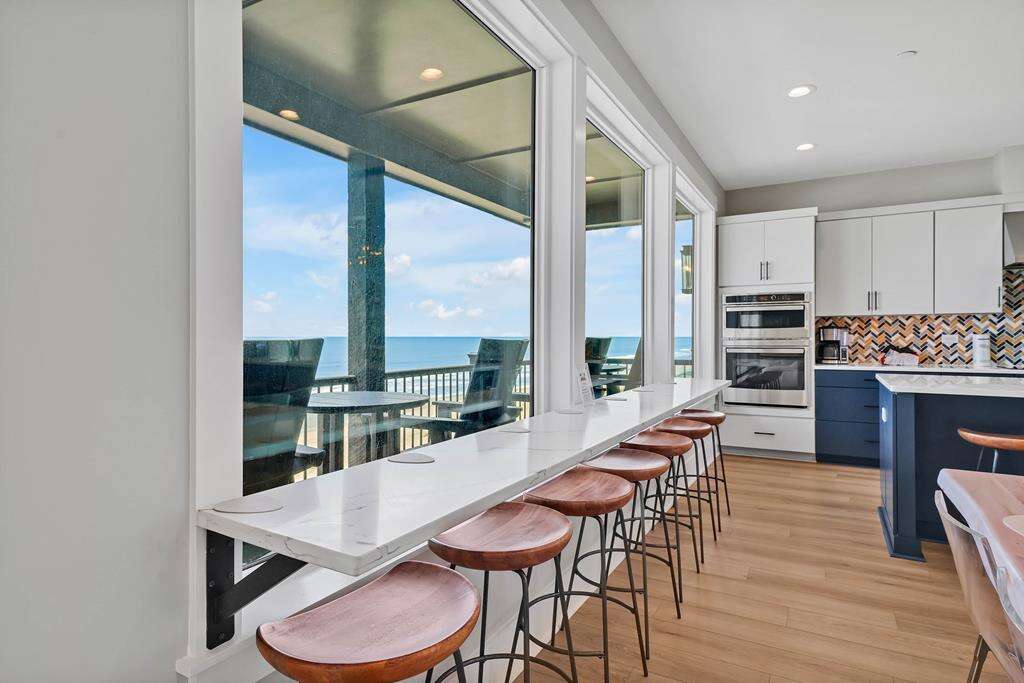 Welcome to pure luxury and relaxation. This oceanfront estate has ocean views all around. You can also enjoy an elevated pool, oversized decks, a hot tub, an elevator, and even an electric car charging station. You will feel as though you are in your own theater as you gaze at the large smart TV in the great room. With 9 private bedroom suites, everyone will feel like royalty while relaxing in complete southern hospitality. Six of the 11 bedrooms have direct ocean views. The kids are still remembered, as the two bunk bedrooms are super fun with queen over queen in each room. This home has an oversized chef's kitchen with brand new everything - double dishwashers, and double refrigerators. Gaze out over the ocean while nestling at the oceanfront coffee bar with oversized windows. Dining in Black Pearl will be like no other experience, as you are surrounded by floor-to-ceiling glass, allowing you to soak in the endless ocean views. Relax in the spacious family gathering room with oversized couches and comfortable chairs. Sit back and put your feet up while you sip your favorite beverage and take in the long-range ocean views. Remember to spend time on one of the oversized covered porches and experience ocean breezes whisking through your hair and breathing in the healing salt air. For those who want to be able to separate while you are still together, there is another family gathering room just off the pool deck on the first level equipped with a large Smart TV, microwave, and full-size refrigerator with ice maker. It's a great place to get away and entertain by the pool. Out on the pool deck, you can enjoy the large covered area and a large sun deck, all elevated to take in the ocean views. Remember to bring your feast to prepare on the double charcoal grills. This home has a hot/cold outdoor shower, as well as a storage room to store all your beach toys and chairs. You will surely notice the tankless water heaters because no one will get a cold shower (unless they want one, of course). There is double the capacity to do your laundry with two washers and two dryers. The owners of this home paid particular attention to details with extensive moldings, unique tile work in each bathroom, and beautiful granite throughout the house. Unforgettable is the only way to describe this home, as it is the perfect setting for any family's beach vacation or your special event (additional fee for events). Conveniently located near Bluewater Point Boat Ramp and Lonerider Restaurant. Come and experience Oak Island's "Black Pearl" and find yourself in a luxury bed, longing to stay forever!