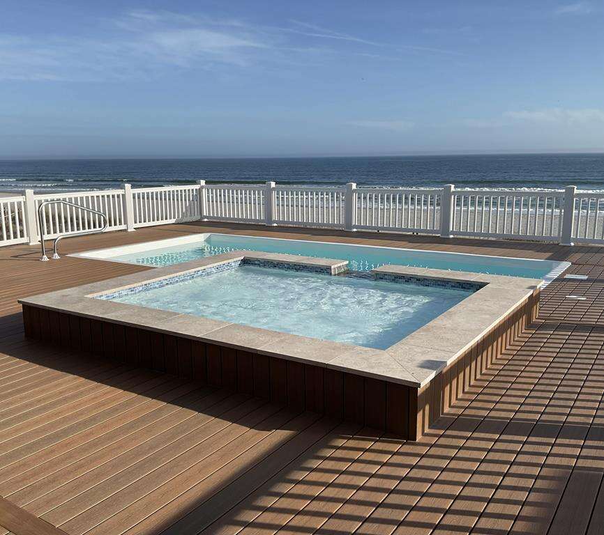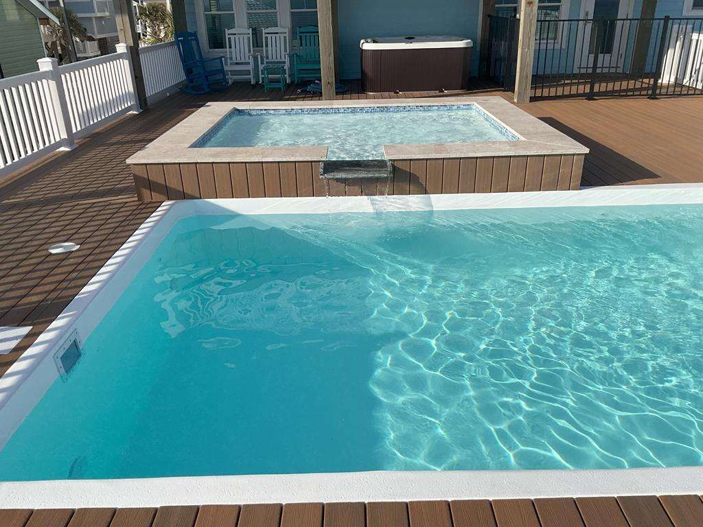 Newly renovated oceanfront home featuring a new elevated swimming pool, kiddie pool/tanning ledge, and separate hot tub just steps from the beach. Relax poolside with the Atlantic only feet away.