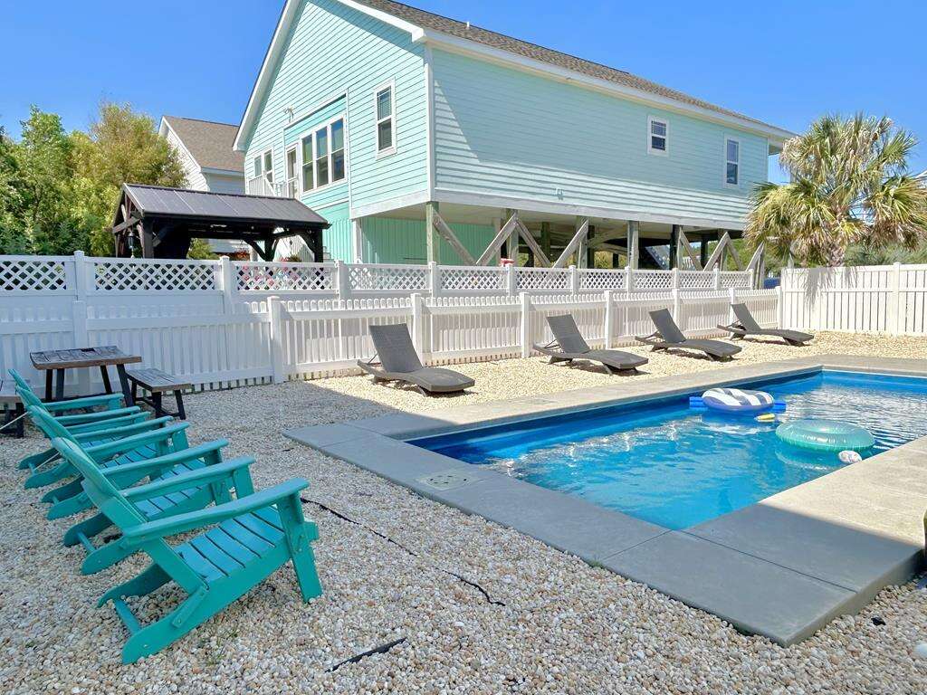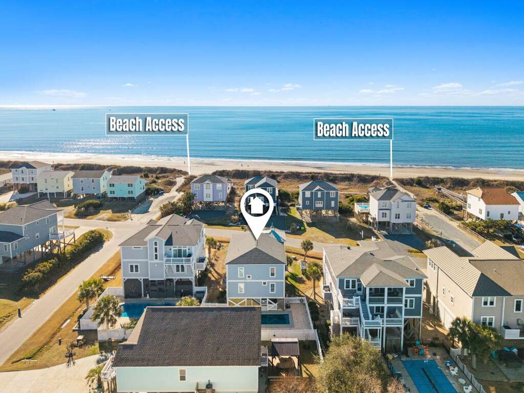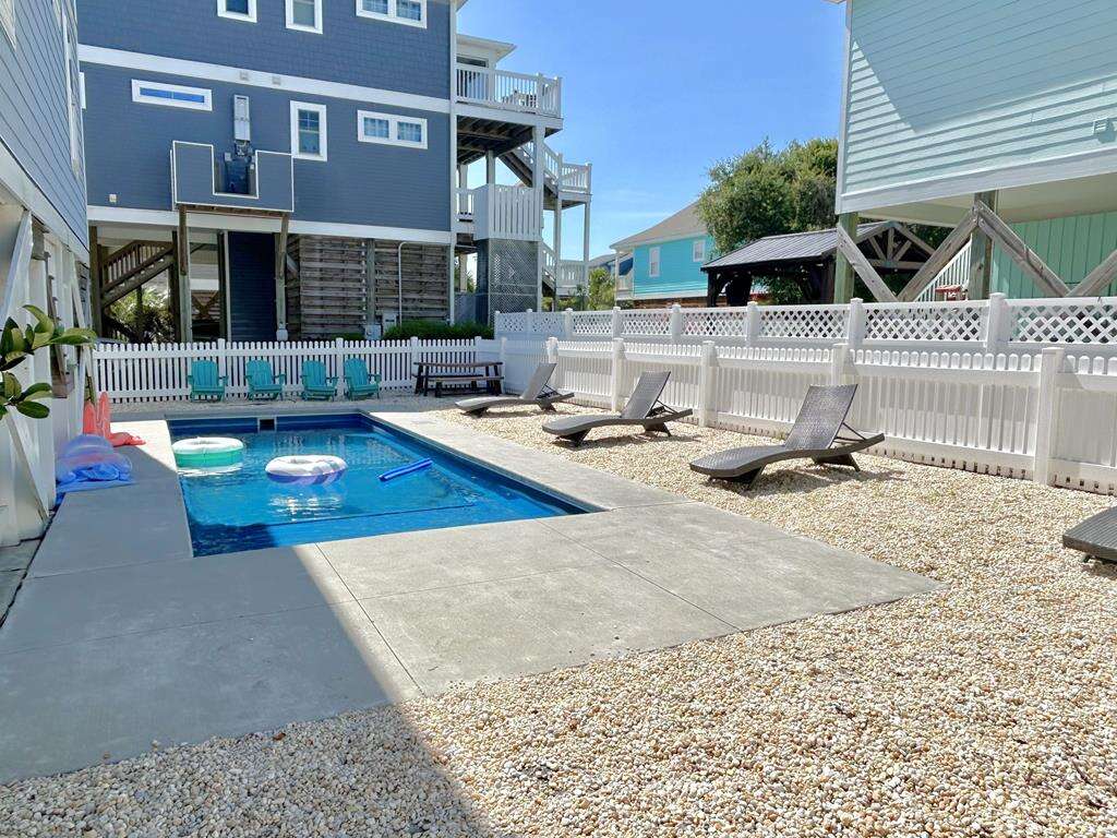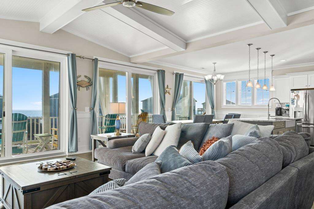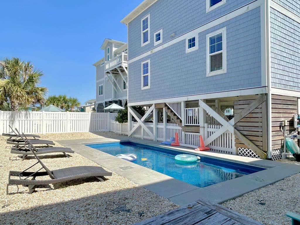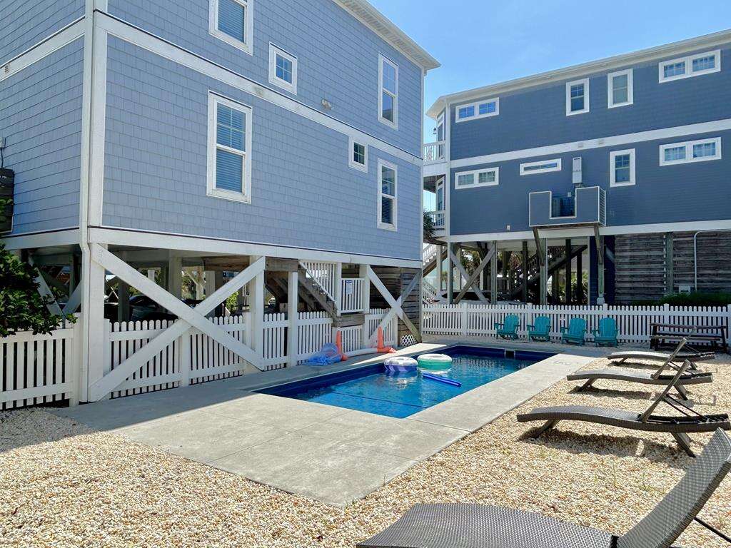 Imagine yourself lounging in peaceful serenity on one of 2 oceanside covered porches soaking in spectacular sunrises and sunsets over majestic ocean views. Step inside to an open concept, reverse floor plan where you can still enjoy those wonderful views from the comfort of the living, dining or kitchen on the top floor. This space also provides a perfectly large area for everyone to be together. Two bedrooms are also on this floor. The bottom level features the remaining 4 bedrooms, some with access to the large covered porch and some with a view overlooking a tempting private saltwater swimming pool that just beckons you to take a dip and cool off. The pool area also offers a grill and picnic table where everyone can enjoy grilling out your fresh catch after a day of fishing or classic hotdogs and hamburgers that seem to shout, "It's summertime!"