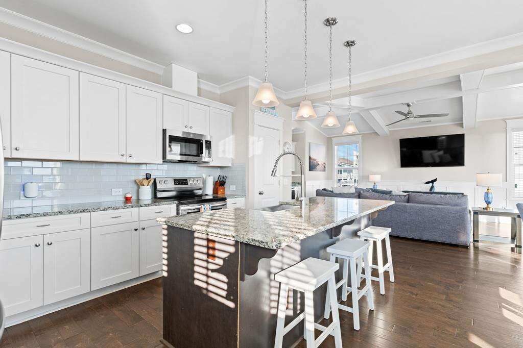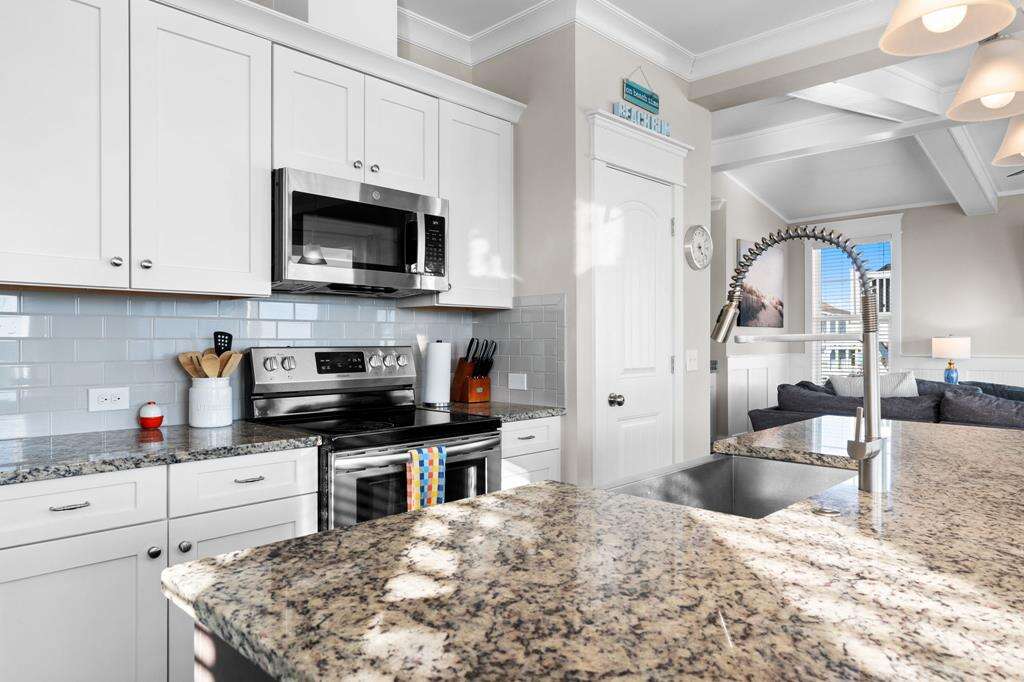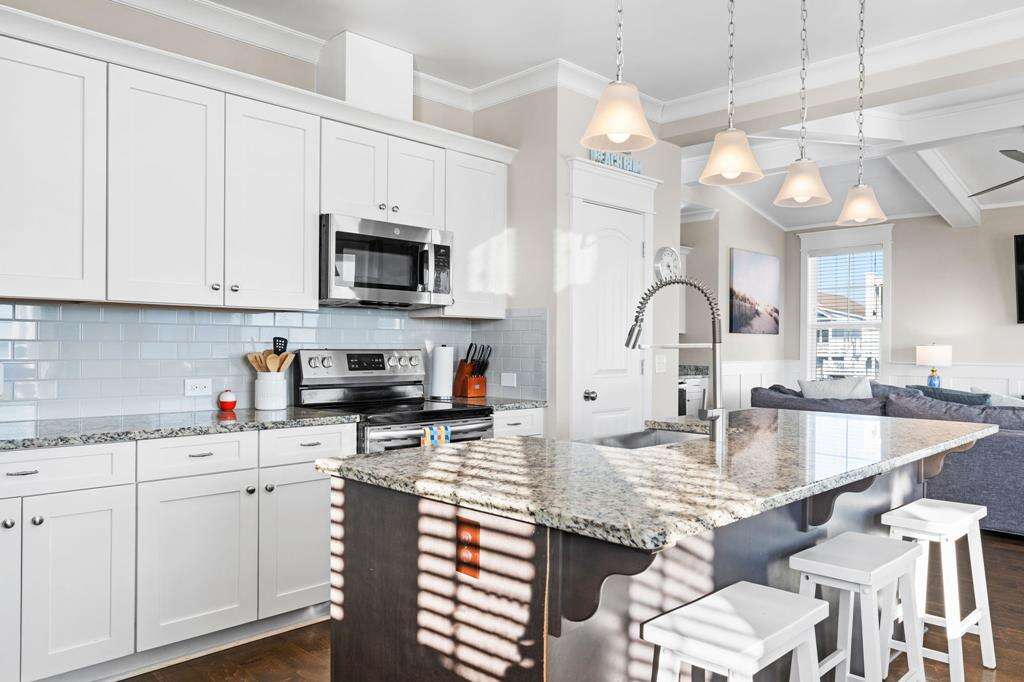 - Kitchen: Island breakfast bar. Stainless-steel appliances. Refrigerator with ice maker. Electric range and cooktop. Dishwasher. Built-in microwave. Crockpot. Air fryer. Toaster. Keurig and drip coffee makers. Blender. Stock pot.