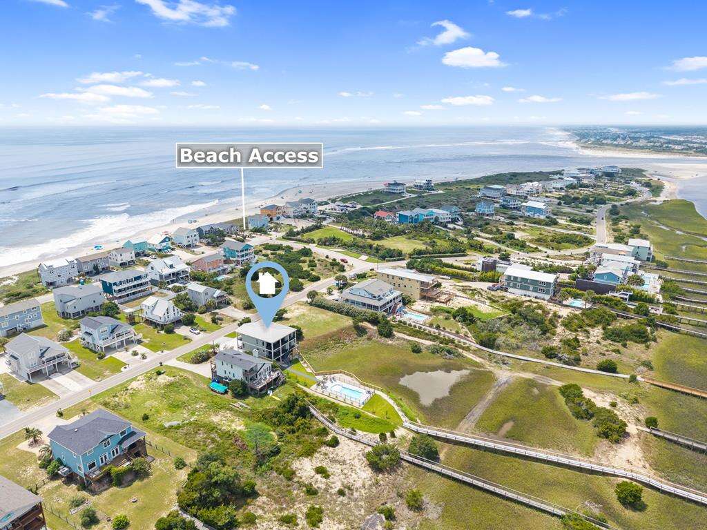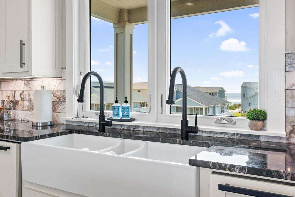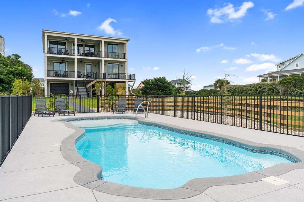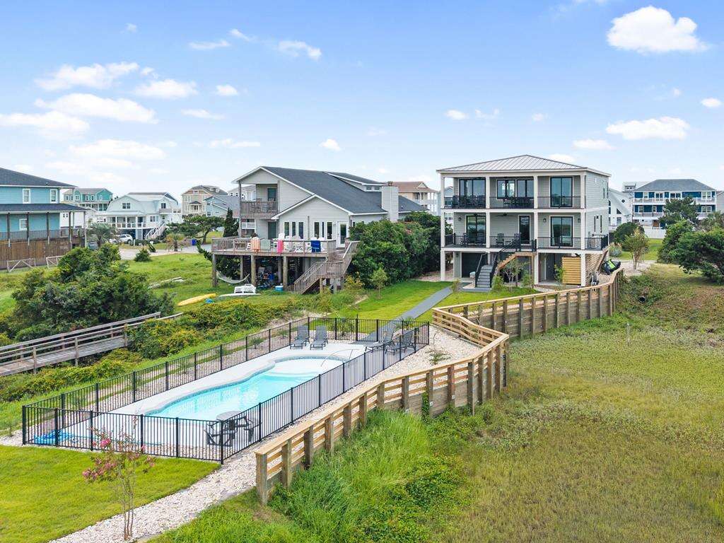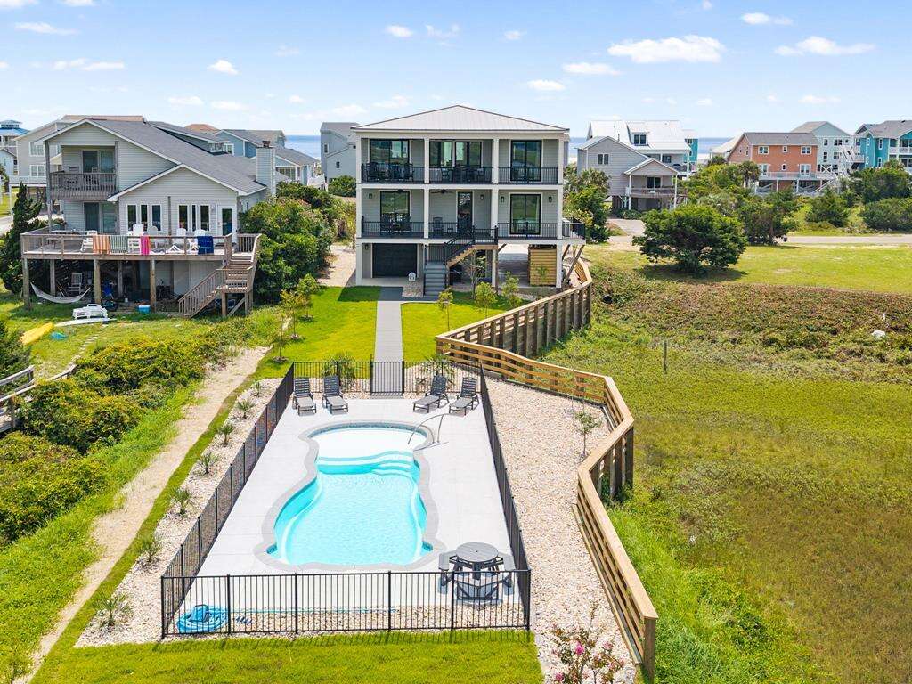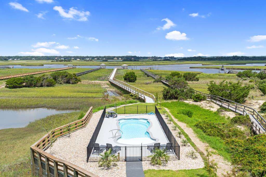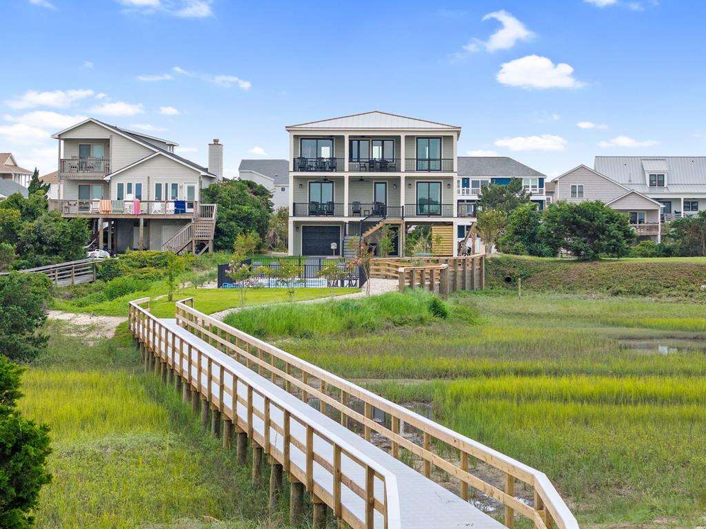 This absolutely magnificent, newly constructed home is surrounded by water views and breathtaking sunrises and sunsets! You can soon be basking in unforgettable luxury and beauty that will have you never wanting to to leave! Built with you in mind, you can enjoy cooling off in a private swimming pool or relaxing in the hot tub with your favorite beverage in hand. For your convenience, you will find a half bath and an extra full-size refrigerator on the ground level near the pool area. An elevator can take you up to an ideally designed layout with the first level featuring 5 of 7 bedrooms. The top level boasts the living, dining and kitchen area, along with the remaining 2 bedrooms. Six out of the 7 bedrooms have their own private ensuite bath, making this home perfect for couples and families. The kids will love the bunk bedroom that shares a bath with the hallway. Just a short stroll and you can enjoy The Point, a local favorite beach access that is located right on the inlet and offers unique scenery and views. You will want for nothing here! Let the Oak Island charm overtake you and make your reservation today at Sounds Salty before it's too late! This spectacular home with premier location will not last long!