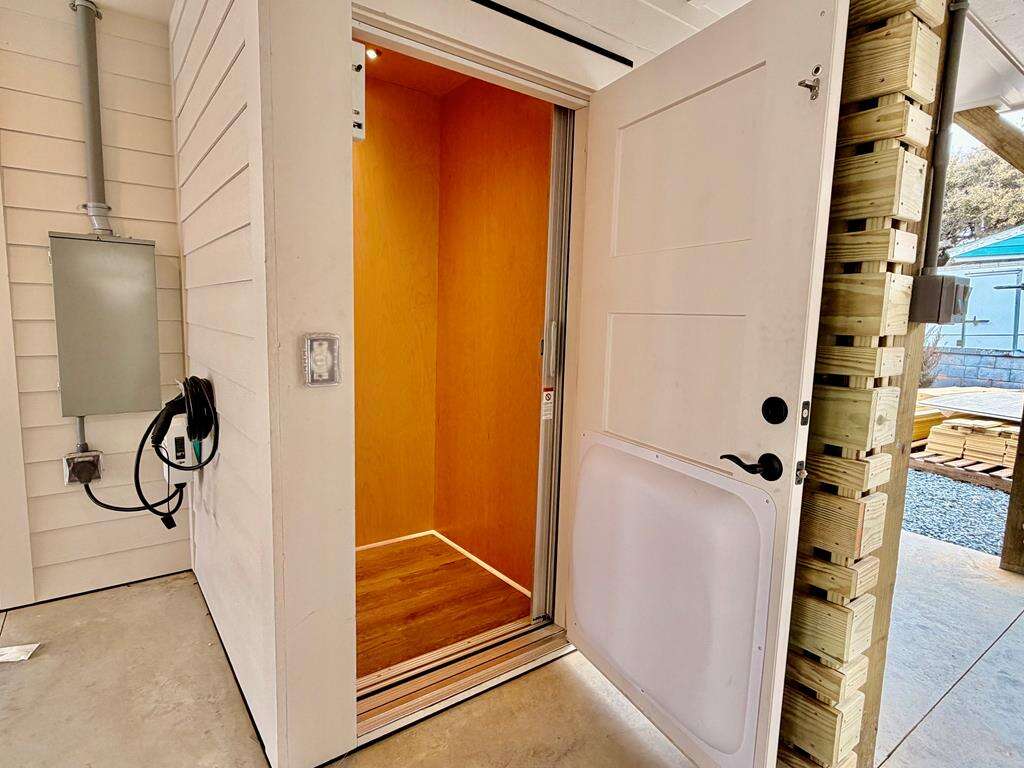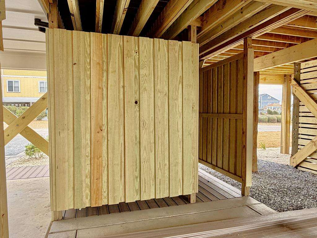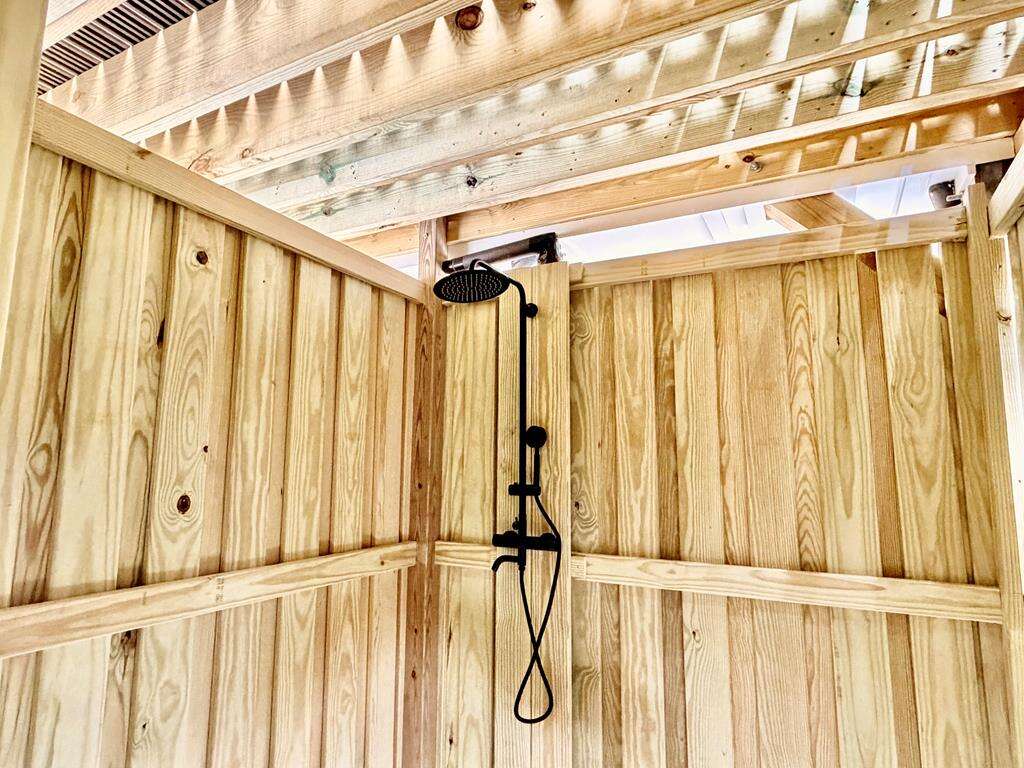 - Enclosed hot and cold outdoor shower