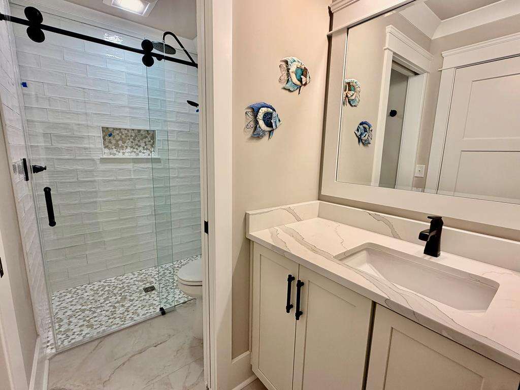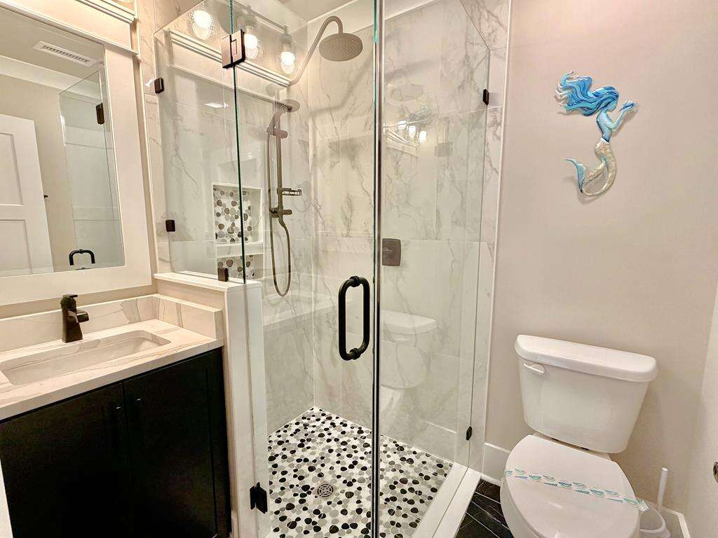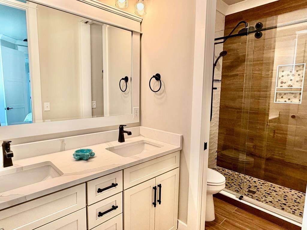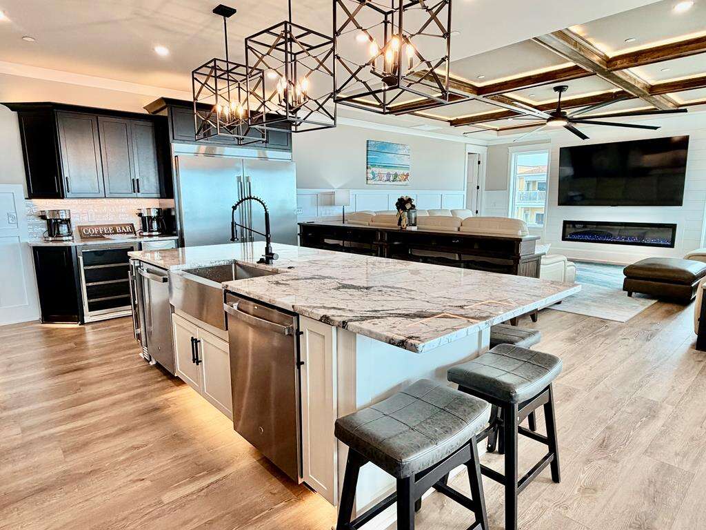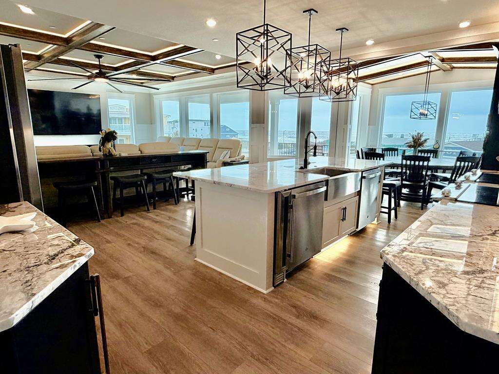 Everyone will be comfortable, as all 10 bedrooms in this amazing home have their own private ensuite bath. Also, the high capacity water heater ensures there are no cold showers, unless you want one. Plenty of space for all your loved ones to gather. The top floor features a large living, dining and gourmet kitchen with half bath and 4 of 10 bedrooms. The bottom floor conveniently includes a 2nd living area with kitchenette just off the pool deck, another half bath, plus the remaining 6 bedrooms. The location of this lovely home is also ideal, as you are within a short stroll to the Oak Island Pier, Koko Cabana restaurant and The Lazy Turtle restaurant. Even more shops, dining and attractions are also close by. The beach access is just across the street, so you can take long walks on the beach and build sandcastles anytime you like. Suite and Salty beckons you to forget about all your cares and just live in the moment. Make your reservation today! This stunning new home will not last long!