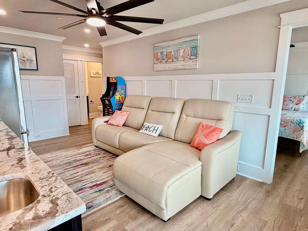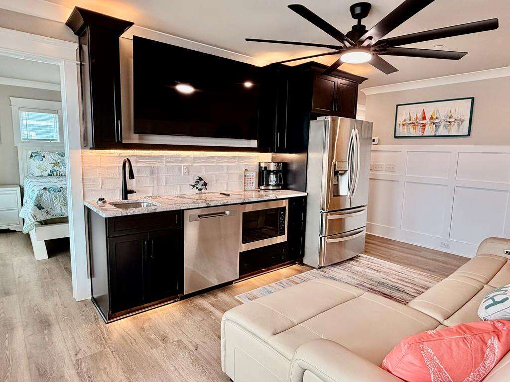 - 2nd living area with kitchenette, including dishwasher, refrigerator, microwave, and sink