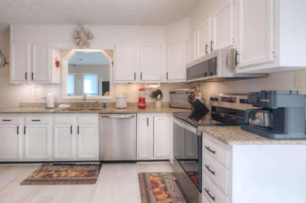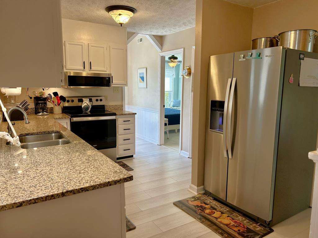 - Fully equipped kitchen: Granite countertops. Stainless-steel appliances. Refrigerator. Electric range with cooktop. Dishwasher. Microwave. Crockpot. Griddle. Air fryer. Toaster oven. Toaster. Keurig and drip coffee makers. Blender. Stock pot.
