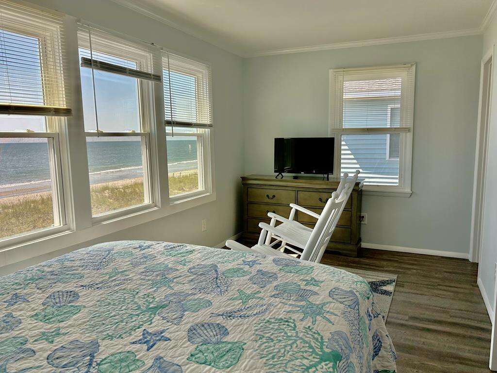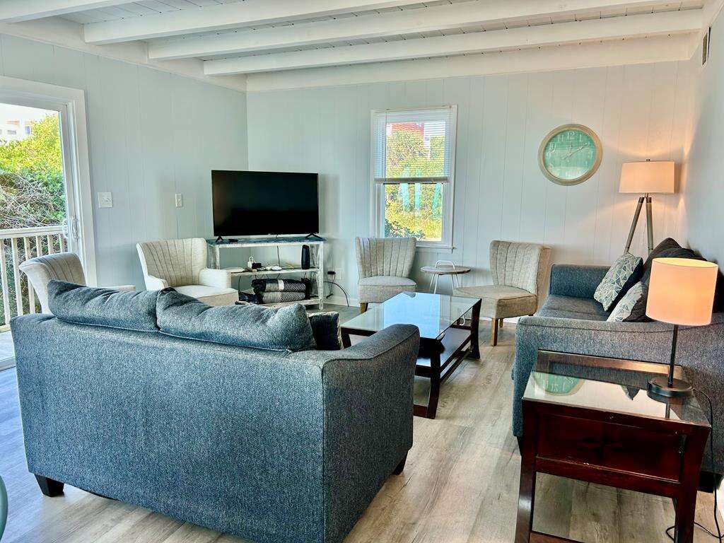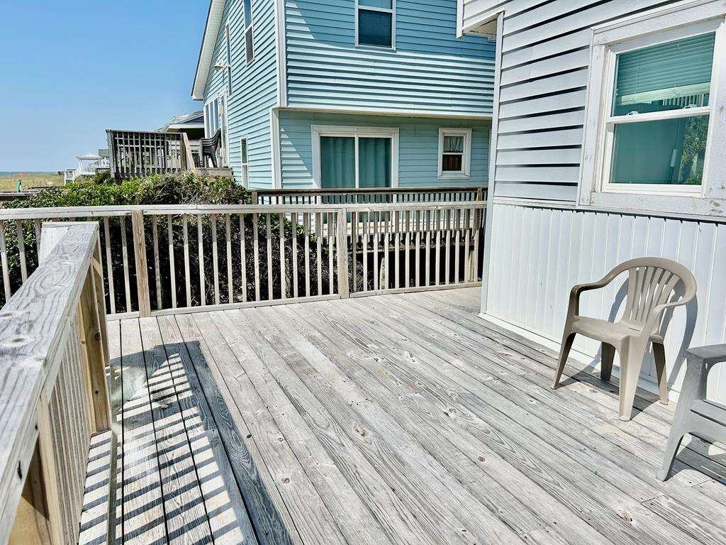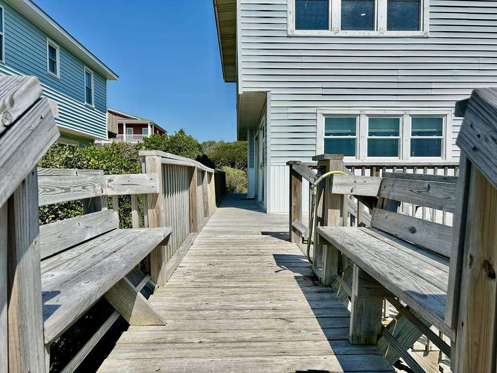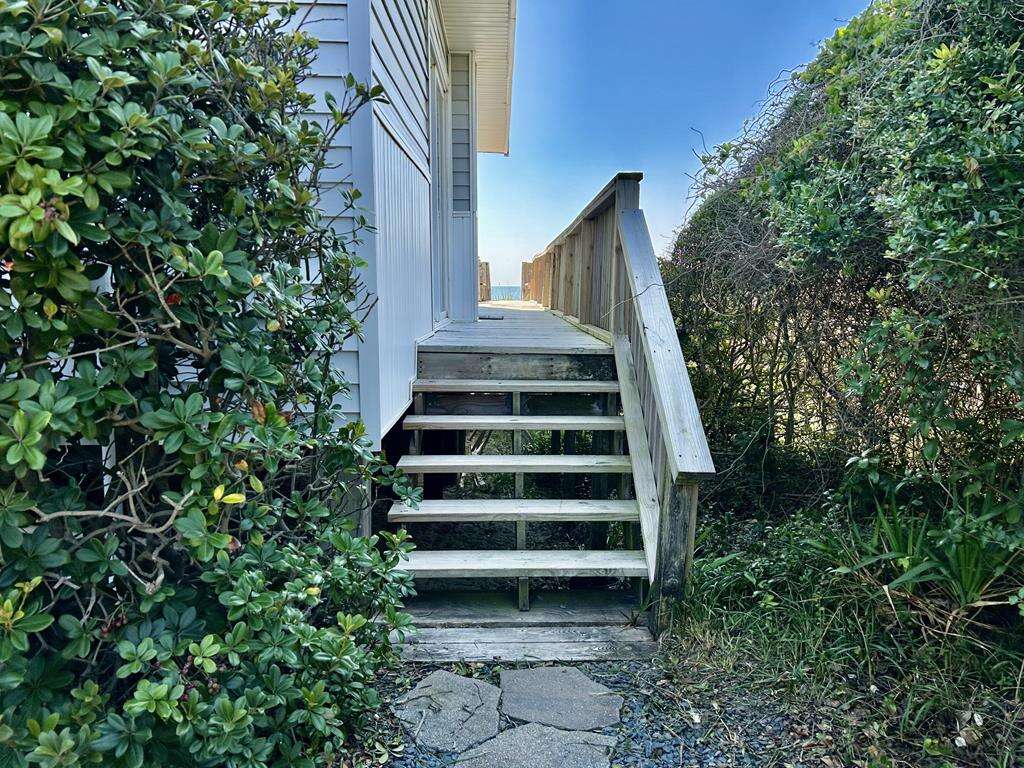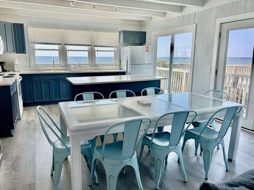 This charming, uniquely designed home offers you and your loved ones the perfect beach oasis. Enjoy a lovey, updated oceanfront home with the modern amenities and touches you desire, but still keeping the feel of classic beach cottage character with an angled beam ceiling on the lower level. Luxury plank flooring throughout, plus a beautiful open-concept living, dining and kitchen on the lower level, makes for comfort and ease on your beach retreat as you enjoy gorgeous ocean views. The kitchen is thoughtfully designed for making culinary creations a breeze, with a large island for extra cooking prep space, as well as breakfast bar seating. Everyone can be in on the fun! Travel up to the middle level where 2 bedrooms share a full guest bath in the hallway. Then, up on the top level the remaining 2 bedrooms share a Jack-n-Jill bath. This home is ideal for families, couples or a group of friends! Just outside, you can lounge on the oceanfront sun deck soaking in warm, salty ocean breezes and listen to the lullaby if the waves roll onto shore. Just steps away from the deck, spend the day on the shore building sandcastles and enjoying long walks on the beach at sunrise and sunset. Nearby, experience the sights and sounds of the Intracoastal Waterway, as well as Blue Water Point Marina, and enjoy casual seafood dining on the water at Lonerider Restaurant. Travel down to The Point for spectacular sunset views over the inlet. You might even catch a glimpse of a pod of dolphins as they swim by or pelicans flying in formation overhead.