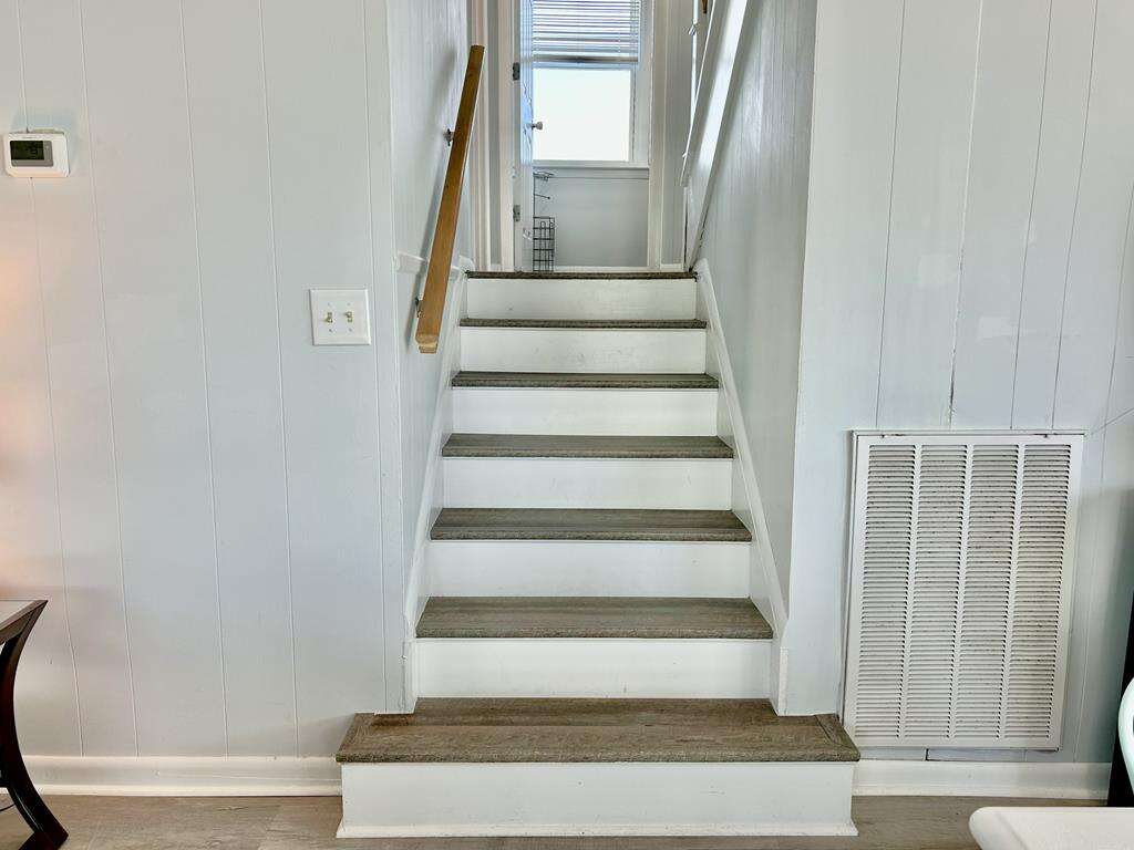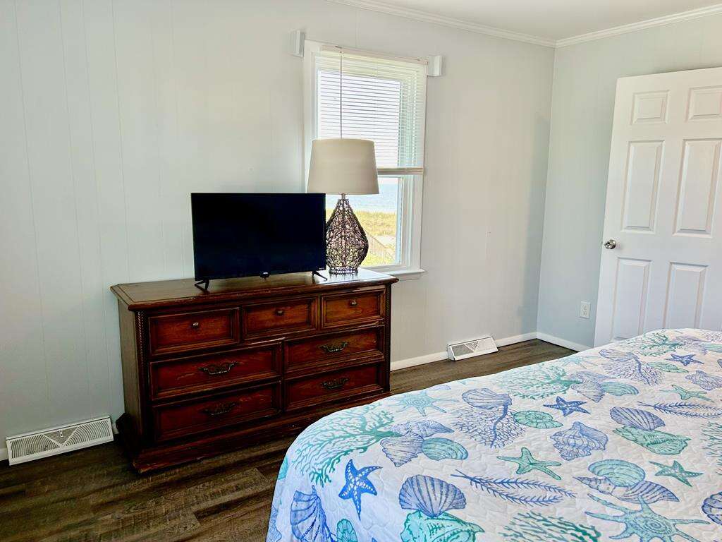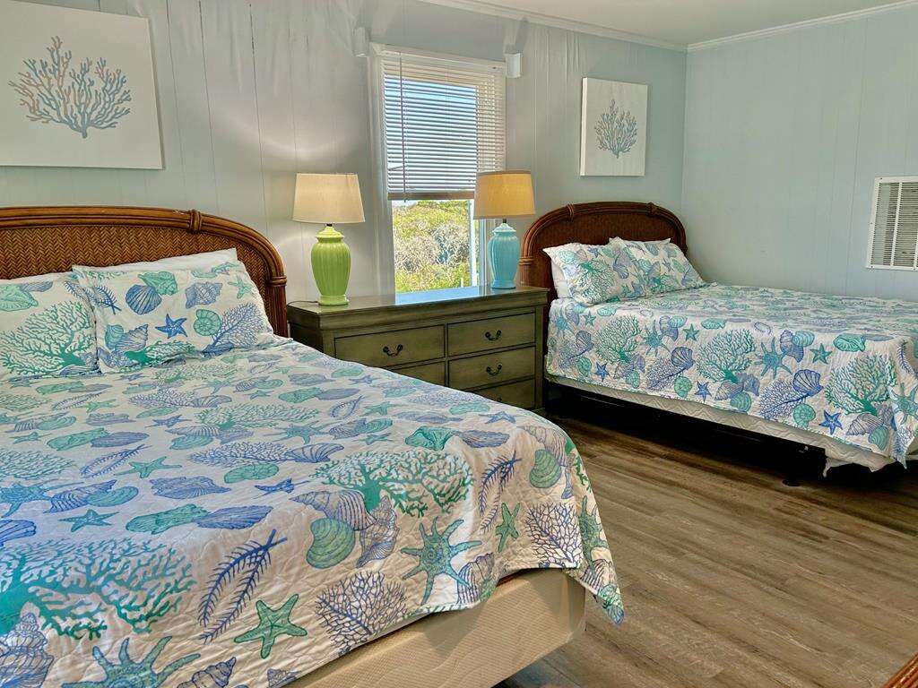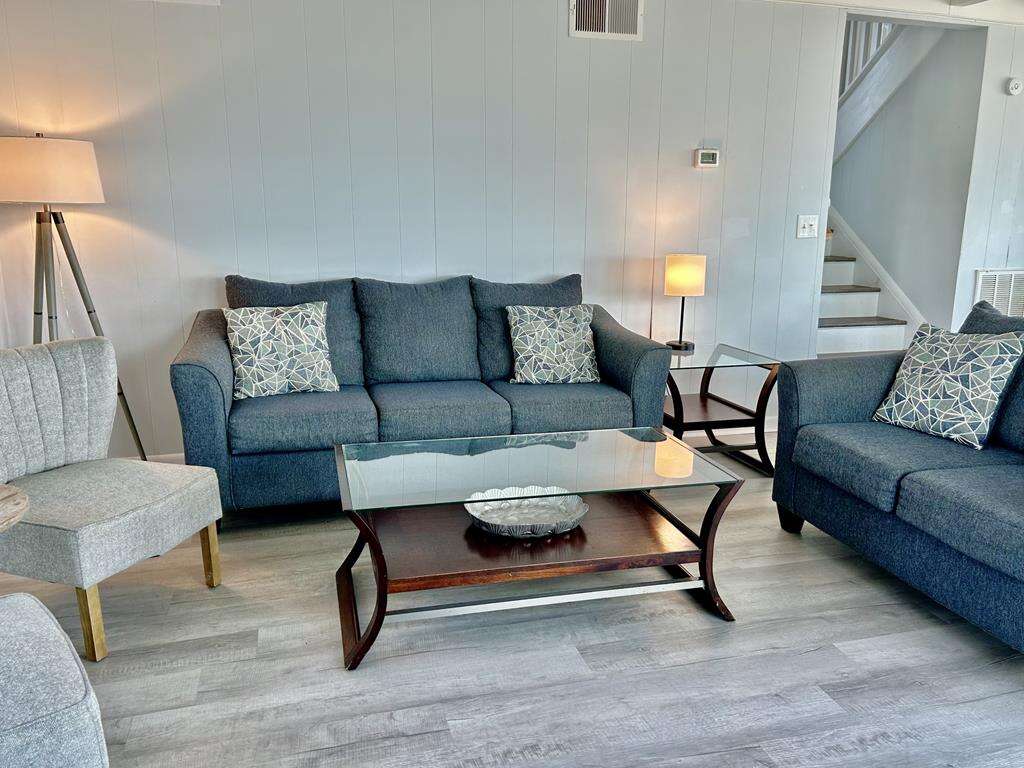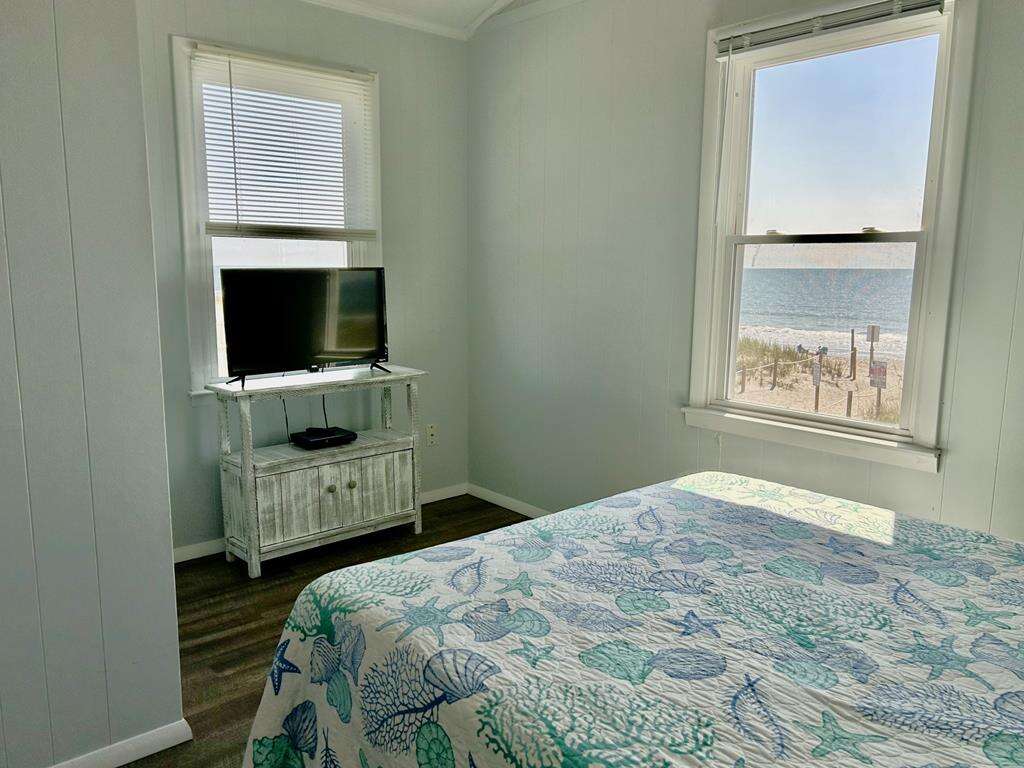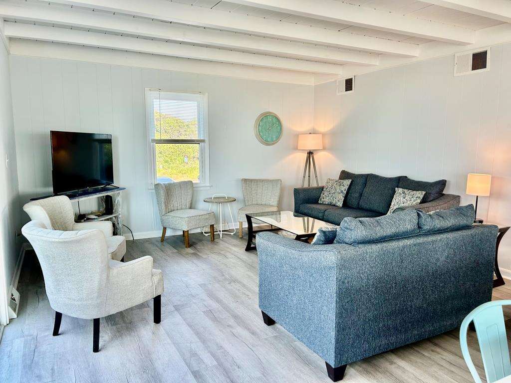 This charming, uniquely designed home offers you and your loved ones the perfect beach oasis. Enjoy a lovey, updated oceanfront home with the modern amenities and touches you desire, but still keeping the feel of classic beach cottage character with an angled beam ceiling on the lower level. Luxury plank flooring throughout, plus a beautiful open-concept living, dining and kitchen on the lower level, makes for comfort and ease on your beach retreat as you enjoy gorgeous ocean views. The kitchen is thoughtfully designed for making culinary creations a breeze, with a large island for extra cooking prep space, as well as breakfast bar seating. Everyone can be in on the fun! Travel up to the middle level where 2 bedrooms share a full guest bath in the hallway. Then, up on the top level the remaining 2 bedrooms share a Jack-n-Jill bath. This home is ideal for families, couples or a group of friends! Just outside, you can lounge on the oceanfront sun deck soaking in warm, salty ocean breezes and listen to the lullaby if the waves roll onto shore. Just steps away from the deck, spend the day on the shore building sandcastles and enjoying long walks on the beach at sunrise and sunset. Nearby, experience the sights and sounds of the Intracoastal Waterway, as well as Blue Water Point Marina, and enjoy casual seafood dining on the water at Lonerider Restaurant. Travel down to The Point for spectacular sunset views over the inlet. You might even catch a glimpse of a pod of dolphins as they swim by or pelicans flying in formation overhead.