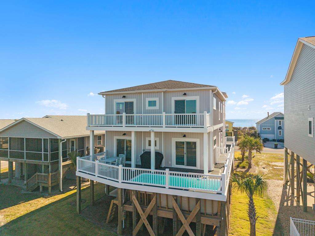 Come and enjoy this newly built 2nd row home with all the luxuries you desire for your beach retreat! Situated next to a corner lot, you will be able to rise each morning and lounge on one of the ocean side porches soaking in gorgeous ocean views that will take your breath away. The beach access is just across the street whenever you feel like a walk along the sandy shoreline or a swim in the ocean. An elevated, in-deck pool beckons you to cool off anytime you like without the sand. 8 bedrooms and 5 and a half baths, plus a large great room area offers everyone plenty of space to be together or slip away for some privacy if so desired. Centrally located in the heart of Oak Island, you will be within walking distance to everything you need and want from necessities to fun! Thrill seekers and quiet retreaters alike will all find much to entertain!