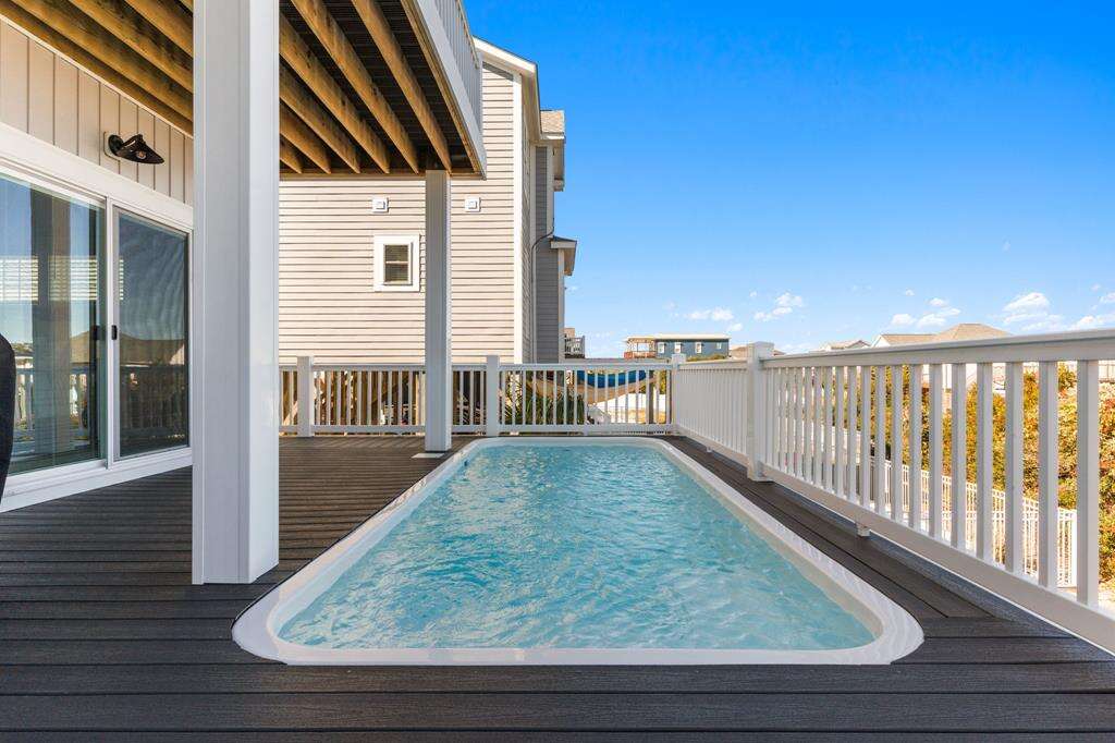 - Elevated, in-deck, saltwater swimming pool