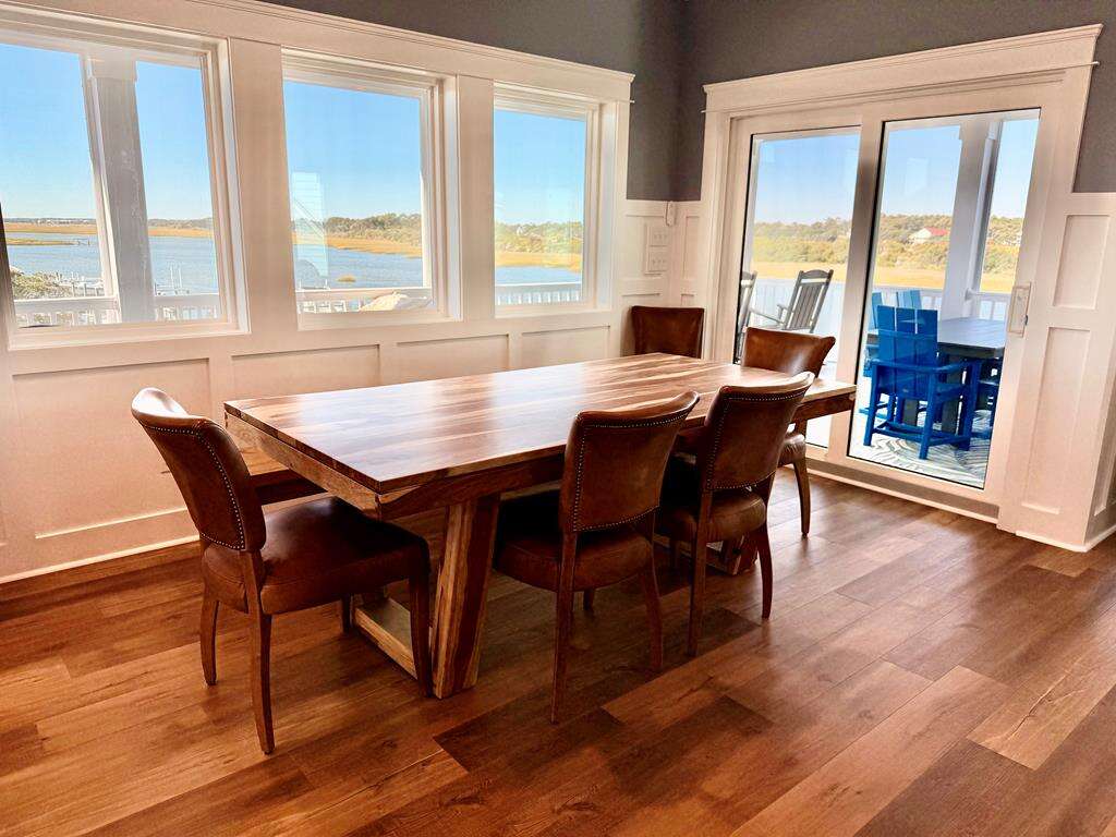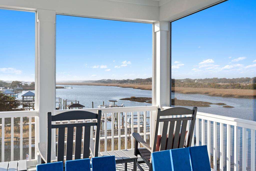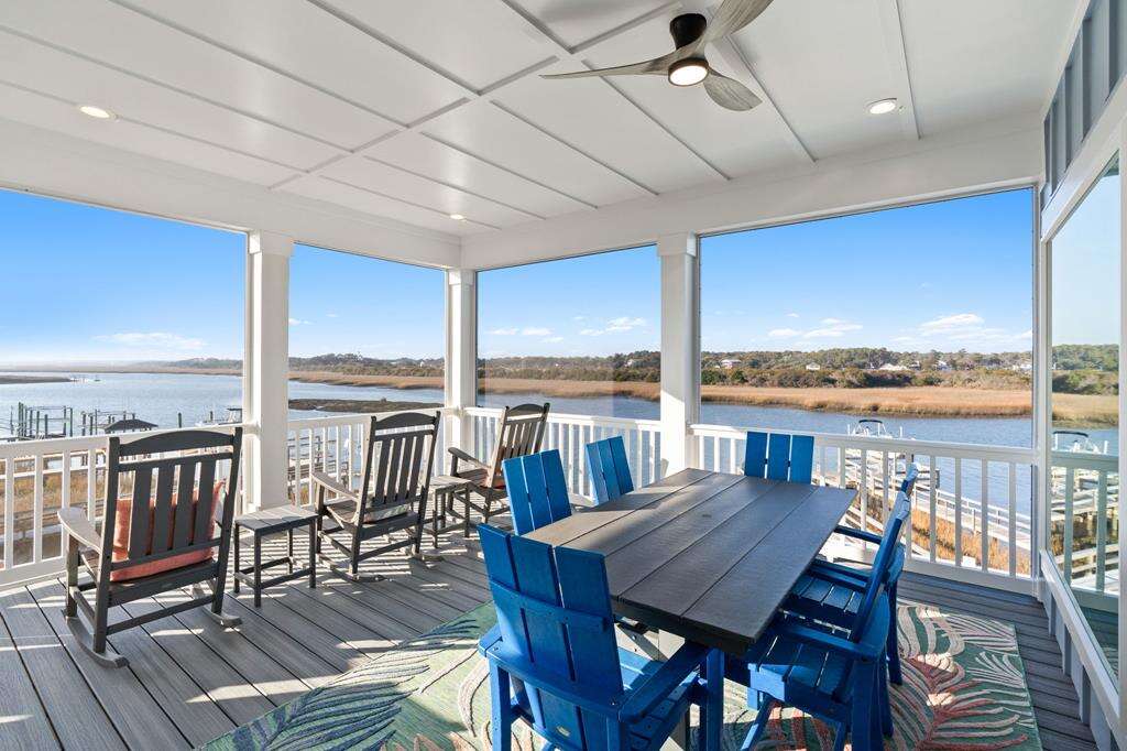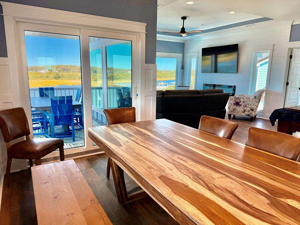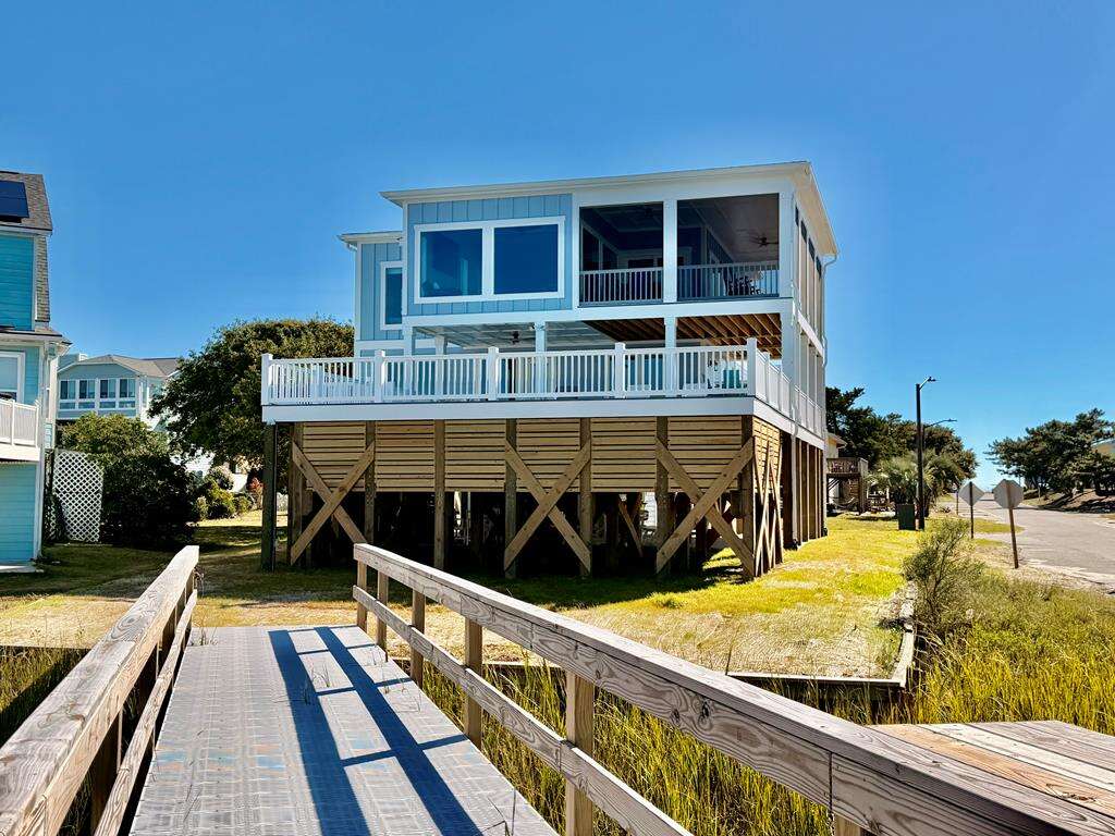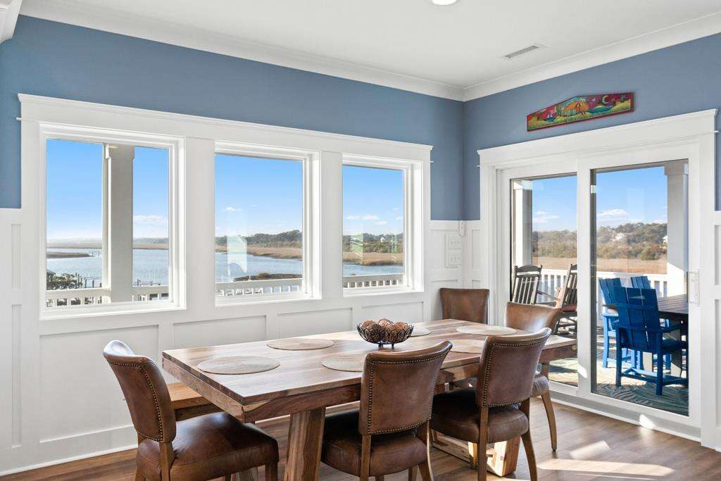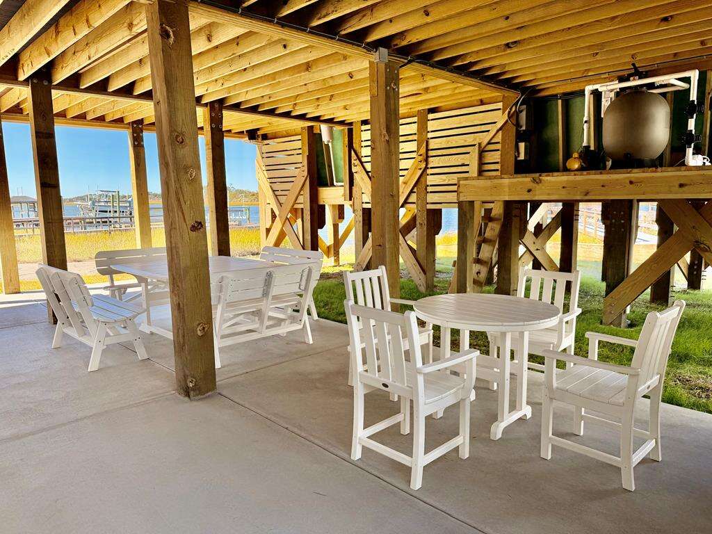 This newly constructed home is ideally located on a corner lot on Oak Island's west end, giving you access to various bodies of water to explore! Such a fantastic and rare find to be right next to a Public Water Access with the beach access just a short walk down the same street! Plus, a public boat ramp a few blocks away! Water lover's will never want to leave! Inside, this home is perfectly suited for unforgettable comfort and relaxation to be able to unwind when you are not out at the water. With a reverse, open-concept floor plan you will find the top level offers a very spacious main great room, dining and kitchen, as well as a primary king bedroom with private bath. The bottom floor offers the remaining 4 bedrooms - 2 bedrooms are kings, each with their own private bath, and the other 2 bedrooms offer a king in one and 2 bunk beds twin over twin in the other. These 2 bedrooms share a hallway bath. There is also a 2nd living area with wet bar just off the pool deck. This 2nd living area also offers extra sleeping space with a double sleeper sofa. Get ready to make Docks and Dunes your new sweet spot at the beach! This rare find won't last long, so make your reservation today before this island treasure gets taken!!!!