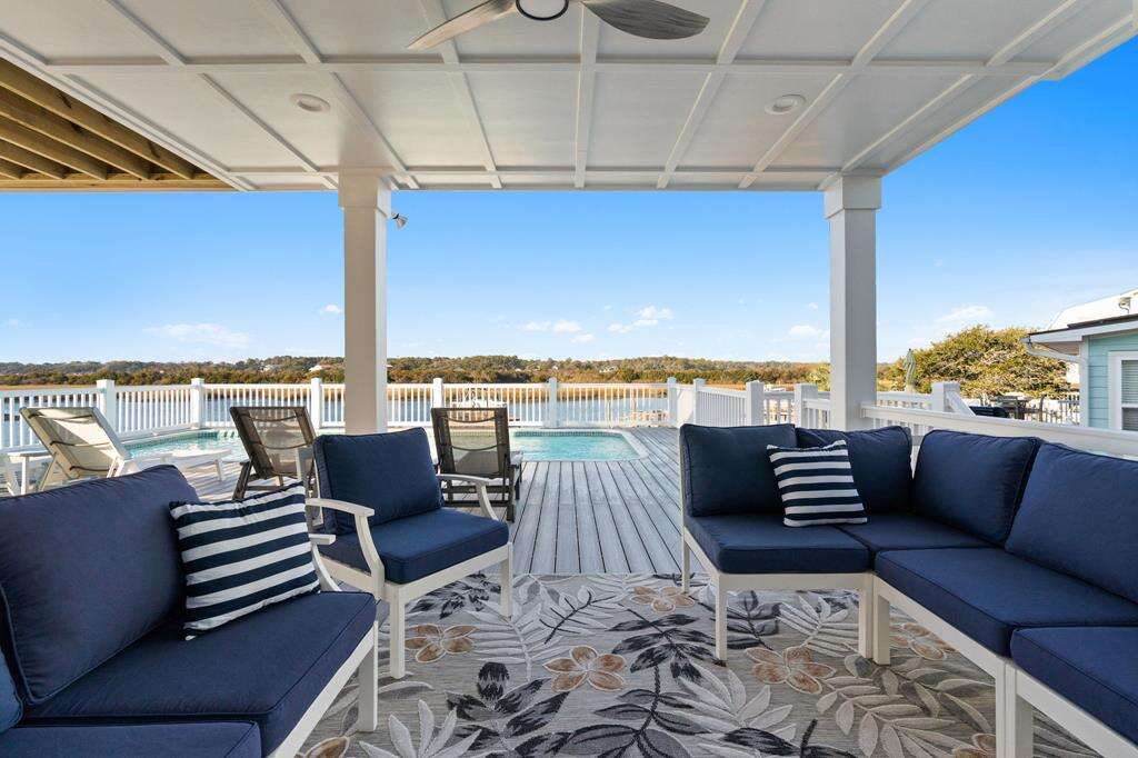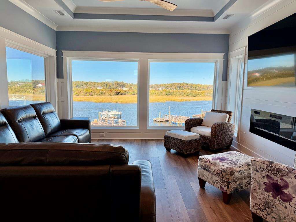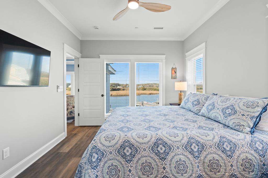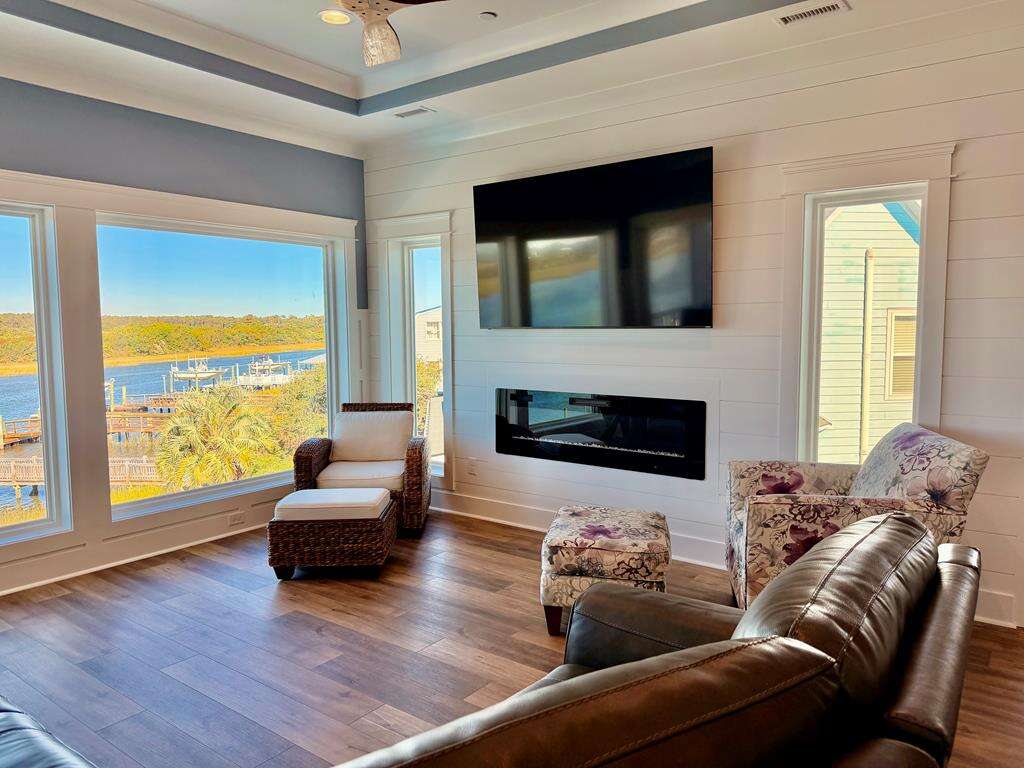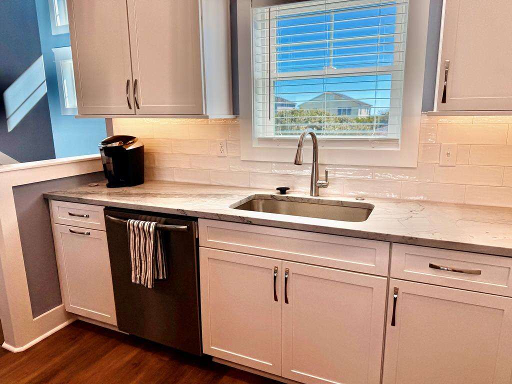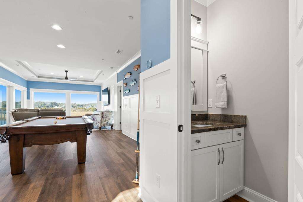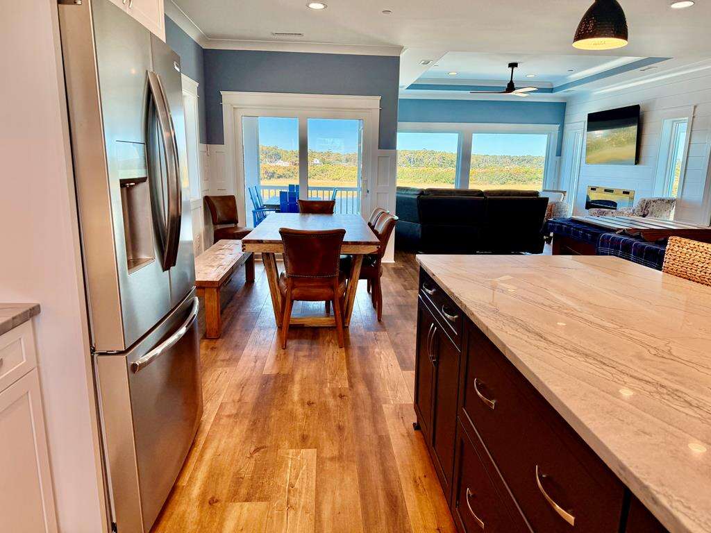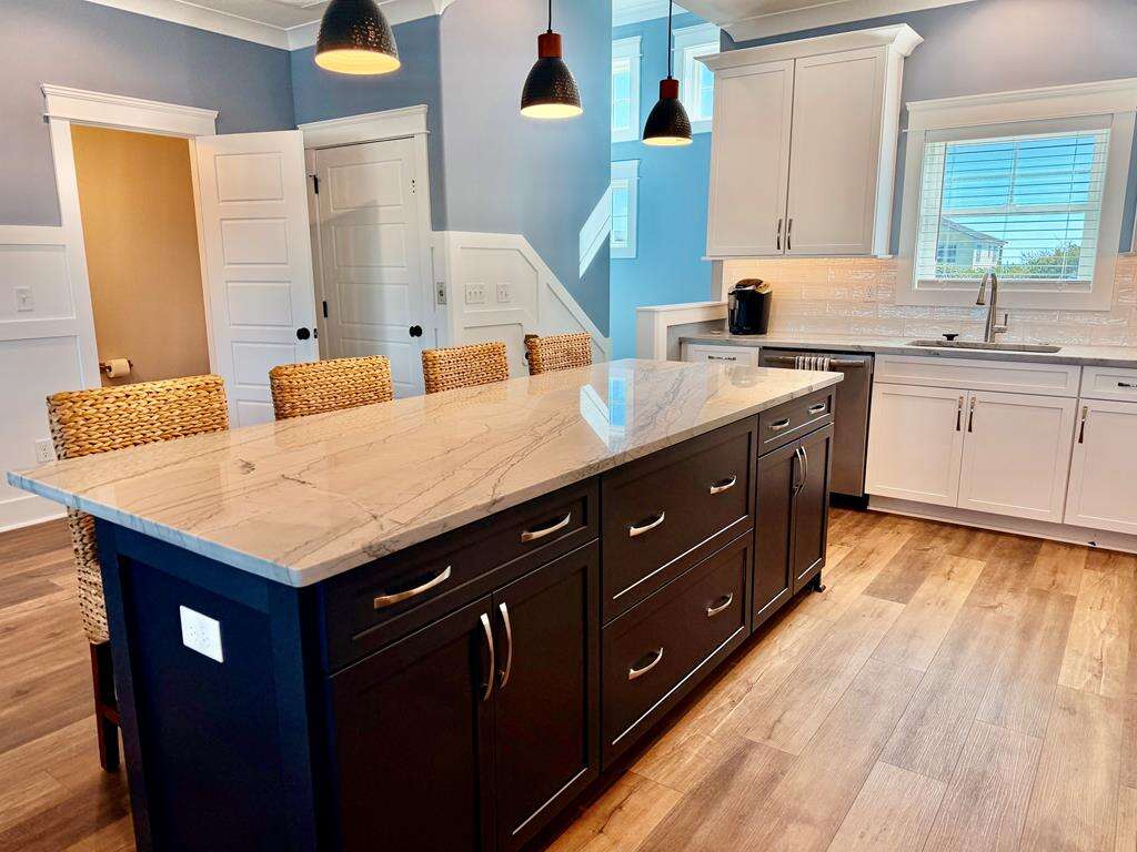 This newly constructed home is ideally located on a corner lot on Oak Island's west end, giving you access to various bodies of water to explore! Such a fantastic and rare find to be right next to a Public Water Access with the beach access just a short walk down the same street! Plus, a public boat ramp a few blocks away! Water lover's will never want to leave! Inside, this home is perfectly suited for unforgettable comfort and relaxation to be able to unwind when you are not out at the water. With a reverse, open-concept floor plan you will find the top level offers a very spacious main great room, dining and kitchen, as well as a primary king bedroom with private bath. The bottom floor offers the remaining 4 bedrooms - 2 bedrooms are kings, each with their own private bath, and the other 2 bedrooms offer a king in one and 2 bunk beds twin over twin in the other. These 2 bedrooms share a hallway bath. There is also a 2nd living area with wet bar just off the pool deck. This 2nd living area also offers extra sleeping space with a double sleeper sofa. Get ready to make Docks and Dunes your new sweet spot at the beach! This rare find won't last long, so make your reservation today before this island treasure gets taken!!!!
