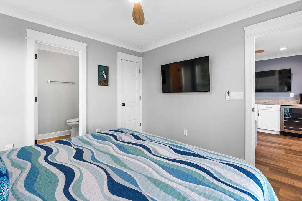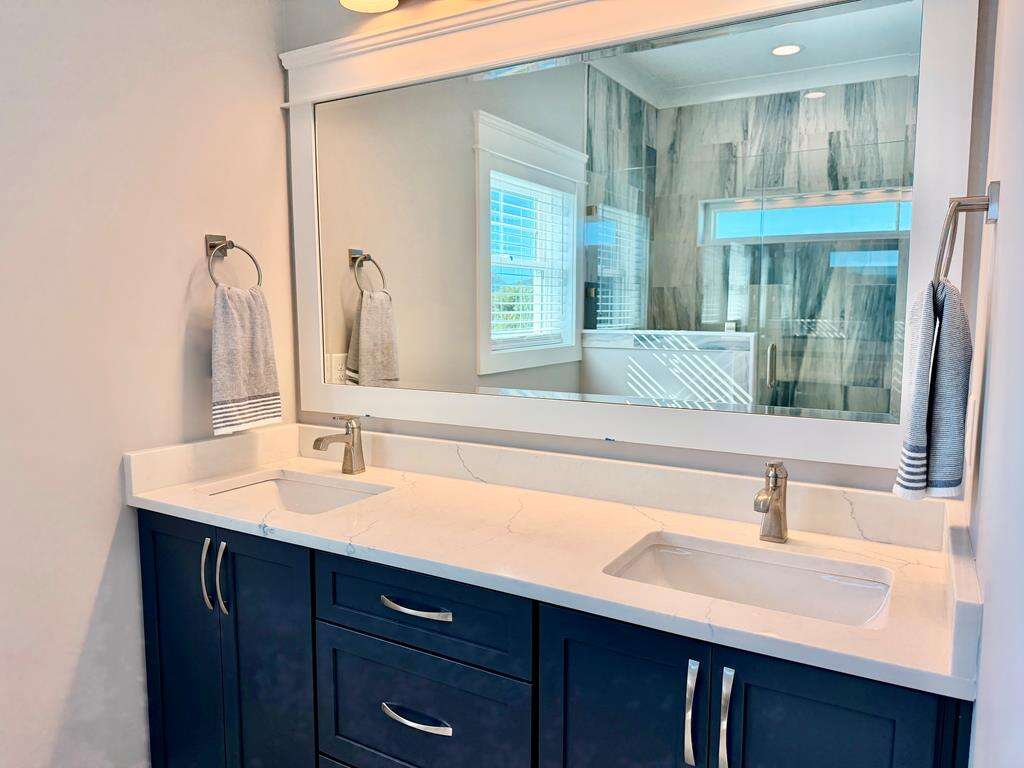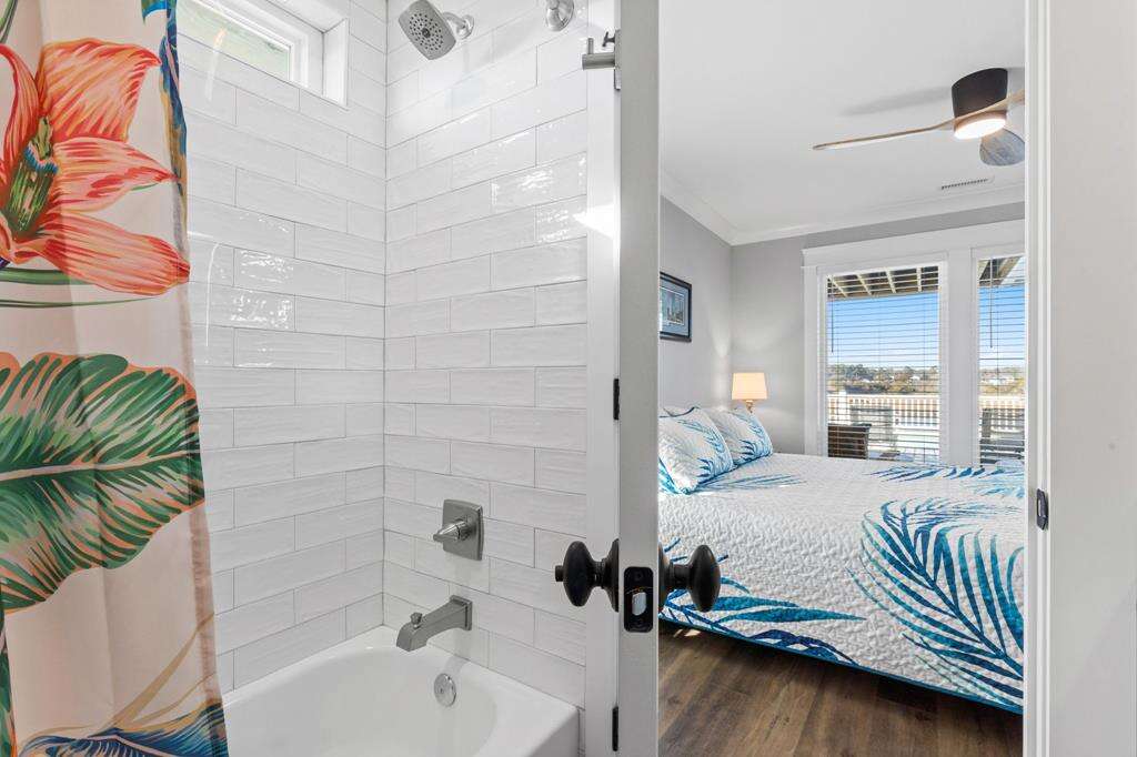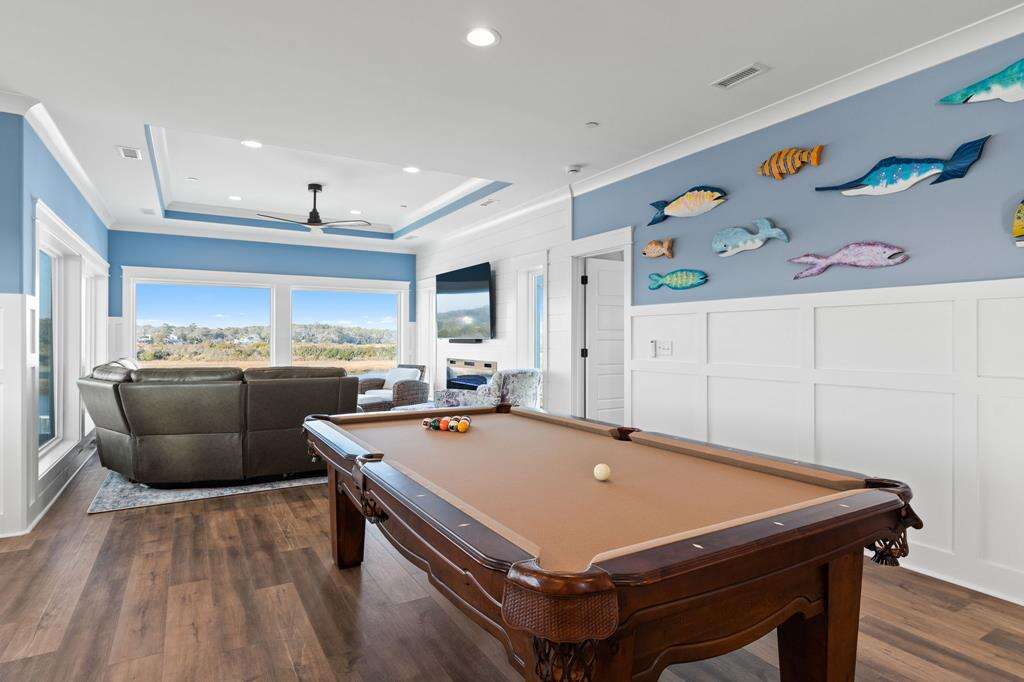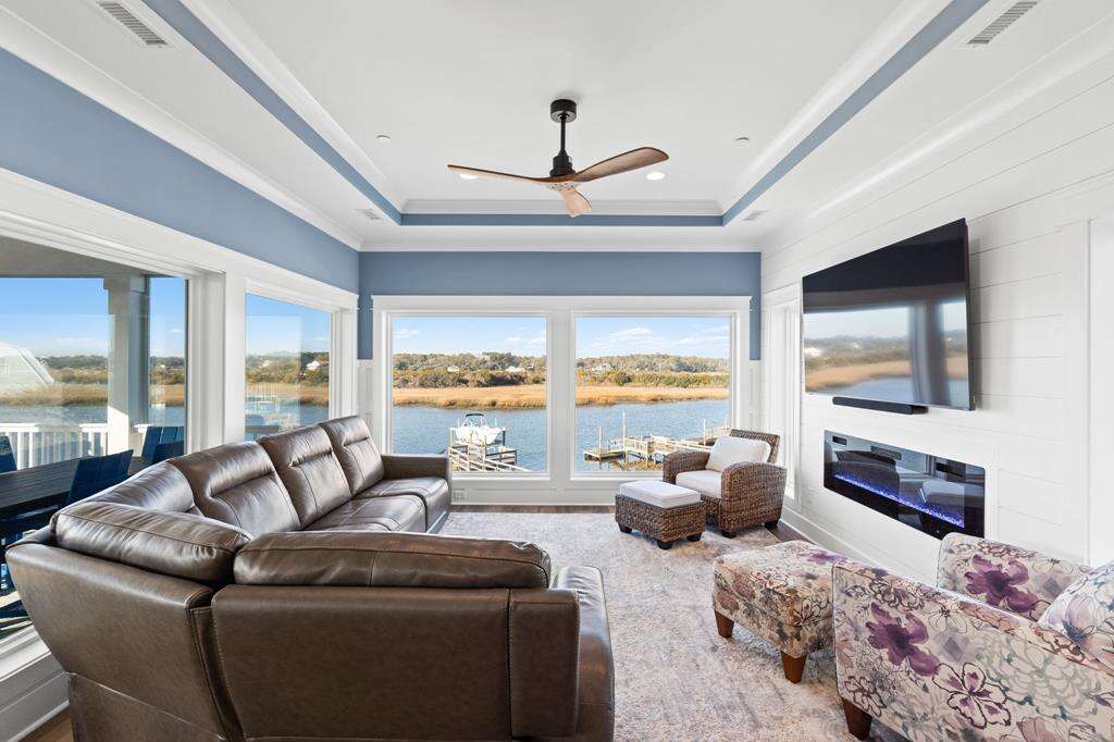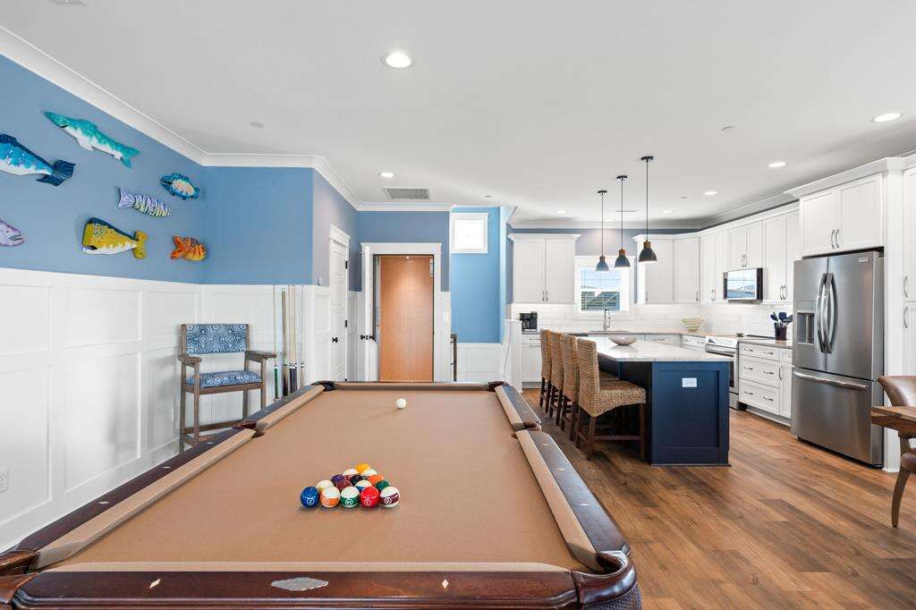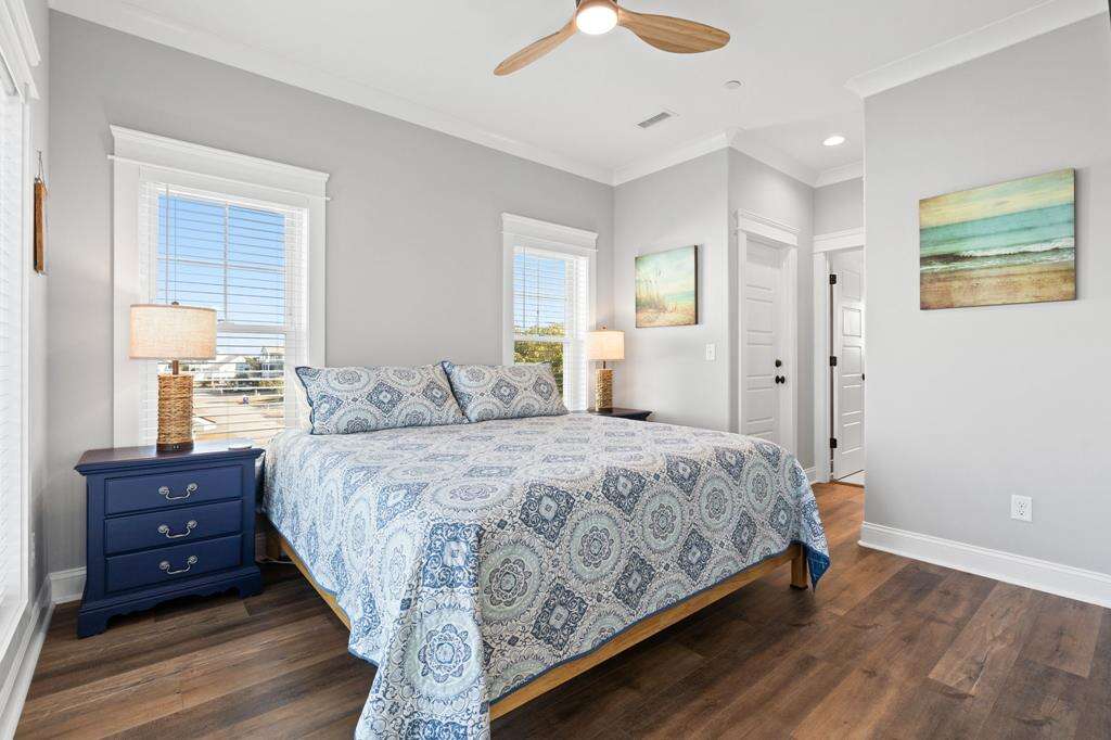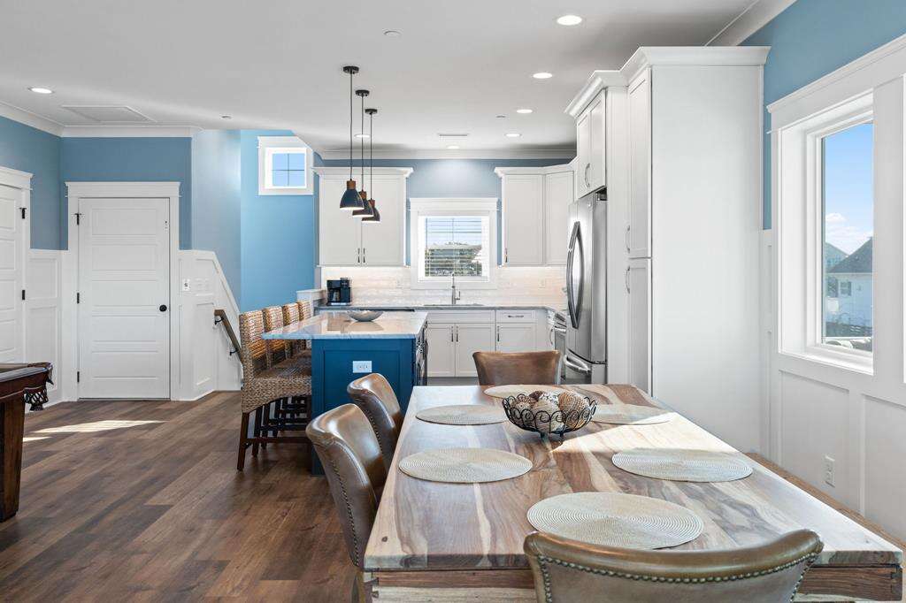 This newly constructed home is ideally located on a corner lot on Oak Island's west end, giving you access to various bodies of water to explore! Such a fantastic and rare find to be right next to a Public Water Access with the beach access just a short walk down the same street! Plus, a public boat ramp a few blocks away! Water lover's will never want to leave! Inside, this home is perfectly suited for unforgettable comfort and relaxation to be able to unwind when you are not out at the water. With a reverse, open-concept floor plan you will find the top level offers a very spacious main great room, dining and kitchen, as well as a primary king bedroom with private bath. The bottom floor offers the remaining 4 bedrooms - 2 bedrooms are kings, each with their own private bath, and the other 2 bedrooms offer a king in one and 2 bunk beds twin over twin in the other. These 2 bedrooms share a hallway bath. There is also a 2nd living area with wet bar just off the pool deck. This 2nd living area also offers extra sleeping space with a double sleeper sofa. Get ready to make Docks and Dunes your new sweet spot at the beach! This rare find won't last long, so make your reservation today before this island treasure gets taken!!!!