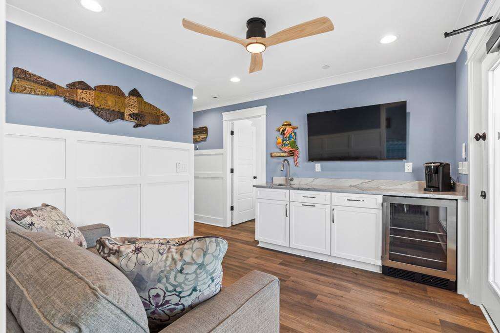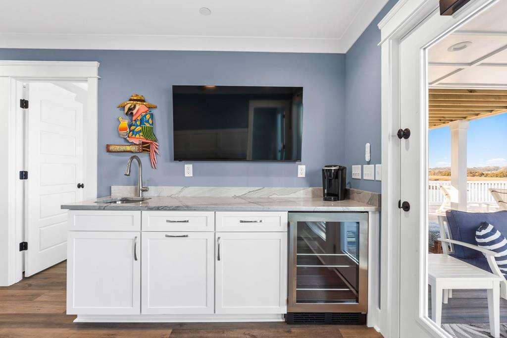 - 2nd living area off the pool deck, featuring a wet bar with sink and mini-fridge - Great for grabbing quick snacks while at the pool or a soothing cup of coffee in the morning!