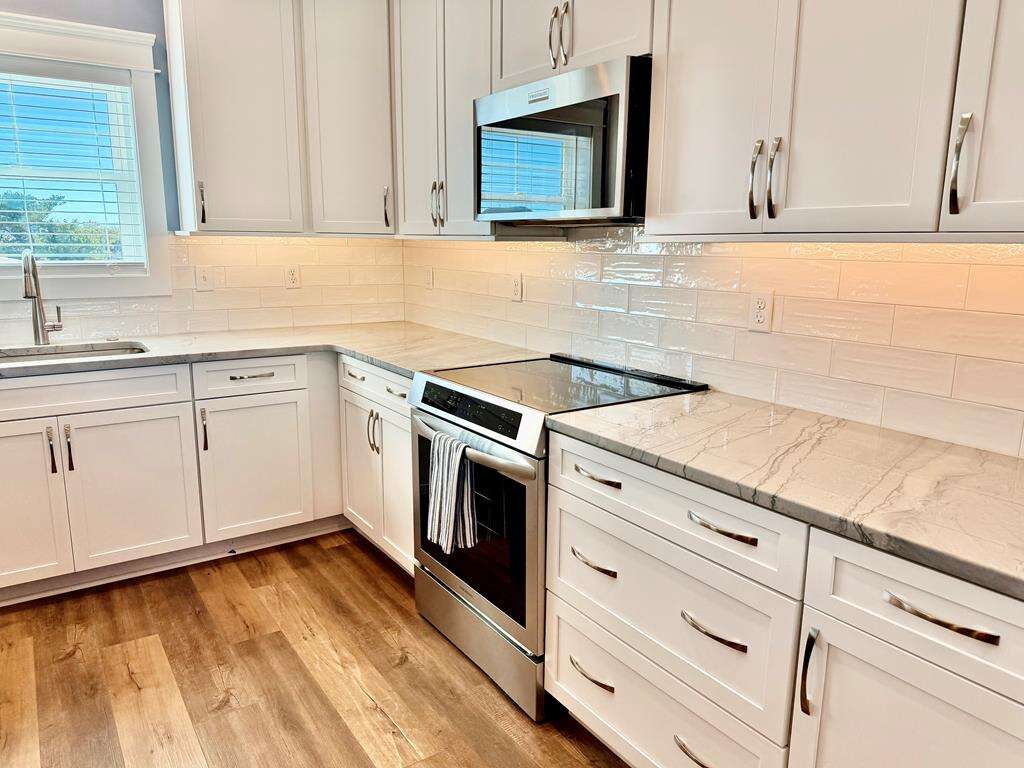 - Kitchen: Quartz countertops. Island breakfast bar. Stainless-steel appliances. Refrigerator with ice maker. Electric range with cooktop. Dishwasher. Microwave. Crockpot. Griddle. Air fryer. Toaster oven. Toaster. Keurig and drip coffee makers. Blender. Stock pot.