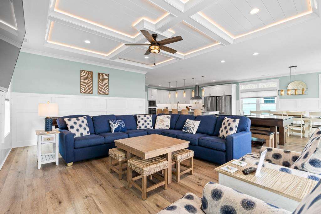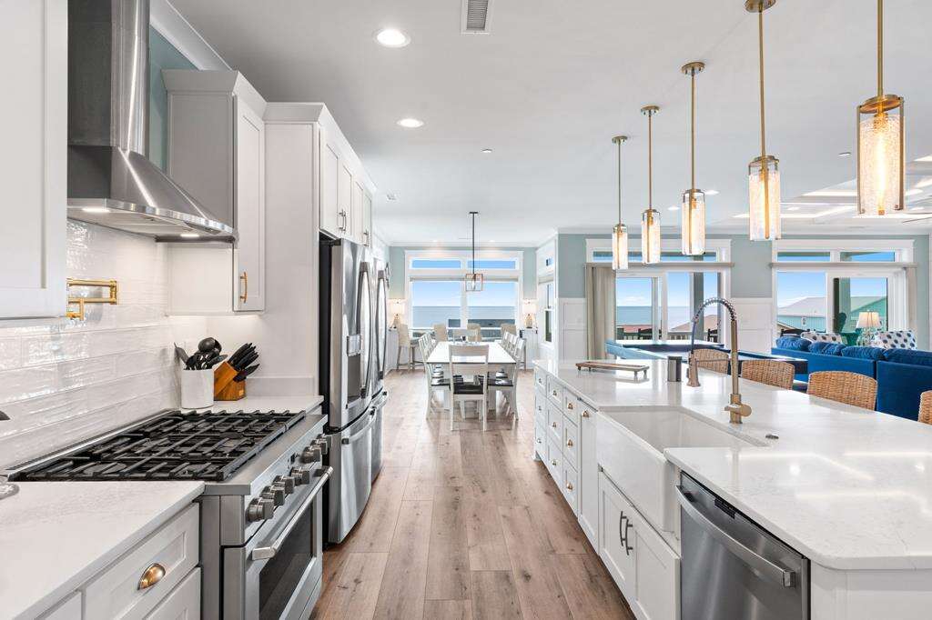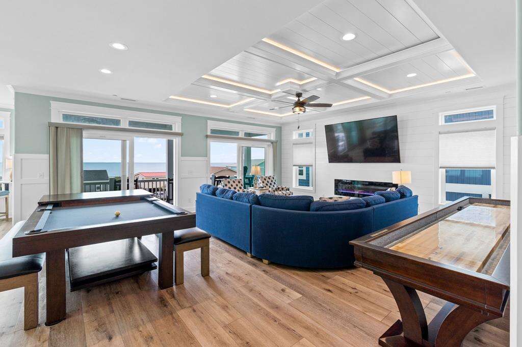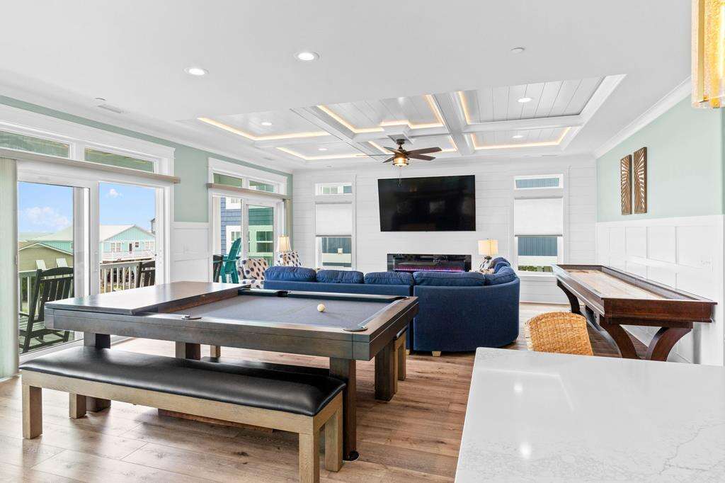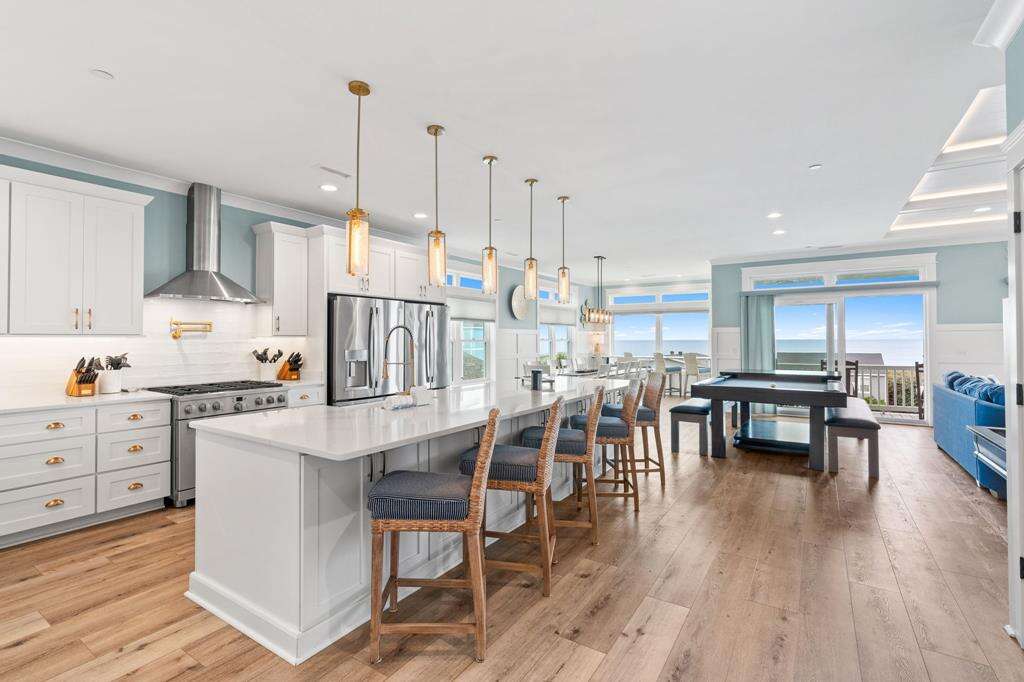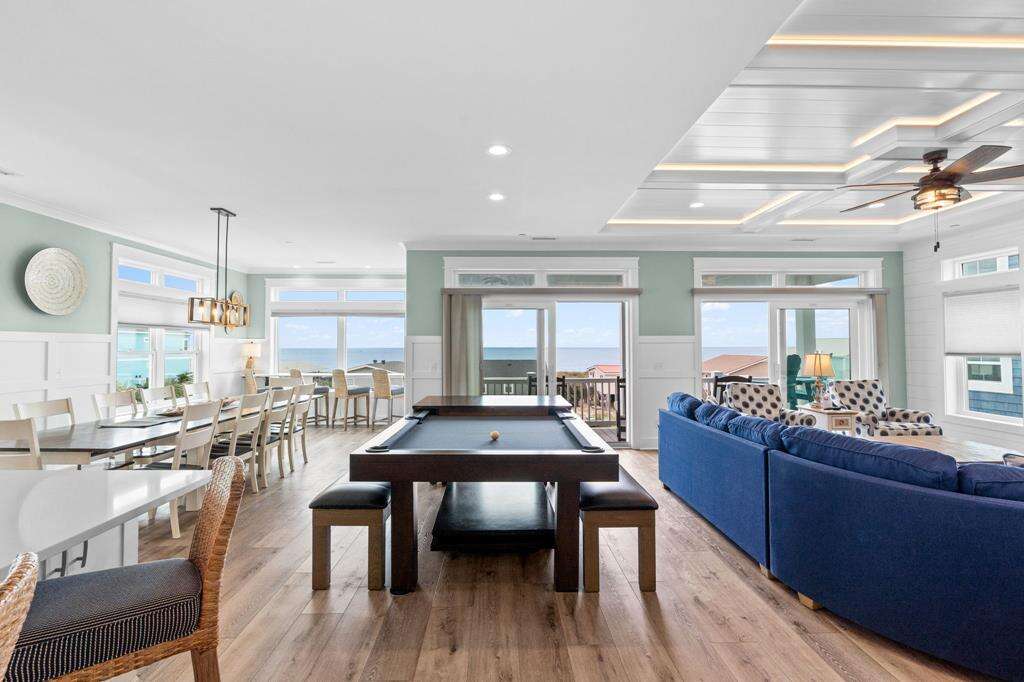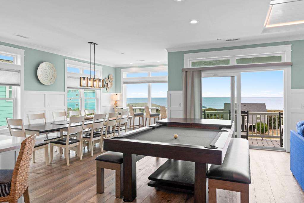 Let's face it...sometimes life is just too much! You need a break from it all! Imagine being refreshed and renewed in the midst of breathtaking Atlantic Ocean views that go on for miles, and sunrises and sunsets that will stick with you forever. This luxurious home is the perfect remedy. Ten of the coziest bedrooms, 9 of which are kings and 1 bunk bedroom. Each bedroom features it's own private bath, so everyone will enjoy the utmost in privacy and comfort. Everyone from the kids to the kids at heart will love the shuffleboard table and pool table for hours of endless fun. Boredom does not belong here, even on rainy days! The large living, dining and kitchen on the top floor boasts magnificent ocean views from every angle. The spacious gourmet kitchen offers plenty of room and appliances for all kinds of culinary creations. On the first level, you can enjoy a 2nd living area off the pool deck with kitchenette, featuring a full-size refrigerator, microwave and sink - a great spot or anyone to hang out and have snacks and drinks on hand and just a quick step out to the pool overlooking gorgeous ocean views. Have an electric vehicle? No problem, an EV charging station is also available at this home. Don't forget to bring along your furry best friend, as this home welcomes dogs. The beach and a public dock are a short stroll away. Get ready to let all your stresses and cares melt away with the tides as you soak in the Atlantic Horizon. Make your reservation today - This incredible home will not be available long!
