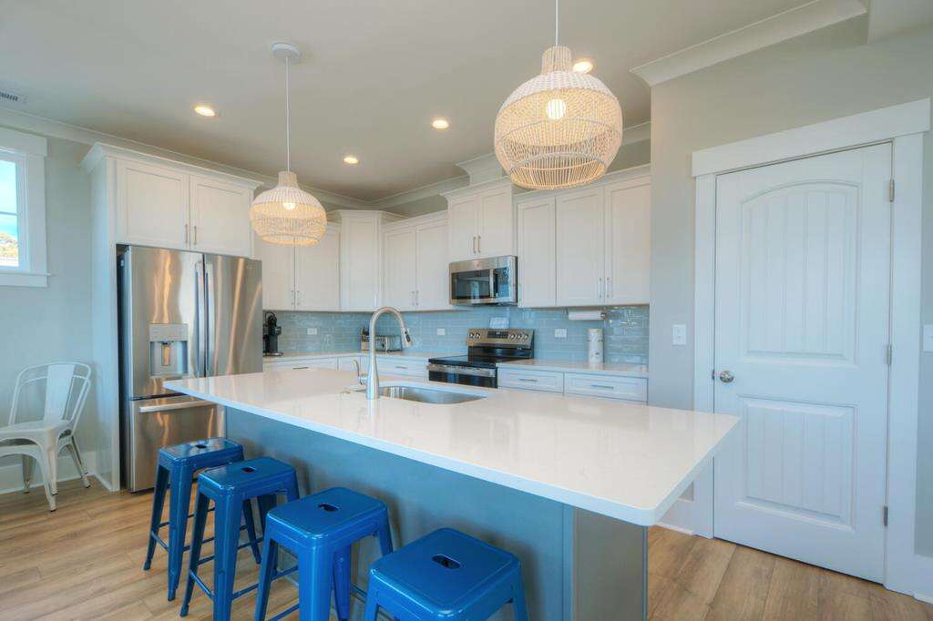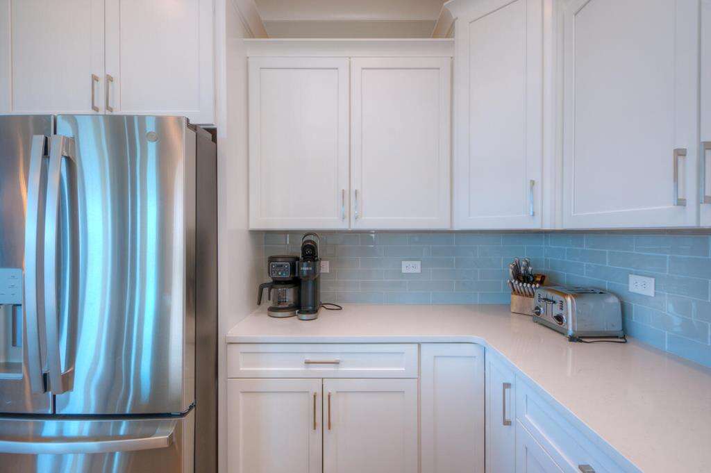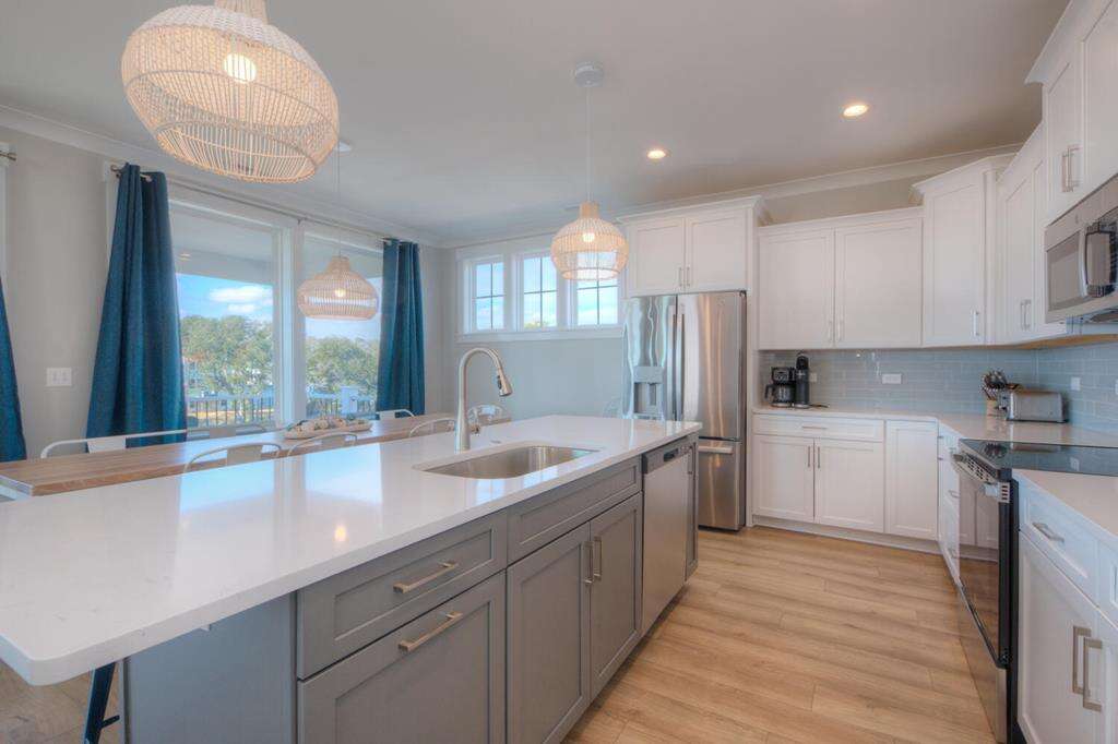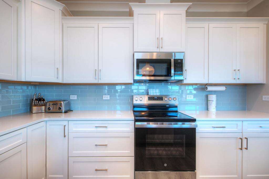 - Kitchen: Quartz countertops. Island breakfast bar. Stainless-steel appliances. Refrigerator with ice maker. Electric range and cooktop. Dishwasher. Microwave. Crockpot. Griddle. Toaster. Keurig and drip coffee makers. Blender. Stock pot.