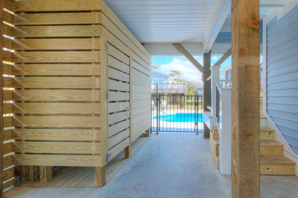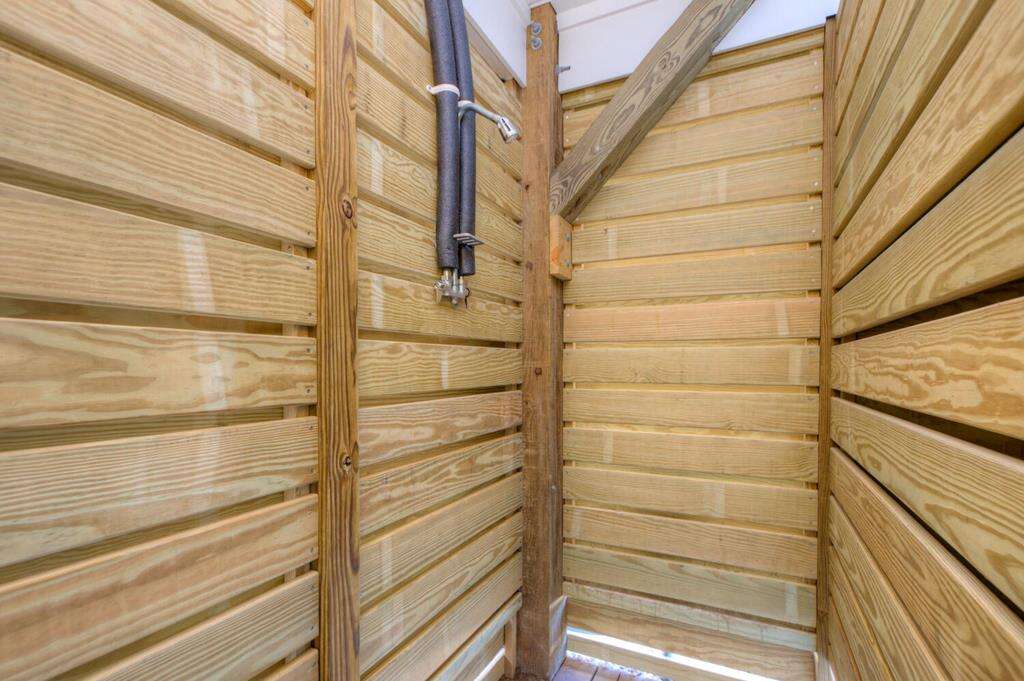 - Enclosed hot and cold outdoor shower